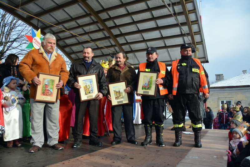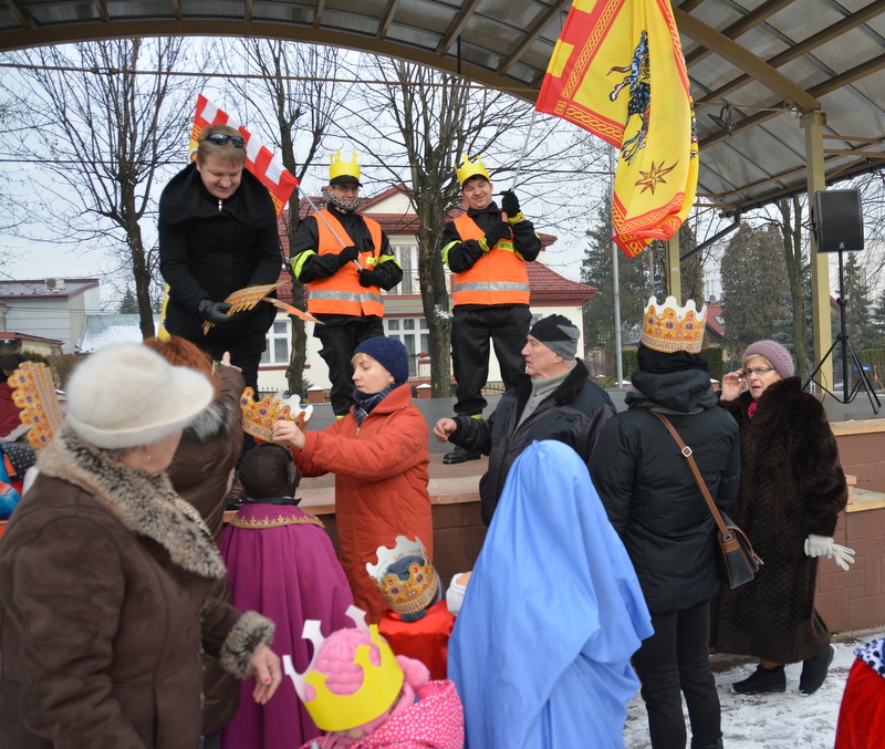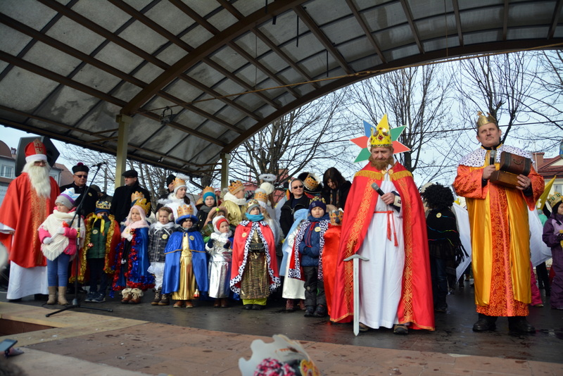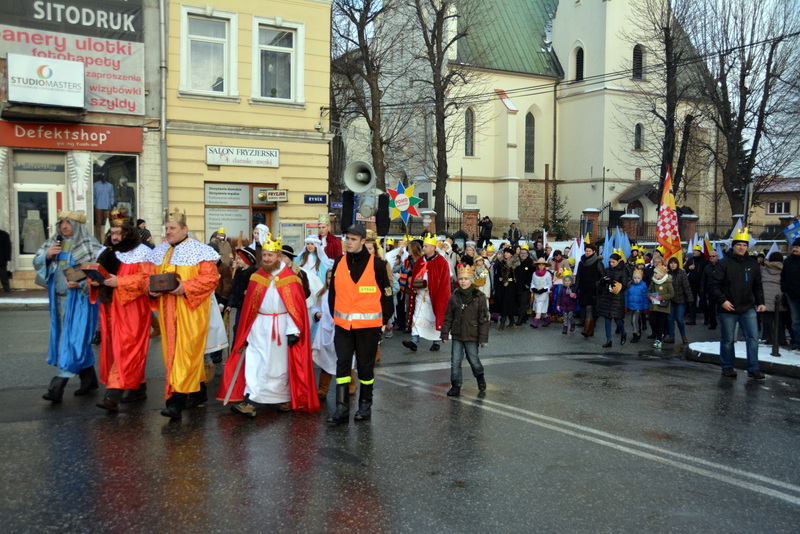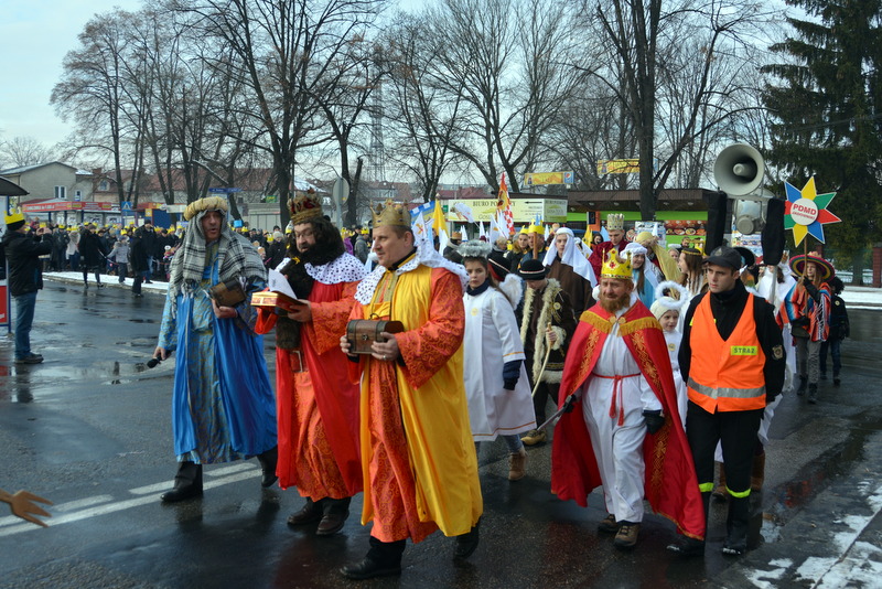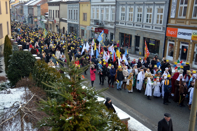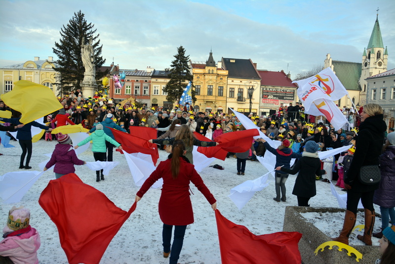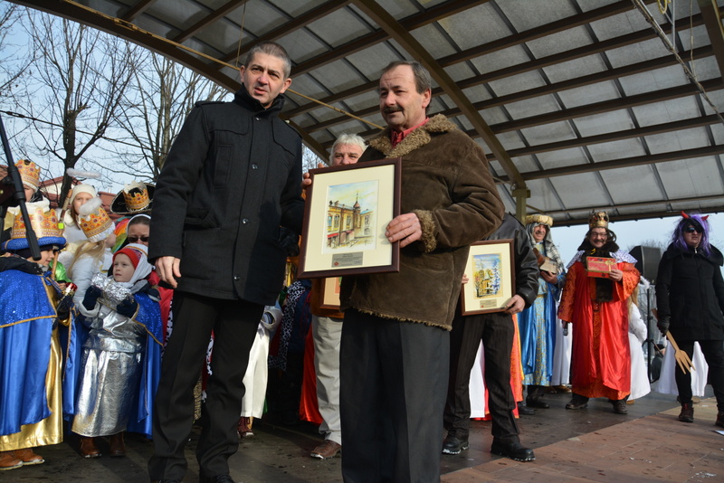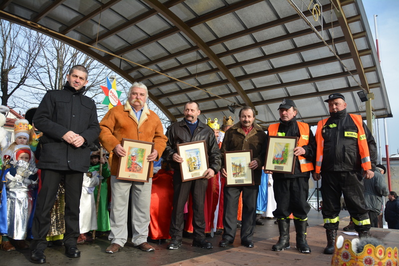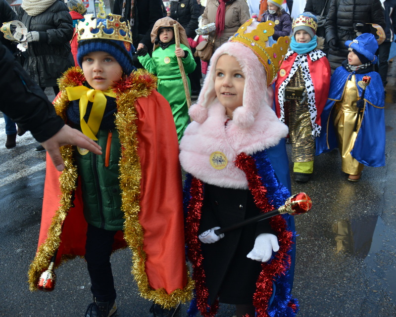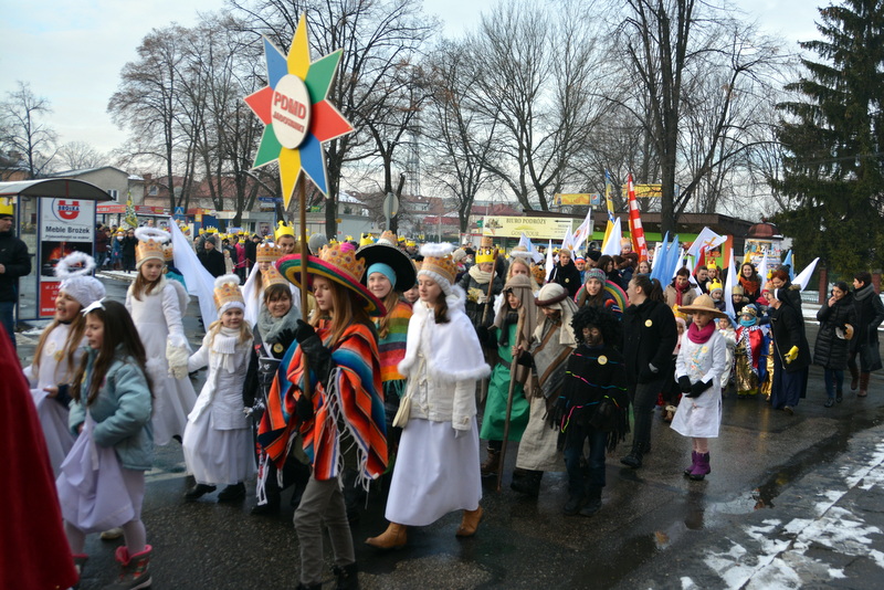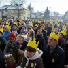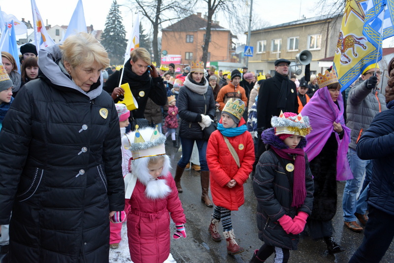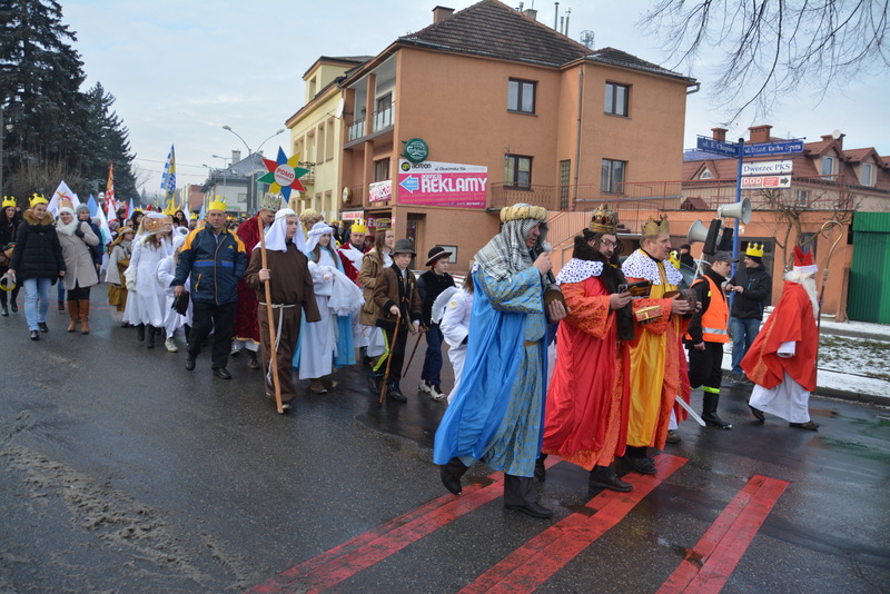 Piękna, słoneczna pogoda powitała w ubiegłą środę uczestników czwartego już Orszaku Trzech Króli w Brzesku.Blisko dwa tysiące ludzi - dzieci i dorosłych, niejednokrotnie w strojach i z koronami na głowach, z gwiazdami i flagami przemaszerowało ulicami Brzeska, śpiewając wspólnie kolędy.Na placu Kazimierza Wielkiego wszystkich przybyłych powitał wiceburmistrz Jerzy Tyrkiel oraz proboszczowie brzeskich parafii - Józef Drabik i Wojciech Werner. Przybyłym rozdano korony, których w tym roku ze względu na bardzo liczną frekwencje zabrakło.W uznaniu pięcioletniego zaangażowania w budowę szopki bożonarodzeniowej, burmistrz Jerzy Tyrkiel wręczył panom: Andrzejowi Grzelakowi, Adamowi Mechelowi, Janowi Michalcowi oraz strażakom OSP Brzesko pamiątkowe akwarele z widokami Brzeska. Wśród wyróżnionych znaleźli się również panowie Jerzy Rybicki i Eugeniusz Kopacz.Pochód rozpoczął się występem na placu Kazimierza - królowie Kacper, Melchior i Baltazar czyli Henryk Piela, Piotr Wyczesany i Janusz Duda po wygłoszeniu swoich kwestii zaprosili zebranych do pochodu. Na jego czele stanęli także Herod- Stanisława Kita i diabeł- Łukasz Kornaś.Orszak poprowadziła Miejska Orkiestra Dęta, tuż za nimi maszerowali królowie, grupy misyjne, wolontariusze Światowych Dni Młodzieży z flagami, strażacy OSP Brzesko z megafonami, mieszkańcy i przybyli turyści. Orkiestra grała pod batutą Wiesława Porwisza, a radny i zarazem król-Piotr Wyczesany prowadził wspólne śpiewanie kolęd. Radosny orszak dotarł do szopki betlejemskiej na rynku, gdzie młodzież z Jadownik pod kierunkiem Elżbiety Loranty wystawiła krótkie jasełka. Znakomicie zaprezentowała się z kolędami grupa śpiewacza Zespołu Pieśni i Tańca Porębianie. Uczestnicy orszaku byli też pod wrażeniem układu artystycznego z flagami przygotowanego przez brzeskich wolontariuszy ŚDM.Bezpieczeństwo przemarszu zapewniali policjanci z wydziału ruchu drogowego komendy powiatowej policji z insp. Bogusławem Barusiem na czele, a obsługę techniczną orszaku sprawowali strażacy OSP Brzesko, pracownicy Miejskiego Ośrodka Kultury i Brzeskich Zakładów Komunalnych.-Dziękujemy panu burmistrzowi Grzegorzowi Wawryce za tę cenną inicjatywę wspólnego świętowania. Spotkajmy się za rok, a każdy z nas niech przyprowadzi przynajmniej jedną osobę na orszak - powiedzieli na zakończenie proboszczowie Józef Drabik i Wojciech Werner.