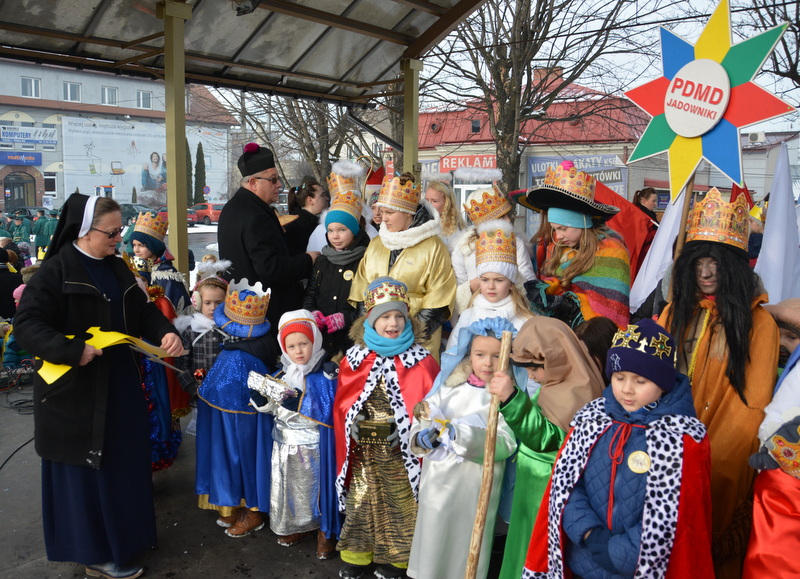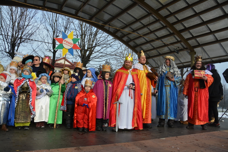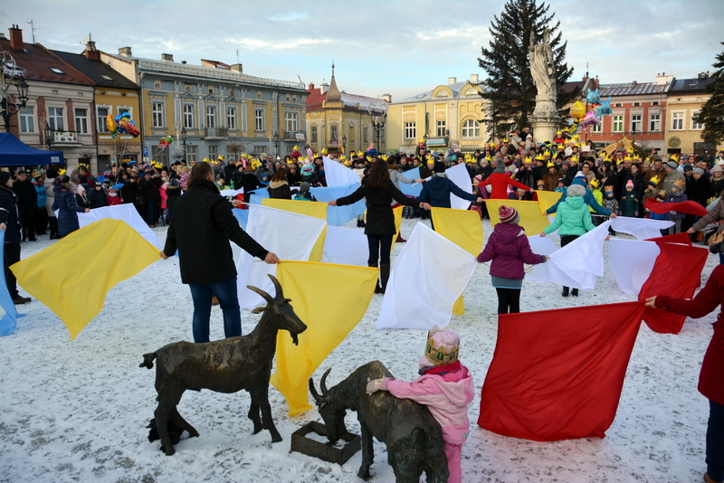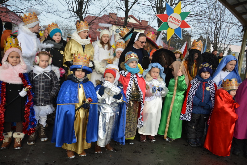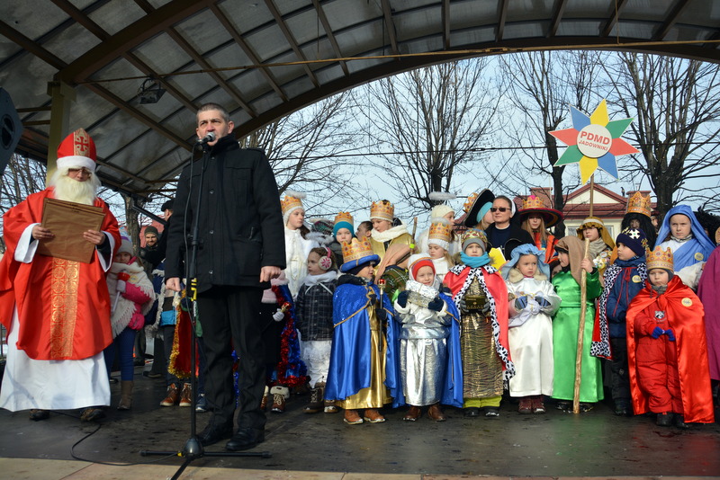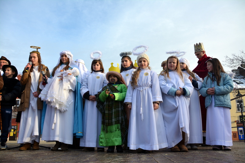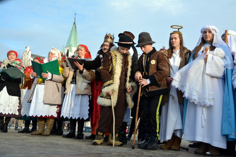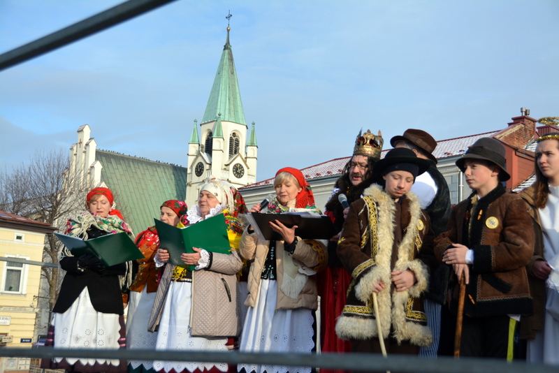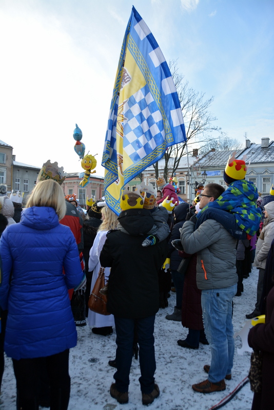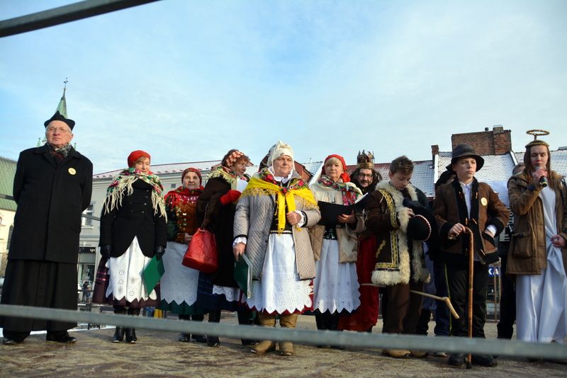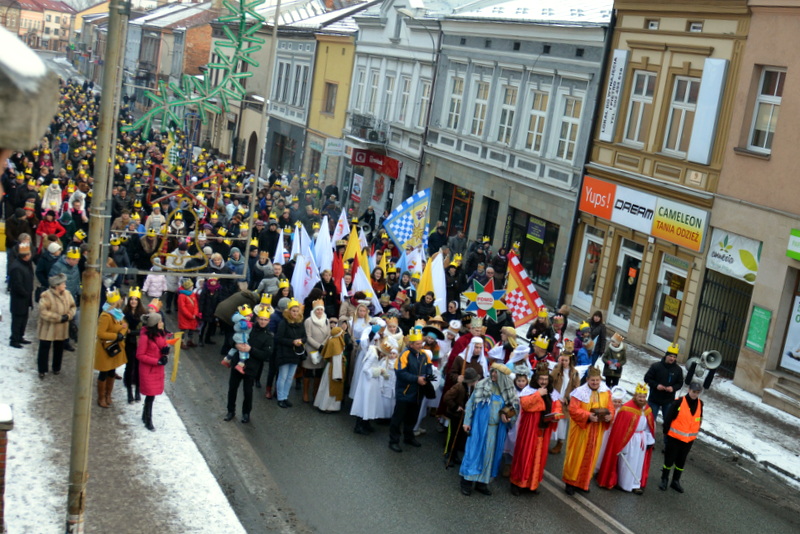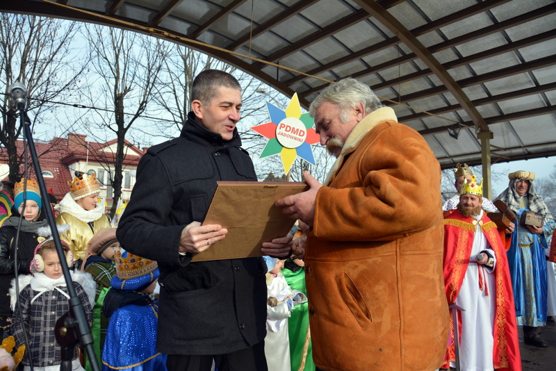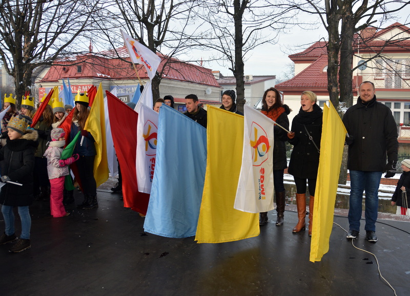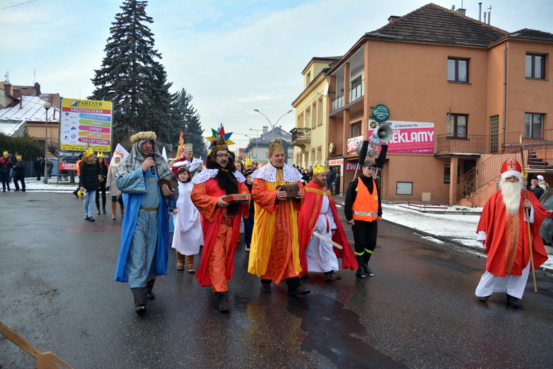 Piękna, słoneczna pogoda powitała w ubiegłą środę uczestników czwartego już Orszaku Trzech Króli w Brzesku.Blisko dwa tysiące ludzi - dzieci i dorosłych, niejednokrotnie w strojach i z koronami na głowach, z gwiazdami i flagami przemaszerowało ulicami Brzeska, śpiewając wspólnie kolędy.Na placu Kazimierza Wielkiego wszystkich przybyłych powitał wiceburmistrz Jerzy Tyrkiel oraz proboszczowie brzeskich parafii - Józef Drabik i Wojciech Werner. Przybyłym rozdano korony, których w tym roku ze względu na bardzo liczną frekwencje zabrakło.W uznaniu pięcioletniego zaangażowania w budowę szopki bożonarodzeniowej, burmistrz Jerzy Tyrkiel wręczył panom: Andrzejowi Grzelakowi, Adamowi Mechelowi, Janowi Michalcowi oraz strażakom OSP Brzesko pamiątkowe akwarele z widokami Brzeska. Wśród wyróżnionych znaleźli się również panowie Jerzy Rybicki i Eugeniusz Kopacz.Pochód rozpoczął się występem na placu Kazimierza - królowie Kacper, Melchior i Baltazar czyli Henryk Piela, Piotr Wyczesany i Janusz Duda po wygłoszeniu swoich kwestii zaprosili zebranych do pochodu. Na jego czele stanęli także Herod- Stanisława Kita i diabeł- Łukasz Kornaś.Orszak poprowadziła Miejska Orkiestra Dęta, tuż za nimi maszerowali królowie, grupy misyjne, wolontariusze Światowych Dni Młodzieży z flagami, strażacy OSP Brzesko z megafonami, mieszkańcy i przybyli turyści. Orkiestra grała pod batutą Wiesława Porwisza, a radny i zarazem król-Piotr Wyczesany prowadził wspólne śpiewanie kolęd. Radosny orszak dotarł do szopki betlejemskiej na rynku, gdzie młodzież z Jadownik pod kierunkiem Elżbiety Loranty wystawiła krótkie jasełka. Znakomicie zaprezentowała się z kolędami grupa śpiewacza Zespołu Pieśni i Tańca Porębianie. Uczestnicy orszaku byli też pod wrażeniem układu artystycznego z flagami przygotowanego przez brzeskich wolontariuszy ŚDM.Bezpieczeństwo przemarszu zapewniali policjanci z wydziału ruchu drogowego komendy powiatowej policji z insp. Bogusławem Barusiem na czele, a obsługę techniczną orszaku sprawowali strażacy OSP Brzesko, pracownicy Miejskiego Ośrodka Kultury i Brzeskich Zakładów Komunalnych.-Dziękujemy panu burmistrzowi Grzegorzowi Wawryce za tę cenną inicjatywę wspólnego świętowania. Spotkajmy się za rok, a każdy z nas niech przyprowadzi przynajmniej jedną osobę na orszak - powiedzieli na zakończenie proboszczowie Józef Drabik i Wojciech Werner.