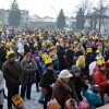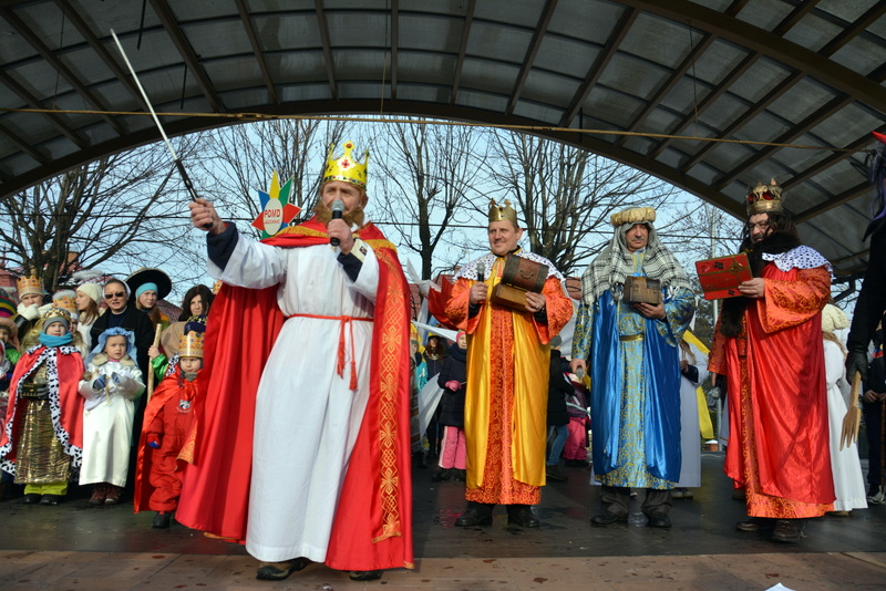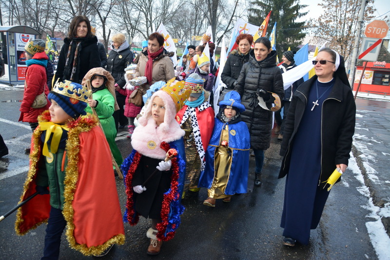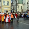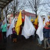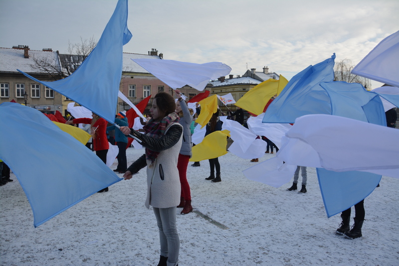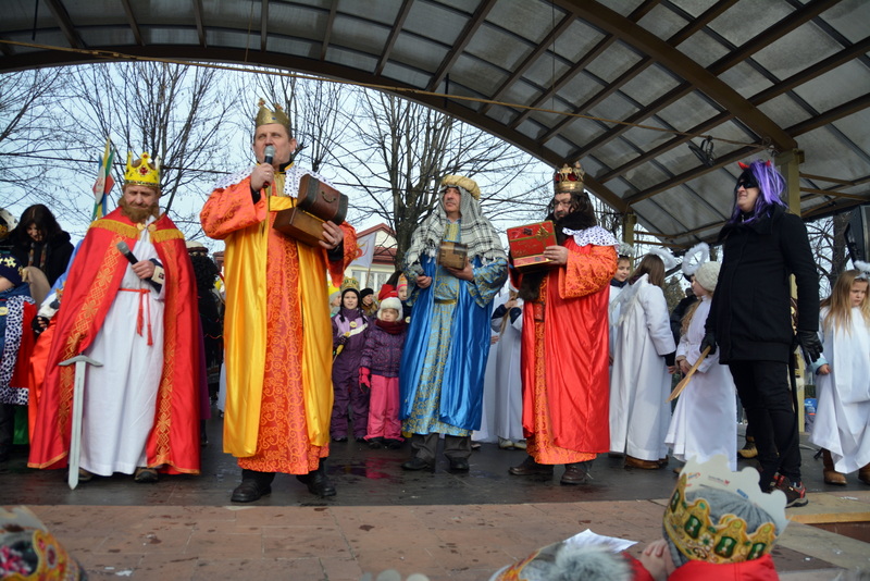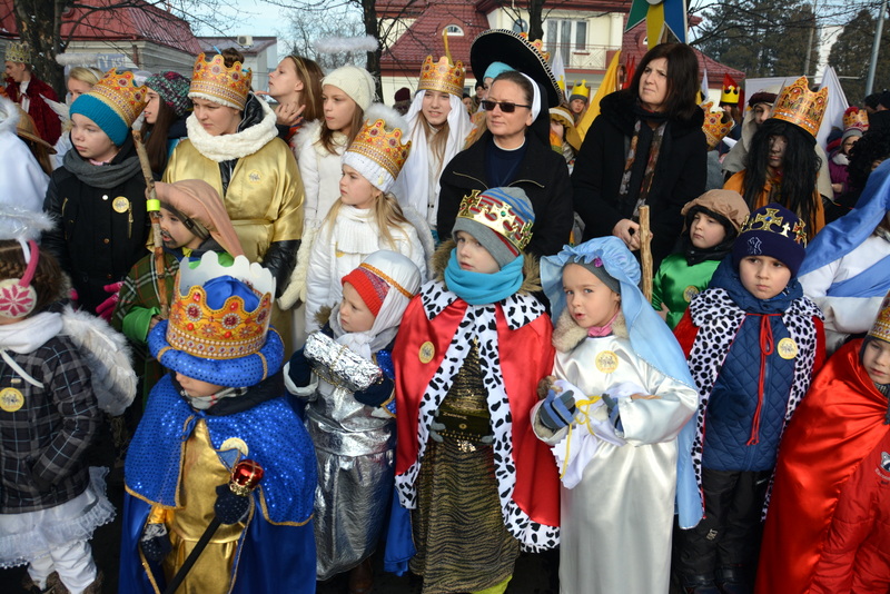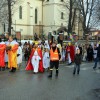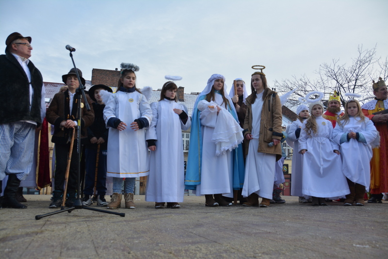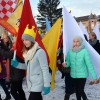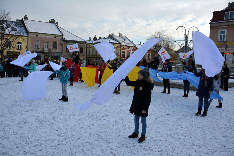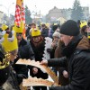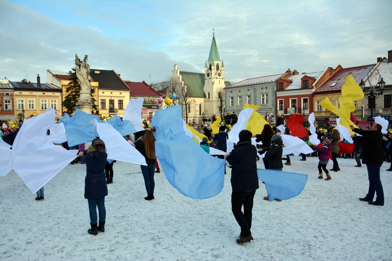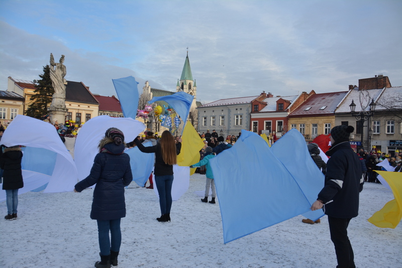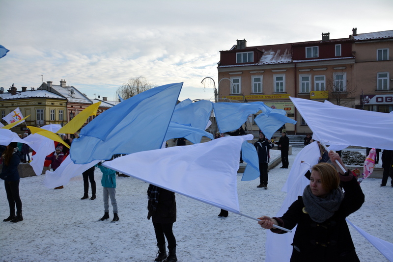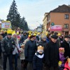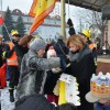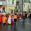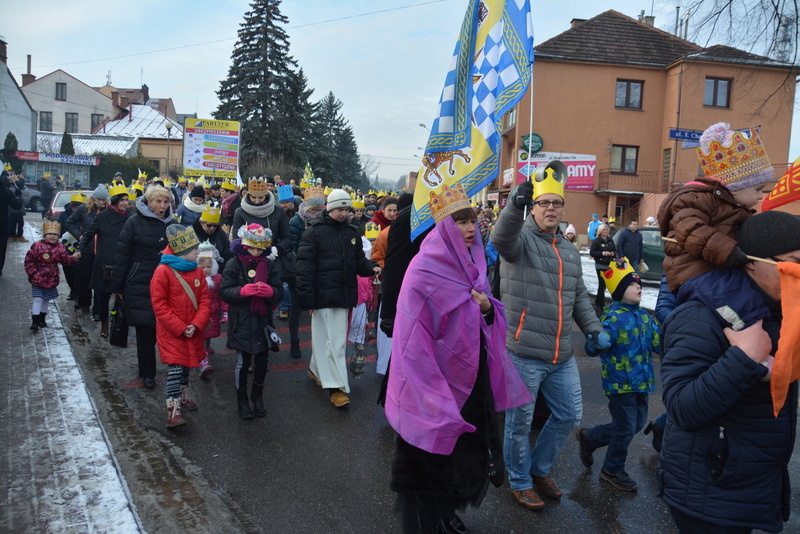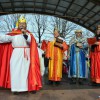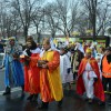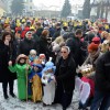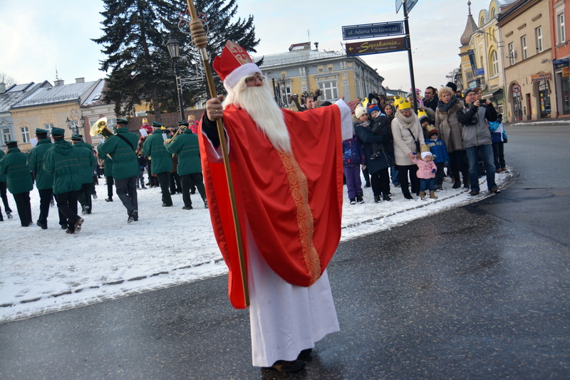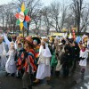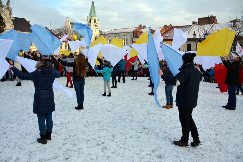 Piękna, słoneczna pogoda powitała w ubiegłą środę uczestników czwartego już Orszaku Trzech Króli w Brzesku.Blisko dwa tysiące ludzi - dzieci i dorosłych, niejednokrotnie w strojach i z koronami na głowach, z gwiazdami i flagami przemaszerowało ulicami Brzeska, śpiewając wspólnie kolędy.Na placu Kazimierza Wielkiego wszystkich przybyłych powitał wiceburmistrz Jerzy Tyrkiel oraz proboszczowie brzeskich parafii - Józef Drabik i Wojciech Werner. Przybyłym rozdano korony, których w tym roku ze względu na bardzo liczną frekwencje zabrakło.W uznaniu pięcioletniego zaangażowania w budowę szopki bożonarodzeniowej, burmistrz Jerzy Tyrkiel wręczył panom: Andrzejowi Grzelakowi, Adamowi Mechelowi, Janowi Michalcowi oraz strażakom OSP Brzesko pamiątkowe akwarele z widokami Brzeska. Wśród wyróżnionych znaleźli się również panowie Jerzy Rybicki i Eugeniusz Kopacz.Pochód rozpoczął się występem na placu Kazimierza - królowie Kacper, Melchior i Baltazar czyli Henryk Piela, Piotr Wyczesany i Janusz Duda po wygłoszeniu swoich kwestii zaprosili zebranych do pochodu. Na jego czele stanęli także Herod- Stanisława Kita i diabeł- Łukasz Kornaś.Orszak poprowadziła Miejska Orkiestra Dęta, tuż za nimi maszerowali królowie, grupy misyjne, wolontariusze Światowych Dni Młodzieży z flagami, strażacy OSP Brzesko z megafonami, mieszkańcy i przybyli turyści. Orkiestra grała pod batutą Wiesława Porwisza, a radny i zarazem król-Piotr Wyczesany prowadził wspólne śpiewanie kolęd. Radosny orszak dotarł do szopki betlejemskiej na rynku, gdzie młodzież z Jadownik pod kierunkiem Elżbiety Loranty wystawiła krótkie jasełka. Znakomicie zaprezentowała się z kolędami grupa śpiewacza Zespołu Pieśni i Tańca Porębianie. Uczestnicy orszaku byli też pod wrażeniem układu artystycznego z flagami przygotowanego przez brzeskich wolontariuszy ŚDM.Bezpieczeństwo przemarszu zapewniali policjanci z wydziału ruchu drogowego komendy powiatowej policji z insp. Bogusławem Barusiem na czele, a obsługę techniczną orszaku sprawowali strażacy OSP Brzesko, pracownicy Miejskiego Ośrodka Kultury i Brzeskich Zakładów Komunalnych.-Dziękujemy panu burmistrzowi Grzegorzowi Wawryce za tę cenną inicjatywę wspólnego świętowania. Spotkajmy się za rok, a każdy z nas niech przyprowadzi przynajmniej jedną osobę na orszak - powiedzieli na zakończenie proboszczowie Józef Drabik i Wojciech Werner.