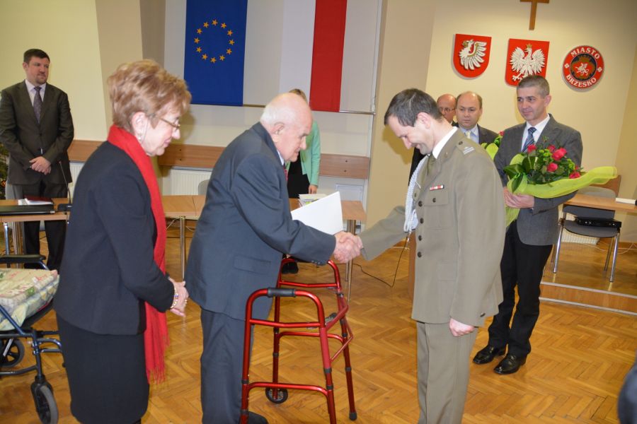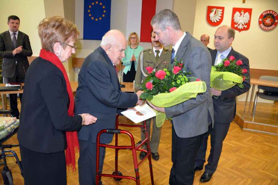 Gratulacje Józefowi Żakowi składali, między innymi zastępca burmistrza Jerzy Tyrkiel, przewodniczący RM Krzysztof Ojczyk, radni oraz koledzy z brzeskiego koła ŚZŻAK.
