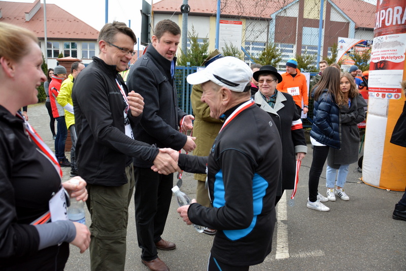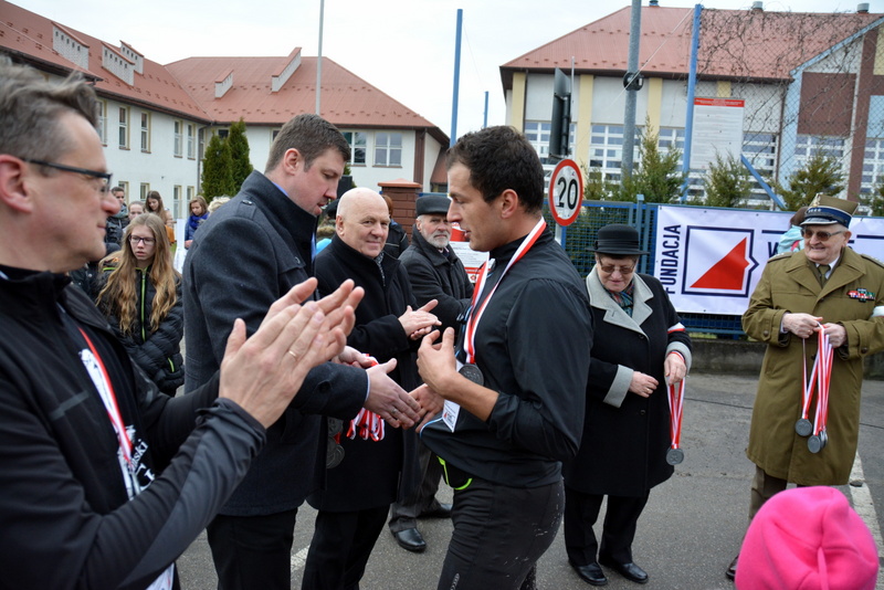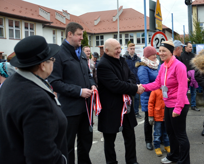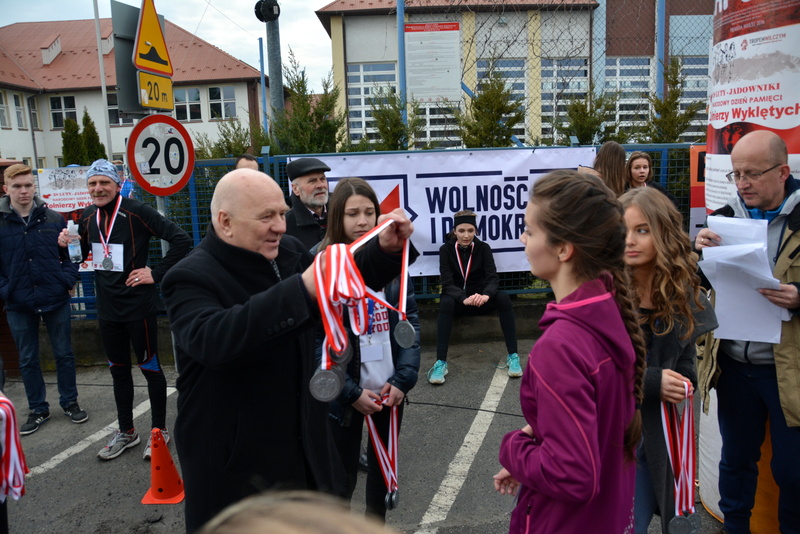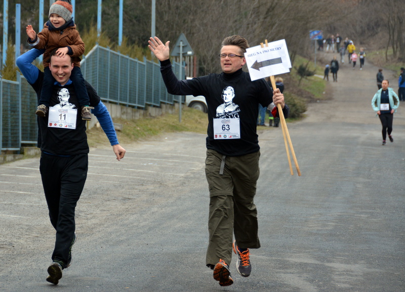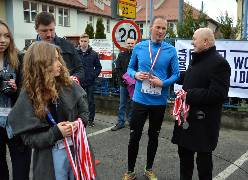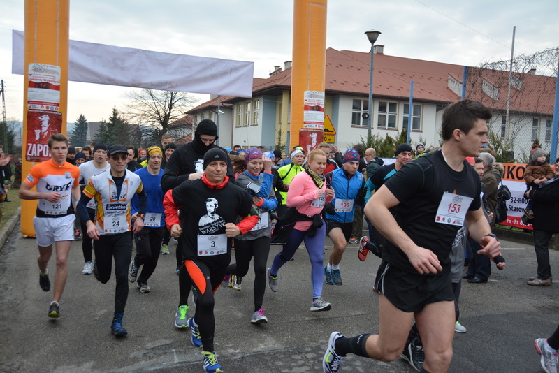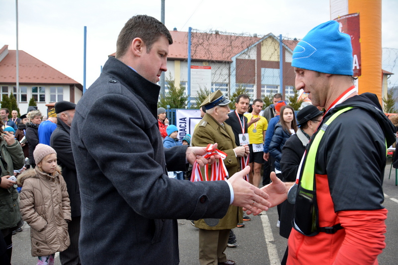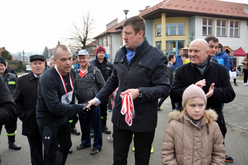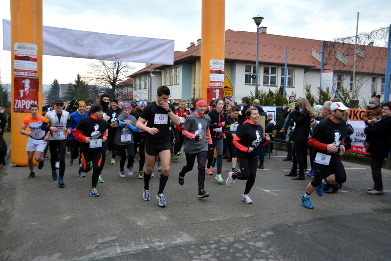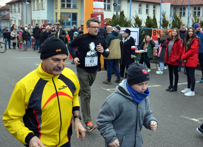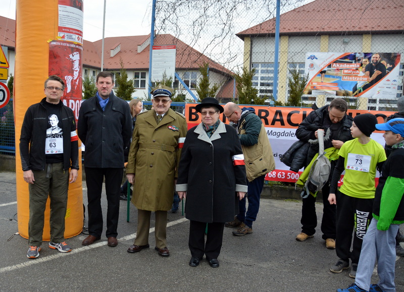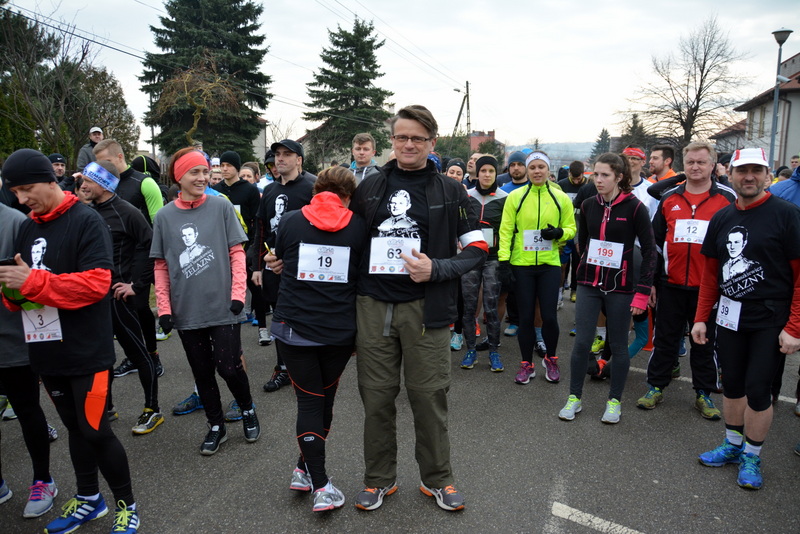 W ubiegłą niedzielę w Jadownikach odbyła się pierwsza edycja biegu Pamięci Żołnierzy Niezłomnych „Tropem Wilczym”, którego organizatorami byli burmistrz Brzeska Grzegorz Wawryka, sołtys Jadownik Jarosław Sorys z Radą Sołecką, oraz Brzeski Klub Biegacza “Viktoria”. Przypomnijmy, że inicjatorem akcji ogólnopolskiej była fundacja „Wolność i Demokracja”, która po raz czwarty realizowała to wydarzenie. W tym roku w ramach ogólnopolskich obchodów ku czci Żołnierzy Wyklętych patronat narodowy sprawował Prezydent Rzeczypospolitej Polskiej Andrzej Duda.W zeszłym roku uczestniczyło w biegu 20 tysięcy osób z 81 miast z całej Polski oraz Wilna, Grodna i Lidy. W tym roku w gronie 160 miejsc gdzie odbyła się impreza znalazła się i nasza gmina, a to dzięki Jadownikom i tytanicznej, wielodniowej pracy, oraz zaangażowaniu głównego animatora tego wydarzenia, czyli radnego Jarosława Sorysa.W Jadownikach w ramach biegu “Tropem Wilczym” uczestnicy wystartowali na dwóch dystansach. W biegu na 10 kilometrów uczestniczyły 144 osoby, a na dystansie 1963 metrów wzięło udział 56 biegaczy.“ Chciałbym szczególnie podziękować instytucjom i ludziom, bez których ten bieg nie mółby zostać przygotowany i zrealizowany. Są to strażacy OSP Jadowniki, policjanci WRD KPP w Brzesku, członkowie BKB “Viktoria” na czele ze Stanisławem Kitą, członkowie Rady Sołeckiej m.in. Marysia Rojkowicz, Jadzia Dadej, Alicja Sorys, Michał Krzywda, a także nauczyciel w-f Michał Fudala. Szczególnie serdecznie dziękuję burmistrzowi Brzeska Grzegorzowi Wawryce za pomoc finansową przy organizacji biegu, oraz pracownikom Biura Promocji UM w Brzesku. Słowa podziękowań kieruję również pod adresem dyrektora PG w Jadownikach, pana Tomasza Wietechy i uczniów gimnazjum, za wielkie zaangażowanie przy organizacji biegu. Dziękuję harcmistrzowi Bartłomiejowi Turlejowi i harcerzom z 8 drużyny harcerskiej “Jadowite Strzały” za kwestę na rzecz budowy pomnika Polaków zmarłych w latach Wielkiego Głodu na terenach sowieckiej Rosji, oraz harcerzom z 3 drużyny “Jadowici” za zabezpieczenie trasy biegu - mówi radny Jarosław Sorys.Jako pierwsi na trasę wyruszyli uczestnicy biegu na 10 kilometrów. Honorowymi starterami byli: członkowie koła brzeskiego Światowego Związku Żołnierzy Armii Krajowej, kapitan Władyslaw Tucznio oraz Krystyna Misiak, a także sekretarz Gminy Brzesko Stanisław Sułek oraz radny Jarosław Sorys. Przy dźwiękach syreny na dosyć trudną i uciążliwą trasę ruszyło ponad 100 biegaczy, których poprzedzali piloci, Maksymilian i Jacek Dadejowie. Kolumnę biegaczy zamykali Dominik Wiśniowski i Przemysław Duda na pojeździe terenowym. Kwadrans po 12-tej “honorowi starterzy” dali sygnał do kolejnego biegu, tym razem na dystansie 1963 metrów. W obydwu biegach wzięli udział mieszkańcy Jadownik, Brzeska, Mokrzysk, Poręby Spytkowskiej, Okocimia, Jasienia, Wokowic, Szczepanowa, Krakowa, Bochni, Dębicy, Olkusza, Jasła, Gosprzydowej, Dębna, Łęgu Tarnowskiego, Krzywaczki, Starego Sącza, Skołyszyna, Tymowej, Nowego Sącza, Warysia, Więckowic, Woli Debińskiej, Bielczy, Krosna, Złotej, Choragwicy, Rzeszowa,, Wielkiej Wsi, Przyborowia, Igołomi, Zabierzowa, Uniszowa, Miechowic Wielkich, Pisar, Porąbki Uszewskiej, Bolesławia, Jodłówki i Brzeźnicy. (Wyniki i klasyfikację załączymy w oddzielny materiale).Niedzielne wydarzenie w Jadownikach to nie tylko bieg, ale też piękna i wzruszająca popołudniowa uroczystość. Pierwsza jej część miała miejsce na skwerze przy Domu Ludowym. Radny Jarosław Sorys, oraz Rada Sołecka postanowili skwerowi nadać imię rtm. Witolda Pileckiego - wielkiego Polaka i Niezłomnego Żołnierza. W uroczystości nadania imienia wzięli udział m.in. europoseł Edward Czesak, posłanka Józefa Szczurek-Żelazko, zastępca burmistrza Brzeska Jerzy Tyrkiel, księża z Dekanatu Brzeskiego, radni miejscy i powiatowi, przedstawiciele instytucji, stowarzyszeń, harcerze, uczniowie jadownickich szkół, oraz mieszkańcy Jadownik i całej gminy Brzesko. Wspaniałą oprawę uroczystości zapewniła młodzież oraz sympatycy klubów piłkarskich, prezentując baner (przygotowany własnym sumptem) ku czci rotmistrza Witolda Pileckiego, dając pokaz ogni sztucznych. Dalsza część uroczystości to występy w sali Domu Ludowego przygotowane przez młodzież jadownicką, oraz zespół muzyczny Michała Jakubowskiego, a także wystawa poświęcona oddziałowi Wiarusy 1947-1949, ze zbiorów krakowskiego IPN-u. W trakcie wieczornej uroczystości główny organizator i animator niedzielnego wydarzenia radny Jarosław Sorys wręczył upominki młodzieży pomagającej w przygotowaniu i przeprowadzeniu biegu.Niedzielny bieg i uroczystości odbyły się m.in. dzięki sponsorom, którymi byli – Burmistrz Brzeska Grzegorz Wawryka, Sołtys Jadownik Jarosław Sorys, Rada Sołecka Jadownik, Wiesław Piasecki właściciel Firmy Elektro-Szyld, właścicielki sklepu Groszek z Jadownik panie Bożena Książek i Agata Macheta, Biuro Rachunkowe Agaty Machaj, Michał Krzywda, oraz Firma Awangarde pana Łukasza Dadeja.