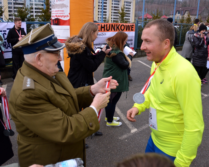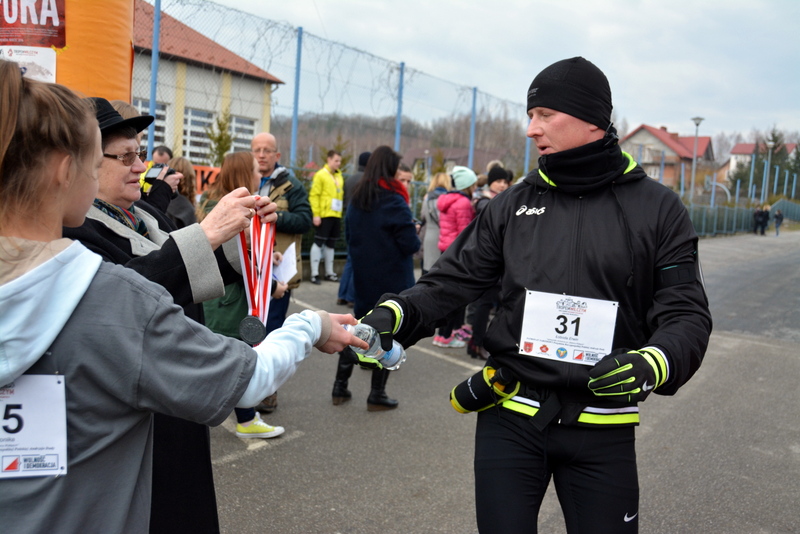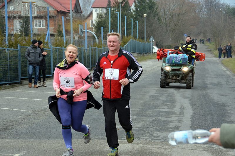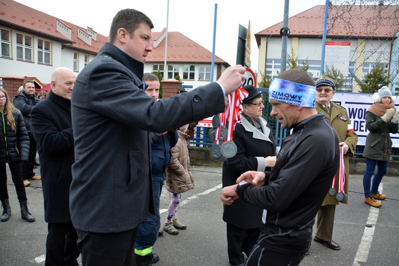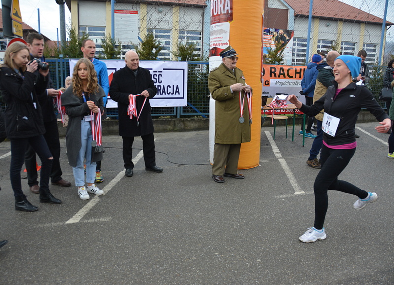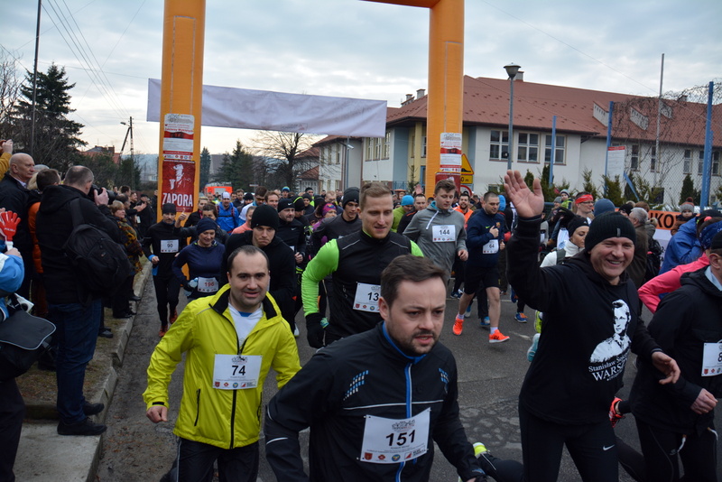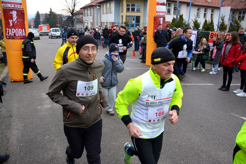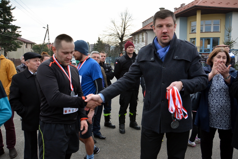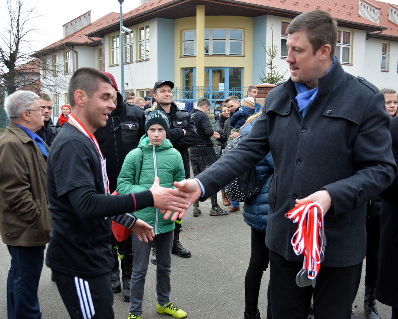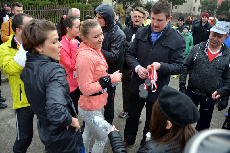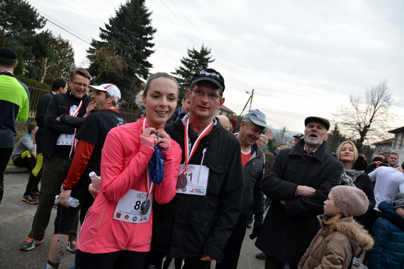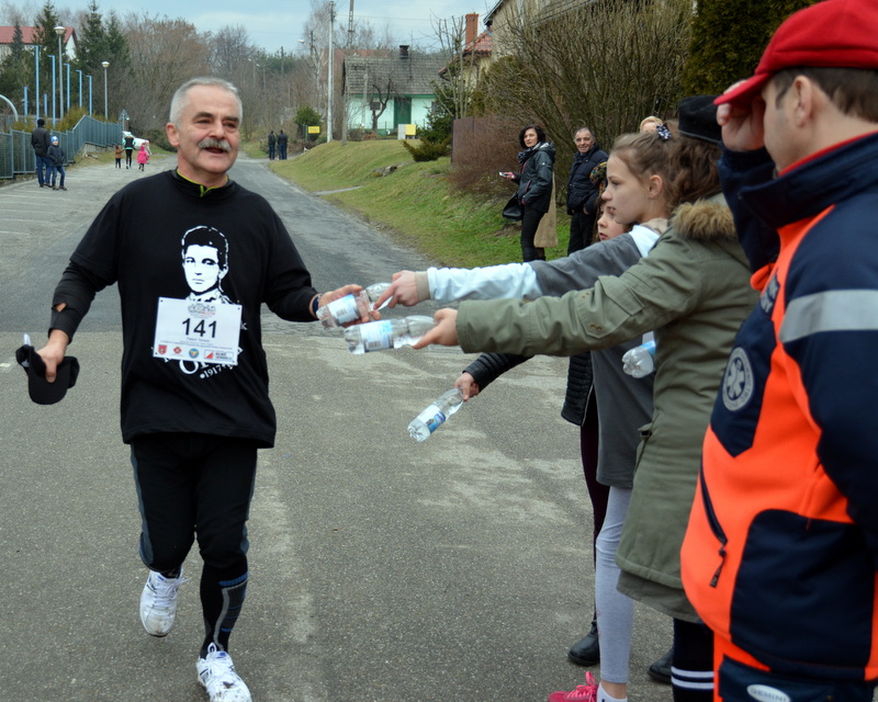 W ubiegłą niedzielę w Jadownikach odbyła się pierwsza edycja biegu Pamięci Żołnierzy Niezłomnych „Tropem Wilczym”, którego organizatorami byli burmistrz Brzeska Grzegorz Wawryka, sołtys Jadownik Jarosław Sorys z Radą Sołecką, oraz Brzeski Klub Biegacza “Viktoria”. Przypomnijmy, że inicjatorem akcji ogólnopolskiej była fundacja „Wolność i Demokracja”, która po raz czwarty realizowała to wydarzenie. W tym roku w ramach ogólnopolskich obchodów ku czci Żołnierzy Wyklętych patronat narodowy sprawował Prezydent Rzeczypospolitej Polskiej Andrzej Duda.W zeszłym roku uczestniczyło w biegu 20 tysięcy osób z 81 miast z całej Polski oraz Wilna, Grodna i Lidy. W tym roku w gronie 160 miejsc gdzie odbyła się impreza znalazła się i nasza gmina, a to dzięki Jadownikom i tytanicznej, wielodniowej pracy, oraz zaangażowaniu głównego animatora tego wydarzenia, czyli radnego Jarosława Sorysa.W Jadownikach w ramach biegu “Tropem Wilczym” uczestnicy wystartowali na dwóch dystansach. W biegu na 10 kilometrów uczestniczyły 144 osoby, a na dystansie 1963 metrów wzięło udział 56 biegaczy.“ Chciałbym szczególnie podziękować instytucjom i ludziom, bez których ten bieg nie mółby zostać przygotowany i zrealizowany. Są to strażacy OSP Jadowniki, policjanci WRD KPP w Brzesku, członkowie BKB “Viktoria” na czele ze Stanisławem Kitą, członkowie Rady Sołeckiej m.in. Marysia Rojkowicz, Jadzia Dadej, Alicja Sorys, Michał Krzywda, a także nauczyciel w-f Michał Fudala. Szczególnie serdecznie dziękuję burmistrzowi Brzeska Grzegorzowi Wawryce za pomoc finansową przy organizacji biegu, oraz pracownikom Biura Promocji UM w Brzesku. Słowa podziękowań kieruję również pod adresem dyrektora PG w Jadownikach, pana Tomasza Wietechy i uczniów gimnazjum, za wielkie zaangażowanie przy organizacji biegu. Dziękuję harcmistrzowi Bartłomiejowi Turlejowi i harcerzom z 8 drużyny harcerskiej “Jadowite Strzały” za kwestę na rzecz budowy pomnika Polaków zmarłych w latach Wielkiego Głodu na terenach sowieckiej Rosji, oraz harcerzom z 3 drużyny “Jadowici” za zabezpieczenie trasy biegu - mówi radny Jarosław Sorys.Jako pierwsi na trasę wyruszyli uczestnicy biegu na 10 kilometrów. Honorowymi starterami byli: członkowie koła brzeskiego Światowego Związku Żołnierzy Armii Krajowej, kapitan Władyslaw Tucznio oraz Krystyna Misiak, a także sekretarz Gminy Brzesko Stanisław Sułek oraz radny Jarosław Sorys. Przy dźwiękach syreny na dosyć trudną i uciążliwą trasę ruszyło ponad 100 biegaczy, których poprzedzali piloci, Maksymilian i Jacek Dadejowie. Kolumnę biegaczy zamykali Dominik Wiśniowski i Przemysław Duda na pojeździe terenowym. Kwadrans po 12-tej “honorowi starterzy” dali sygnał do kolejnego biegu, tym razem na dystansie 1963 metrów. W obydwu biegach wzięli udział mieszkańcy Jadownik, Brzeska, Mokrzysk, Poręby Spytkowskiej, Okocimia, Jasienia, Wokowic, Szczepanowa, Krakowa, Bochni, Dębicy, Olkusza, Jasła, Gosprzydowej, Dębna, Łęgu Tarnowskiego, Krzywaczki, Starego Sącza, Skołyszyna, Tymowej, Nowego Sącza, Warysia, Więckowic, Woli Debińskiej, Bielczy, Krosna, Złotej, Choragwicy, Rzeszowa,, Wielkiej Wsi, Przyborowia, Igołomi, Zabierzowa, Uniszowa, Miechowic Wielkich, Pisar, Porąbki Uszewskiej, Bolesławia, Jodłówki i Brzeźnicy. (Wyniki i klasyfikację załączymy w oddzielny materiale).Niedzielne wydarzenie w Jadownikach to nie tylko bieg, ale też piękna i wzruszająca popołudniowa uroczystość. Pierwsza jej część miała miejsce na skwerze przy Domu Ludowym. Radny Jarosław Sorys, oraz Rada Sołecka postanowili skwerowi nadać imię rtm. Witolda Pileckiego - wielkiego Polaka i Niezłomnego Żołnierza. W uroczystości nadania imienia wzięli udział m.in. europoseł Edward Czesak, posłanka Józefa Szczurek-Żelazko, zastępca burmistrza Brzeska Jerzy Tyrkiel, księża z Dekanatu Brzeskiego, radni miejscy i powiatowi, przedstawiciele instytucji, stowarzyszeń, harcerze, uczniowie jadownickich szkół, oraz mieszkańcy Jadownik i całej gminy Brzesko. Wspaniałą oprawę uroczystości zapewniła młodzież oraz sympatycy klubów piłkarskich, prezentując baner (przygotowany własnym sumptem) ku czci rotmistrza Witolda Pileckiego, dając pokaz ogni sztucznych. Dalsza część uroczystości to występy w sali Domu Ludowego przygotowane przez młodzież jadownicką, oraz zespół muzyczny Michała Jakubowskiego, a także wystawa poświęcona oddziałowi Wiarusy 1947-1949, ze zbiorów krakowskiego IPN-u. W trakcie wieczornej uroczystości główny organizator i animator niedzielnego wydarzenia radny Jarosław Sorys wręczył upominki młodzieży pomagającej w przygotowaniu i przeprowadzeniu biegu.Niedzielny bieg i uroczystości odbyły się m.in. dzięki sponsorom, którymi byli – Burmistrz Brzeska Grzegorz Wawryka, Sołtys Jadownik Jarosław Sorys, Rada Sołecka Jadownik, Wiesław Piasecki właściciel Firmy Elektro-Szyld, właścicielki sklepu Groszek z Jadownik panie Bożena Książek i Agata Macheta, Biuro Rachunkowe Agaty Machaj, Michał Krzywda, oraz Firma Awangarde pana Łukasza Dadeja.