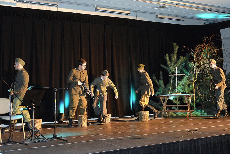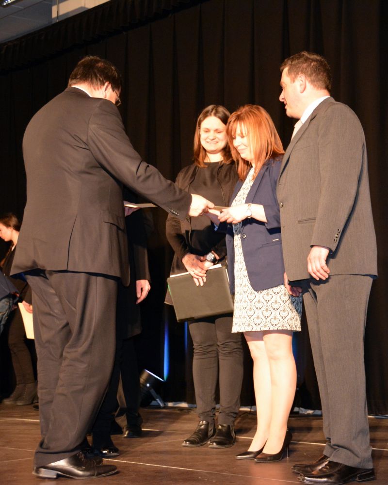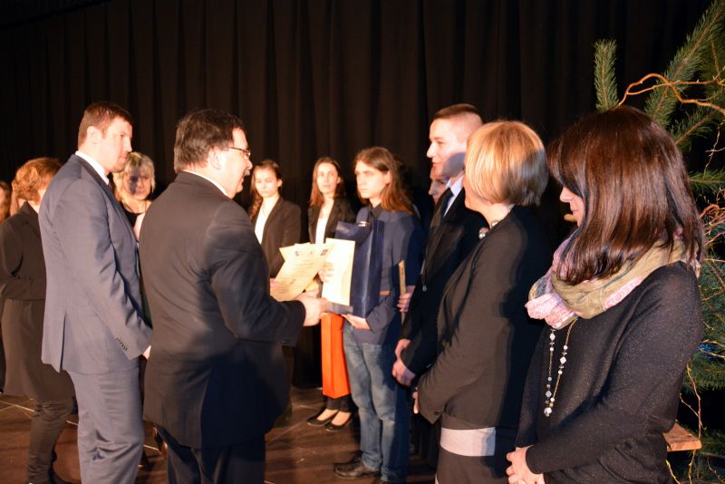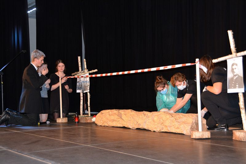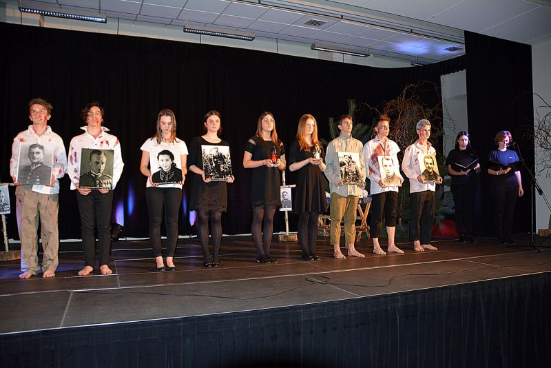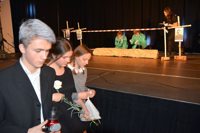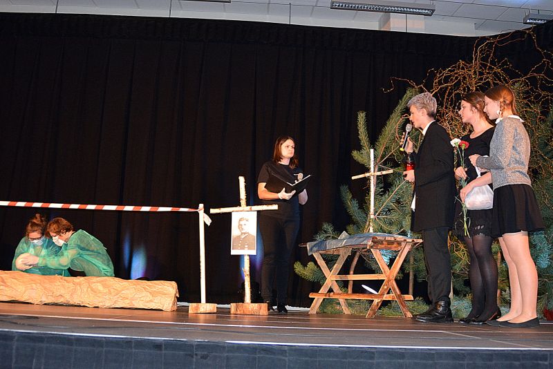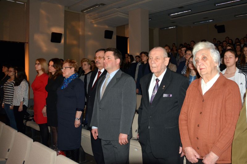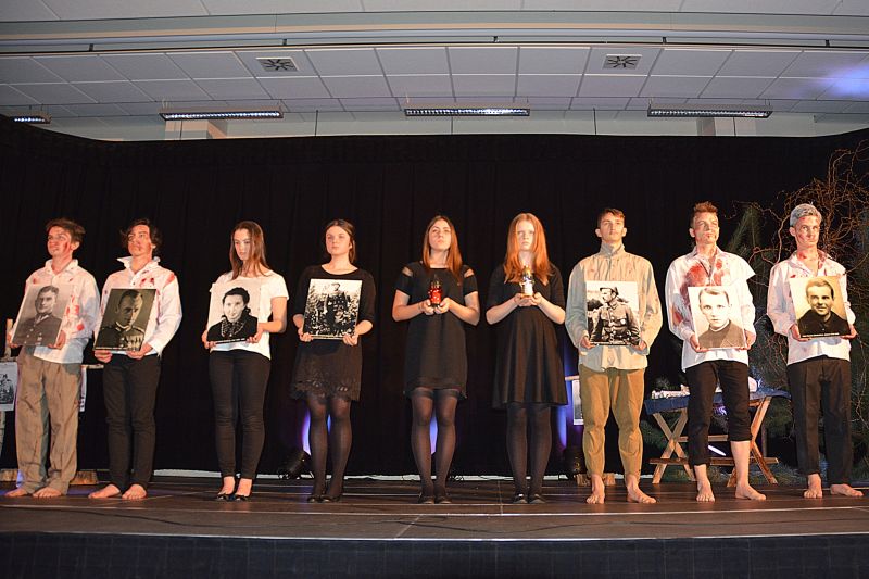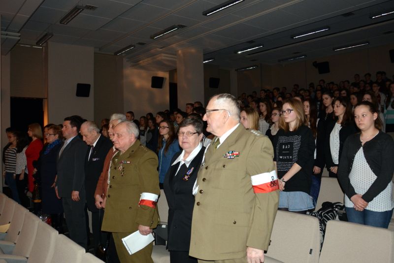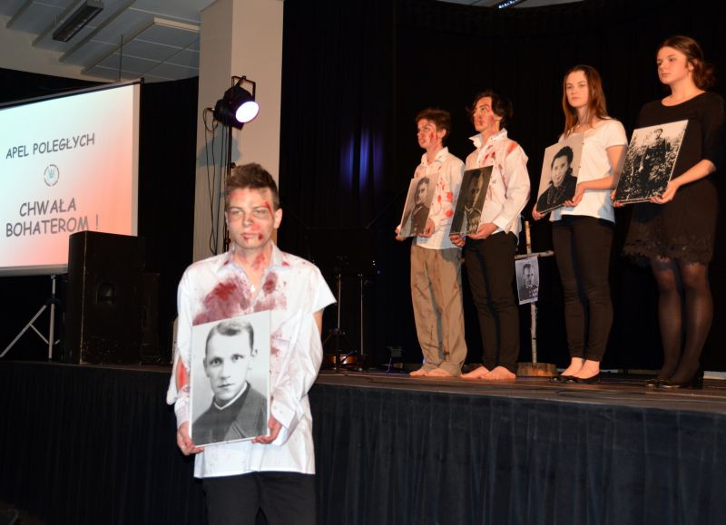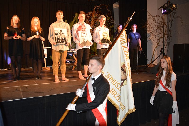 Społeczność Publicznego Gimnazjum nr 2 im. Janusza Korczaka w Brzesku po raz kolejny realizowała w tym roku projekt Żołnierze Niezłomni, Niepokorni, Wyklęci – Pamiętamy!Idea projektu Żołnierze Niezłomni, Niepokorni, Wyklęci – Pamiętamy! zrodziła się spontanicznie, niecałe 2 lata po wprowadzeniu ustawy z dnia 3 lutego 2011 roku o ustanowieniu Narodowego Dnia Pamięci Żołnierzy Wyklętych.W obecnym roku szkolnym społeczność Publicznego Gimnazjum nr 2 im. Janusza Korczaka w Brzesku realizuje już jego trzecią edycję.Nadrzędnym celem projektu jest przywracanie pamięci o Niezłomnych Bohaterach, Żołnierzach Wyklętych, którzy w imię Boga, Honoru i Ojczyzny walczyli w latach 1944 – 1963 o wolną i niepodległą Polskę.Patronat Narodowy nad projektem Żołnierze Niezłomni, Niepokorni, Wyklęci – Pamiętamy! objął Prezydent Rzeczypospolitej Polskiej Andrzej Duda w ramach ogólnopolskich obchodów ku czci Żołnierzy Wyklętych. Jest to patronat długofalowy.Projekt składa się z wielu zadań. Między innymi gimnazjum przy współudziale Kuratorium Oświaty w Krakowie po raz drugi zorganizowało małopolski konkurs historyczno–plastyczny Żołnierze Niezłomni, Niepokorni, Wyklęci – Pamiętamy! Do udziału w nim zaproszono uczniów gimnazjów i szkół ponadgimnazjalnych województwa małopolskiego. Zadanie konkursowe polegało na wykonaniu projektu grafiki (nadruku na koszulki) propagującej Narodowy Dzień Pamięci Żołnierzy Wyklętych oraz napisaniu krótkiego uzasadnienia wyboru wykorzystanych w pracy motywów graficznych.Spośród nadesłanych prac komisja wojewódzka wyłoniła laureatów i finalistkę.Laureaci w kategorii gimnazja:Emilia Gawenda – Publiczne Gimnazjum nr 2 im. Janusza Korczaka w BrzeskuMartyna Lenarczyk – Zespół Szkół Szkoła Podstawowa i Gimnazjum w BarcicachWiktoria Iskra - Publiczne Gimnazjum nr 2 im. Janusza Korczaka w BrzeskuJulia Świątkowska – ZSO nr 3 Gimnazjum nr 25 z Oddziałami Integracyjnymi w KrakowieAleksandra Góral – Zespół Szkół Samorządowych w Sułkowicach - ŁęguFinalistka w kategorii gimnazja:Sylwia Kulpa - Zespół Szkół Szkoła Podstawowa i Gimnazjum w BarcicachLaureaci w kategorii szkoły ponadgimnazjalne:Bartłomiej Paździora – Zespół Szkół w SzczurowejMichał Malczyk – Zespół Szkół Mechanicznych nr 1 im. Szczepana Humberta Technikum Mechaniczne nr 15 w KrakowieGala finałowa małopolskiego konkursu historyczno – plastycznego Żołnierze Niezłomni, Niepokorni, Wyklęci – Pamiętamy! odbyła się w dniu 4 marca w Regionalnym Centrum Kulturalno – Bibliotecznym w Brzesku w połączeniu z uroczystym Apelem Pamięci - Droga Krzyżowa Żołnierzy Wyklętych. Wzięli w niej udział laureaci i finaliści konkursu, opiekunowie naukowi, dyrektorzy szkół województwa małopolskiego, nauczyciele, uczniowie i rodzice a jako honorowi goście przedstawiciele Światowego Związku Żołnierzy Armii Krajowej - Koło Brzesko, Małopolski Wicekurator Oświaty Grzegorz Baran, władze samorządowe i oświatowe oraz przedstawiciele biur poselskich.Laureatom i finalistce Małopolski Wicekurator Oświaty wraz z sekretarzem Gminy Brzesko Stanisławem Sułkiem, który reprezentował burmistrza Grzegorza Wawrykę wręczyli zaświadczenia, a ich opiekunom naukowym podziękowania za pracę włożoną w przygotowanie młodzieży do konkursu. Ponadto laureaci i finalistka otrzymali wiele cennych nagród ufundowanych przez Burmistrza Brzeska Grzegorza Wawrykę, Instytut Pamięci Narodowej w Warszawie, Radę Rodziców przy Publicznym Gimnazjum nr 2 w Brzesku, Bank Spółdzielczy w Brzesku, Pocztę Polską S.A. oraz prywatnych sponsorów Państwa Urszulę i Sławomira Paterów. Dopełnieniem uroczystości była promocja znaczka wydanego przez Pocztę Polską S.A. z okazji Narodowego Dnia Pamięci Żołnierzy Wyklętych oraz wystawa prac konkursowych.Mieszkańcy Brzeska zostali zaproszeni na uroczysty Apelu Pamięci w dniu 5 marca. W tym roku nauczyciele i młodzież przedstawili losy Żołnierzy Wyklętych w konwencji Drogi Krzyżowej. Początkowe stacje przybliżyły sylwetki i działalność podziemną: ks. Władysława Gurgacza „Sema”, majora Zygmunta Szendzielarza „Łupaszki”, rotmistrza Witolda Pileckiego, podpułkownika Łukasza Cieplińskiego „Pługa”, sanitariuszki Danuty Siedzikówny „Inki”, sanitariuszki Lidii Lwow „Lali”, majora Hieronima Dekutowskiego „Zapory” oraz starszego sierżanta Mieczysława Dziemieszkiewicza „Roja”. Kolejne stacje naznaczone były zdradą, cierpieniem, torturami, niesłusznym oskarżeniem, skazaniem na śmierć oraz potajemnym zakopaniem ciał w bezimiennych dołach. Końcowe stacje to rozpacz „Lali”, matek, żon i dzieci po stracie ukochanych. Podczas Drogi Krzyżowej realistycznie przedstawiono prace archeologów i antropologa w kwaterze „Ł” tzw. „Łączce” na Cmentarzu Powązkowskim w Warszawie. Nie zapomniano o odczytaniu nazwisk i pokazaniu wizerunków sędziów i katów Żołnierzy Wyklętych. Ostatnią stacją był Apel Poległych. Przy Suplikacji Święty Boże uczniowie wnieśli portrety granych przez siebie Bohaterów. Po zakończeniu Drogi Krzyżowej Żołnierzy Wyklętych przedstawiono prezentację ukazującą m.in. bieżące podsumowanie projektu.Następnego dnia, w niedzielę 6 marca uczniowie gimnazjum przeprowadzili Kwestę na Ekshumacje i Identyfikacje Żołnierzy Wyklętych. Do zbiórki dołączyli także uczniowie Zespołu Szkół Ponadgimnazjalnych nr 1 w Brzesku, Kadeci z Liceum Akademickiego Korpusu Kadetów w Łysej Górze oraz „Strzelcy”.Warto wspomnieć, że społeczność gimnazjum przeprowadziła akcję informacyjno – plakatową wzywającą mieszkańców Brzeska do wywieszenia flag w dniu 1 Marca, w Narodowy Dzień Pamięci Żołnierzy Wyklętych a w najbliższym czasie - 24 kwietnia jedzie do Warszawy na uroczysty pogrzeb majora Zygmunta Szendzielarza „Łupaszki”.