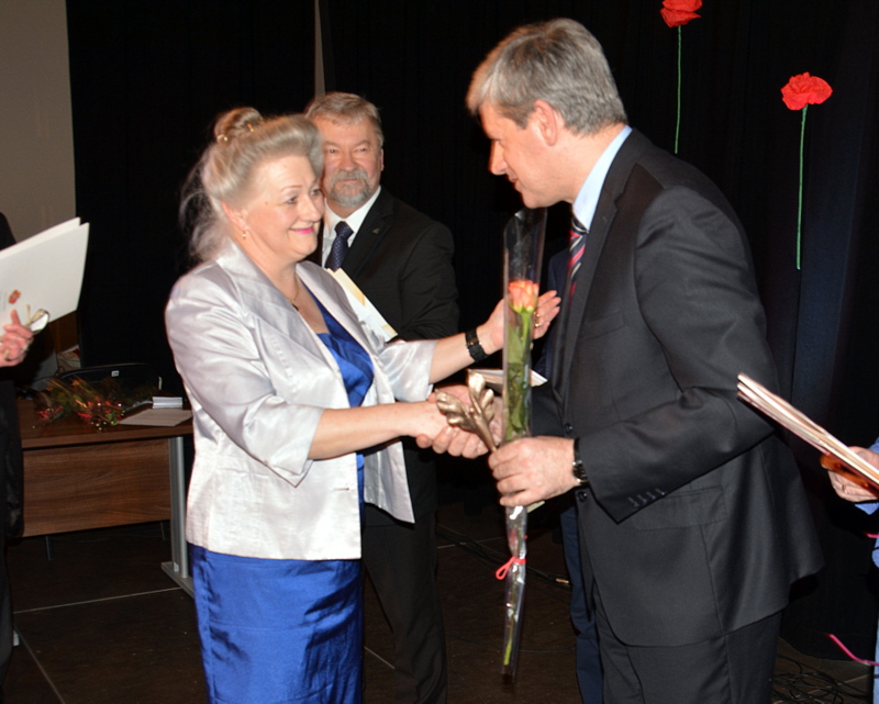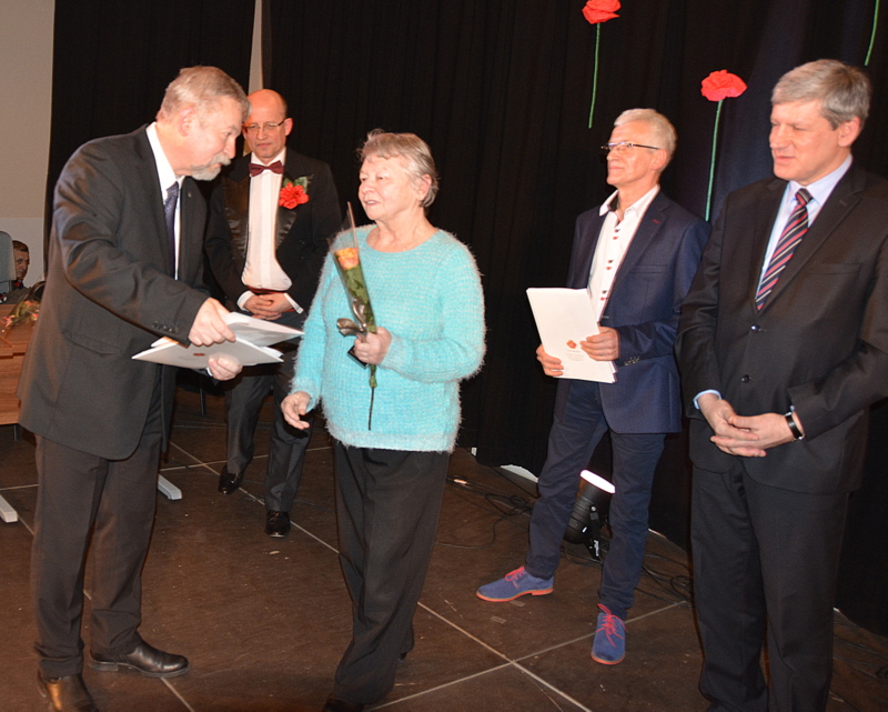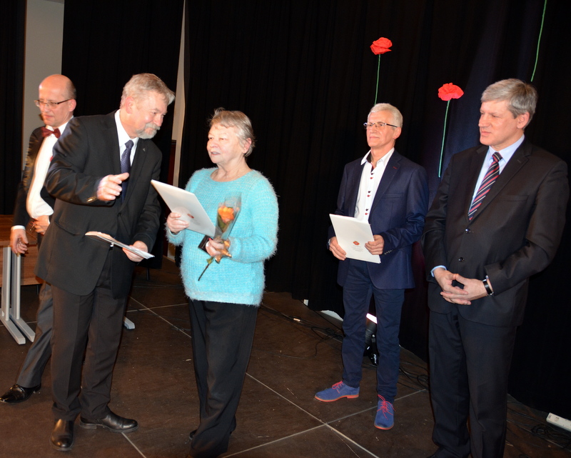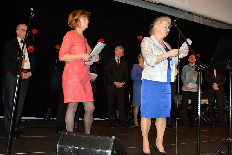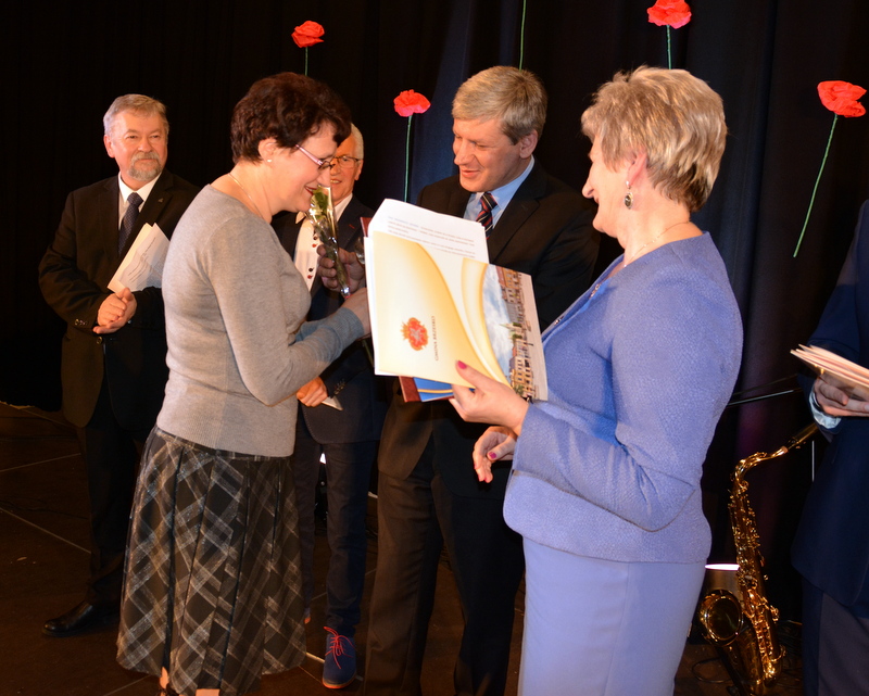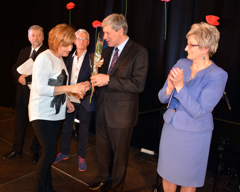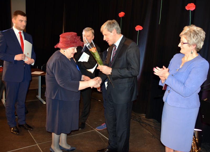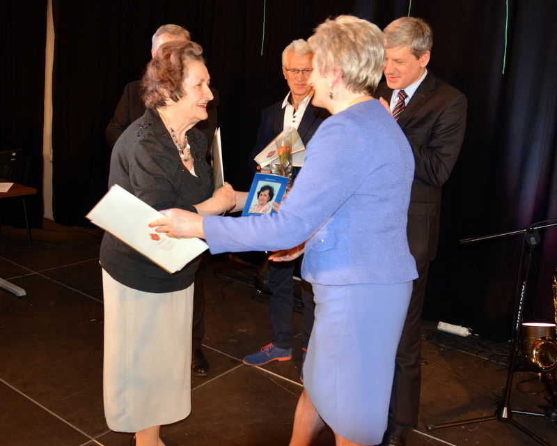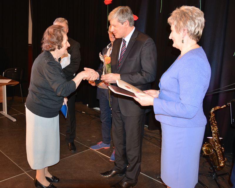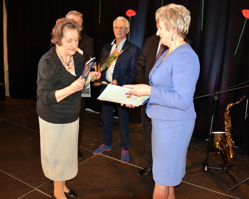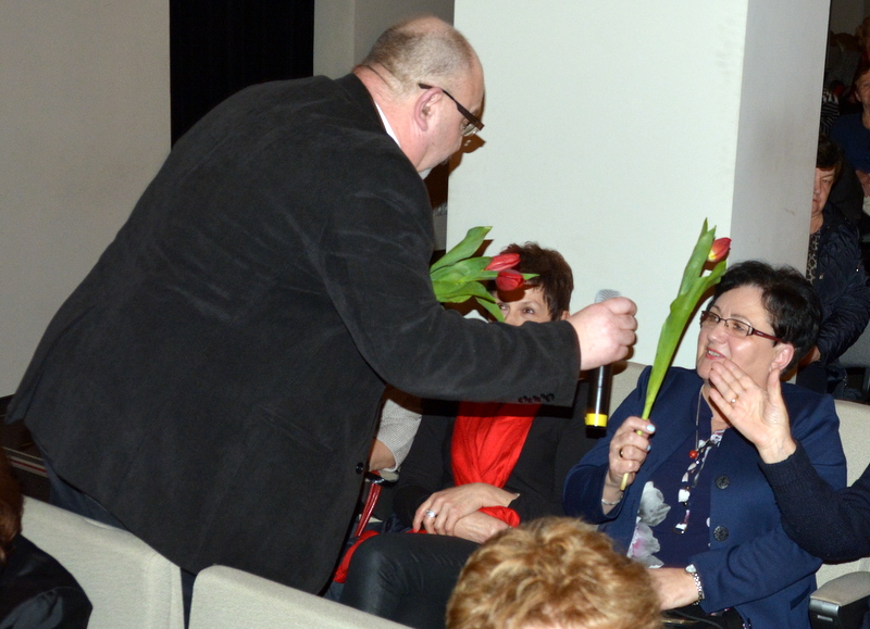 Gospodarze stanęli jak zwykle na wysokości zadania i oprócz życzeń wręczyli paniom laurki oraz piękne kwiaty. Głównymi bohaterkami niedzielnego wieczoru były panie wyróżnione statuetkami „Siłaczek 2016”. Tytuł ten oraz statuetkę otrzymały panie: Maria Karaś, Wiesława Put oraz Józefa Ferenc obchodząca stulecie urodzin.