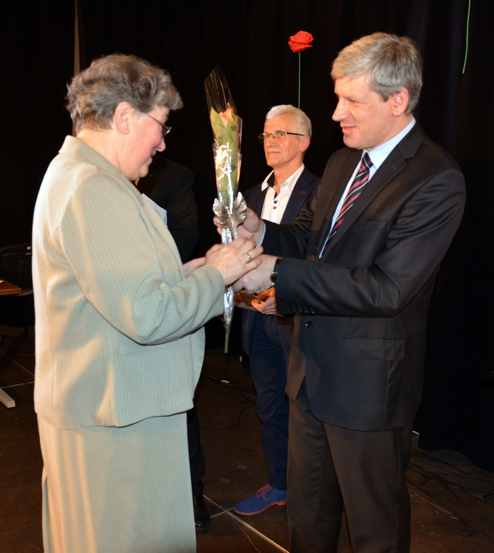 BrzeskoWe wtorkowy wieczór w sali widowiskowej Regionalnego Centrum Kulturalno-Bibliotecznego nie można było znaleźć wolnego miejsca. A to wszystko za sprawą czwartej już z rzędu uroczystości wręczenia paniom tytułów „Siłaczek”. W tym roku trzy wyróżnienia przyznał burmistrz Brzeska Grzegorz Wawryka, a czternaście pozostałych pań nominowali przewodniczący osiedli wraz z radami zarządu osiedli. Życzenia skierowane do pań złożyli: burmistrz Grzegorz Wawryka oraz przewodniczący brzeskich osiedli: panie Barbara Borowiecka, Maria Kądziołka, panowie Grzegorz Kolbusz, Marek Serwin, Marcin Ciurej, Adam Kwaśniak oraz Antoni Staszczyk. Tytułami i statuetkami „Siłaczek 2016” wyróżnionymi przez burmistrza Grzegorza Wawrykę zostały panie : Regina Głuszak, Emilia Curyło oraz siostra Teresa Bełza wraz z siostrami ze Zgromadzenia Sióstr Służebniczek NMPNP, prowadzące w Brzesku Dom Pomocy Społecznej dla dzieci i młodzieży niepełnosprawnej intelektualnie.