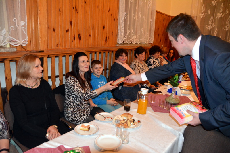 JADOWNIKIGospodarzami Święta Kobiet w Jadownikach byli burmistrz Grzegorz Wawryka oraz sołtys, a zarazem radny Jarosław Sorys. W sali Domu Ludowego przy słodkościach przygotowanych przez członkinie rady sołeckiej spotkało się ponad sześćdziesiąt pań. Życzenia przybyłym paniom złożyli burmistrz Grzegorz Wawryka, sołtys Jarosław Sorys, radny miejski Jerzy Gawiak, a także radny powiatowy Maciej Podobiński. Burmistrz wręczył paniom okolicznościowe laurki, a sołtys kwiaty i bombonierki. Wyróżnienie „Siłaczka 2016” w tym roku przypadły trzem paniom. Maria Ruszaj - od wielu lat działa na rzecz społeczności Jadownik. To z jej inicjatywy wykonano po raz pierwszy asfaltowanie ulic: Małopolskiej, Podgórskiej, Witosa i Prokopa. Przez swoje zaangażowanie i ciężką pracę zyskała ogólny szacunek zarówno wśród młodszych jak i starszych mieszkańców Jadownik.Zofia Kubala od 1980 roku zaangażowana jest w działalność NSZZ „Solidarność”, organizatorka i założycielka NSZZ „Solidarność” w Brzesku, członkini Akcji Katolickiej, Towarzystwa Przyjaciół Ziemi Jadownickiej. Maria Mila- opiekun harcerstwa, organizuje z dziećmi pomoc dla potrzebujących rodzin w okresach świątecznych, członkini Akcji Katolickiej i parafialnego oddziału Caritas.