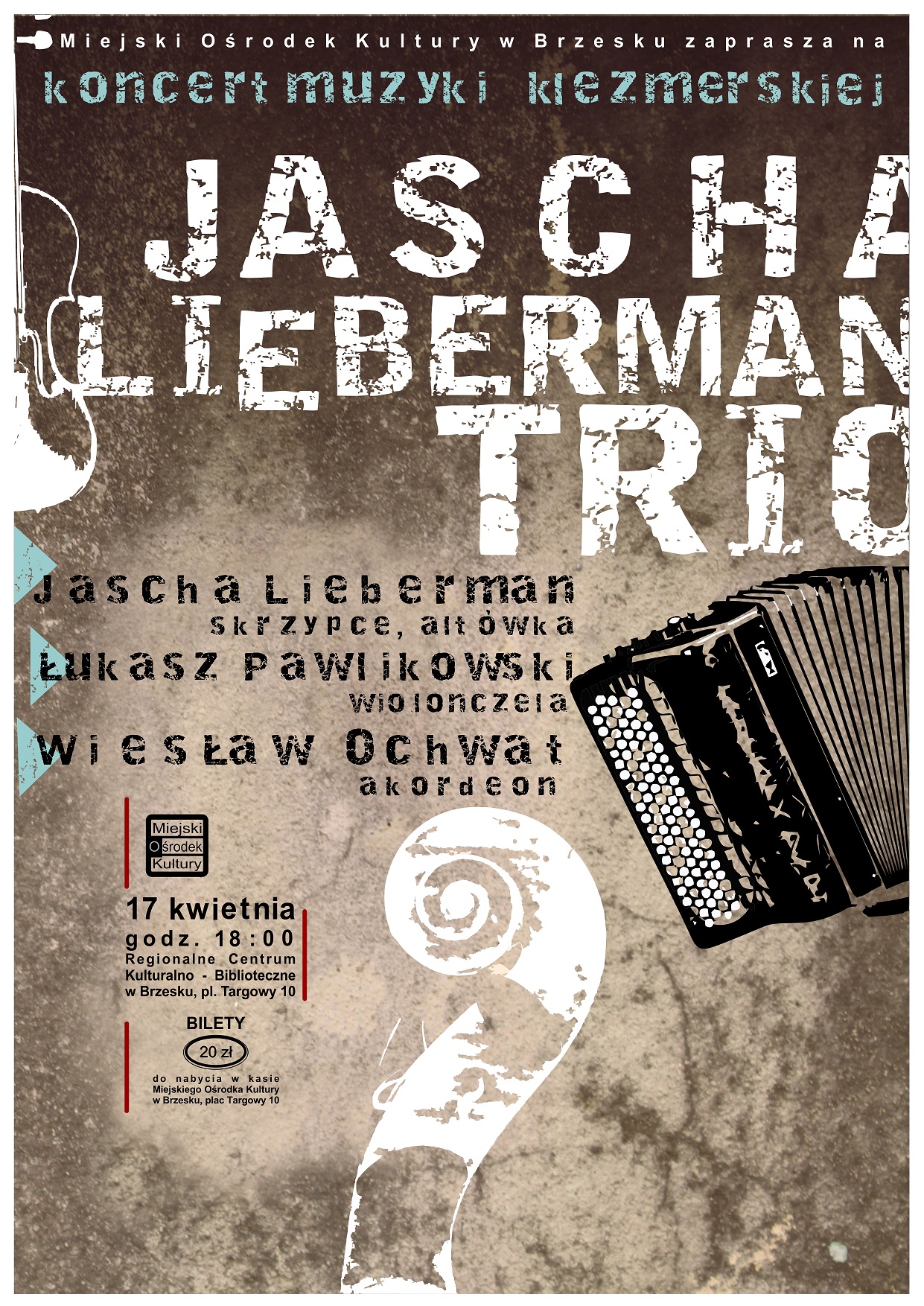 Miejski Ośrodek Kultury zaprasza na koncerty, które odbędą się w kwietniu. Widzowie będą mieli okazję wysłuchać koncertu muzyki klezmerskiej, w którym wystąpi znakomity muzyk Wiesław Ochwat z Brzeska. Przed brzeską publicznością zaprezentują się również zespoły "Moja szkatułka" i "Schmidt electric". Szczegóły o koncertach na plakatach.