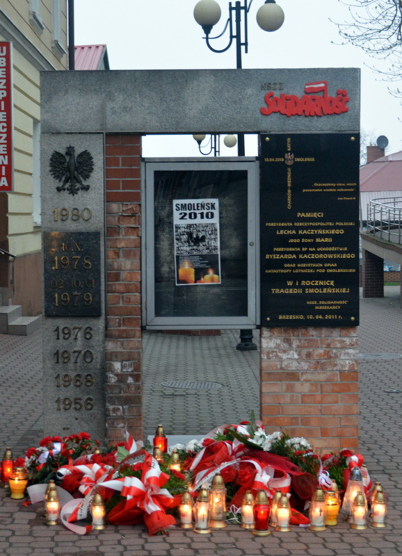 W pierwszą rocznice katastrofy smoleńskiej społeczność Jadownik ufundowała tablicę pamiątkową, którą odsłonięto na tamtejszym cmentarzu parafialnym. Również w Brzesku na obelisku poświęconym NSZZ Solidarność przy ul. Chopina w pierwszą rocznicę odsłonięto tablicę pamiątkową poświęconą ofiarom tragicznego w skutkach lotu. Inicjatorami odsłonięcia tablicy była członkini NSZZ Solidarność śp. Irena Ślusarczyk oraz burmistrz Brzeska Grzegorz Wawryka. Tablicę wykonał Władysław Wojnicki, kamieniarz, członek brzeskiego Cechu. Już w pierwszą i drugą rocznicę gościliśmy w Regionalnym Centrum–Kulturalno Bibliotecznym uczestników rajdu rowerowego pamięci Prezydenta RP Lecha Kaczyńskiego.