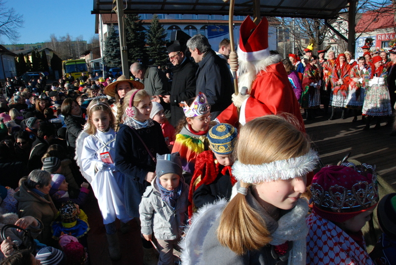 Przy nietypowej jak na tę porę roku pogodzie, ulicami miasta przechodzili królowie i aniołowie i ze śpiewem na ustach przypominali o dzisiejszym święcie. Pochód wyruszył z Placu Kazimierza Wielkiego, a prowadził go przebrany za Mikołaja, kierownik Biura Promocji, Krzysztof Bigaj.