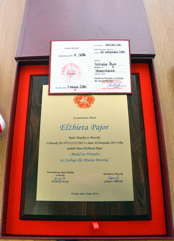 Uroczysta sesja Rady Miejskiej, msza w intencji ojczyzny oraz złożenie kwiatów pod Pomnikiem Nieznanego Żołnierza - to program brzeskich uroczystości związanych z obchodami rocznicy uchwalenia Konstytucji 3 Maja.W czasie uroczystej sesji Rady Miejskiej Elżbieta Pajor z rąk burmistrza Grzegorza Wawryki i przewodniczącego Rady Miejskiej Krzysztofa Ojczyka odebrała Medal na Wstędze za Zasługi dla Miasta Brzeska. Na sesji, oprócz radnych obecni byli sołtysi, przewodniczący rad osiedlowych, przedstawiciele szkół i młodzież.