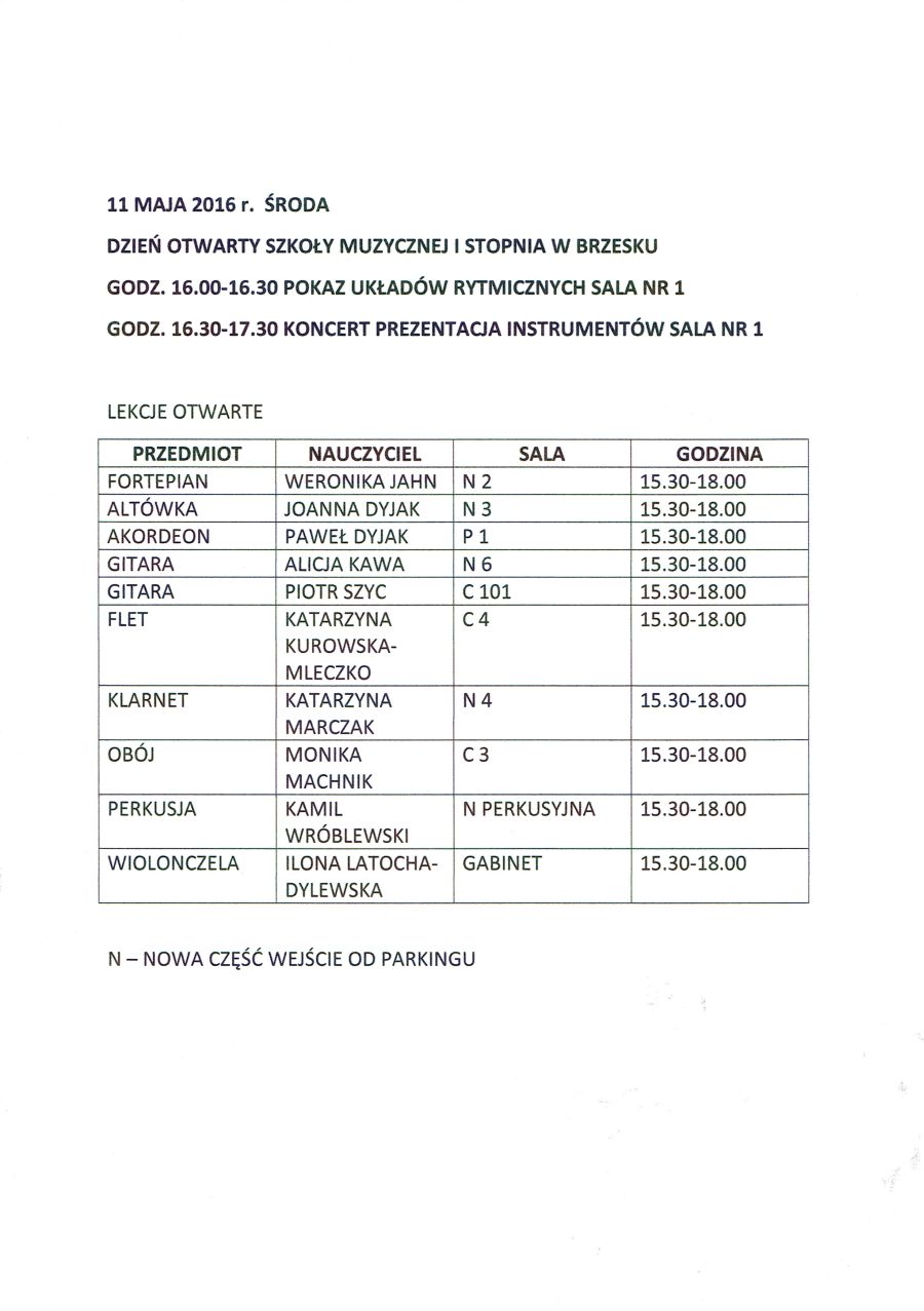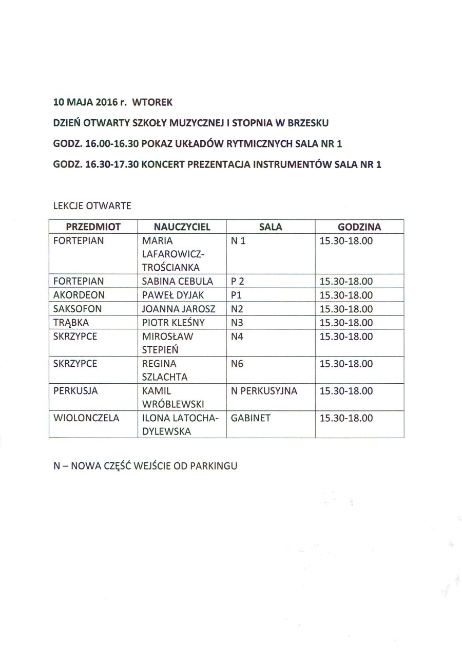 Szkoła Muzyczna I Stopnia w Brzesku zaprasza na dni otwarte w dniach 10 i 11 maja. Podczas tych dni będzie można oglądnąć pokazy układów rytmicznych oraz koncert i prezentacje instrumentów, a także uczestniczyć w lekcjach otwartych. Szczegółowe informacje w załącznikach poniżej.