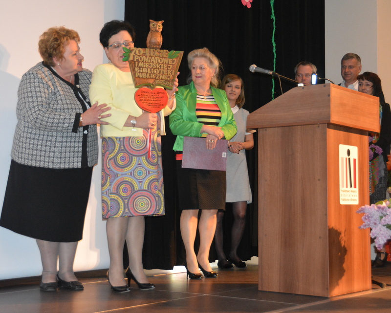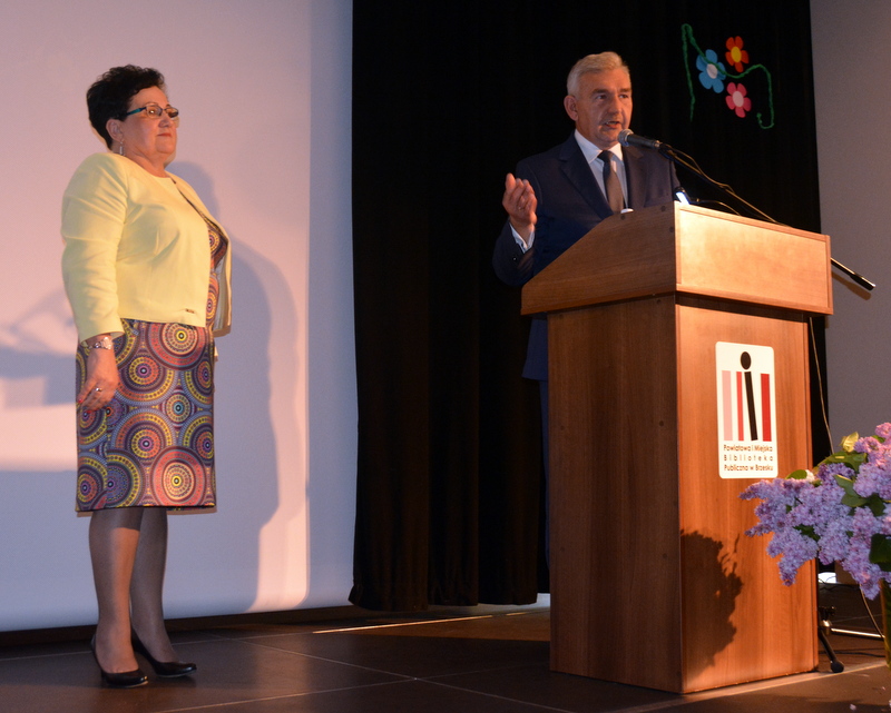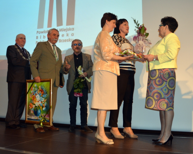 -Biblioteka to jedna z ważniejszych placówek na mapie naszej gminy - mówi burmistrz Grzegorz Wawryka. -Wspieramy ją finansowo, dbamy o czytelników i pracowników. Od kilku lat placówka zajmuje godny jej rangi obiekt, co zapewne sprzyja jej rozwojowi i zachęca czytelników do korzystania z biblioteki.Po części oficjalnej swoje występy zaprezentowały dzieci z przedszkola nr 1, grupa teatralna MISZMASZ” z brzeskiej „trójki”, grupa stonoga ze szkoły podstawowej nr 2 oraz młodzież z Miejskiego Ośrodka Kultury.Historia bibliotekiPrzed II wojną światową Brzesko miasto małe zamieszkałe w 40 procent przez ludność żydowską, nie prowadziło biblioteki publicznej. Książka była cennym skarbem, na posiadanie którego stać było nielicznych. Przed 1939 rokiem uporządkowany największy księgozbiór liczący ok 5000 szt. posiadał Antoni Goetz Okocimski. Były to w większości pozycje w języku angielskim, francuskim i niemieckim. Znacznie mniejsze księgozbiory znajdowały się w dworach ziemiańskich w powiecie brzeskim m. in u Jana Jastrzębskiego w Dębnie, Aleksandra Kępińskiego w Szczurowej, Stefana Fischingera w Biesiadkach czy Stefana Dunikowskiego w Stróżach. W każdym z tych dworów szczycono się posiadaniem książek.W samym Brzesku w domach i mieszkaniach inteligencji znajdowało się od kilku do kilkunastu książek. Gromadziły książki rodziny, Bernackich, Brzeskich, Korzeniowskich, Mayerów, Zydroniów czy Górnisiewiczów na Słotwinie.Nieco większe kolekcje posiadały organizacje społeczne i instytucje takie jak: Towarzystwo Szkoły ludowej, Towarzystwo Gimnastyczne „Sokół”, Kasyno Urzędnicze czy Policealny Klub Sportowy. Po wybuchu II wojny Światowej księgozbiory te zostały rozdane do przechowania mieszkańcom Brzeska. W 1945 roku po zakończeniu działań wojennych Związek Byłych Więźniów Ideowo Politycznych zorganizował przy pomocy młodzieży zbiórkę książek przechowywanych przez mieszkańców w czasie wojny i uruchomił Wypożyczalnię w małym posklepowym lokalu przy ul. Kościuszki 36. Warunki w lokalu przeznaczonym na wypożyczalnię te były bardzo trudne. Niedługo wypożyczalnię zamknięto.Rok 1946 to rok wydania dekretu o bibliotekach i opiece nad zbiorami bibliotecznymi, którym to dekretem władze oświatowe zostają zobligowane do tworzenia na swoich terenach placówek bibliotecznych. Na mocy dekretu Wydział Powiatowy w Brzesku powołał 6 maja 1946 roku Powiatową Bibliotekę Publiczną. Przejął księgozbiory zgromadzone przez ZBWIP i po uporządkowaniu przekazał nowopowstałej Bibliotece. Oczywiście księgozbiór umieszczono ponownie w lokalu byłej wypożyczalni. Zimą praca w tym lokalu jest praktycznie niemożliwa.Władze Powiatowe widząc tak trudne warunki pracy zakupiły od Izraelickiej Gminy Żydowskiej budynek dawnego Domu Modlitwy przy ulicy Łaziennej za kwotę 750 tys. zł Budynek po wyremontowaniu i wyposażeniu dzięki funduszom Ministerstwa Oświaty oddano do użytkowania Bibliotece w 1949 roku. Księgozbiór Biblioteki systematycznie się rozrastał ale głownie dzięki darom i księgozbiorom kupowanym z funduszy zbieranych z okazji święta oświaty. Biblioteki zgodnie z postanowieniami dekretu utworzyły trzystopniową sieć obejmującą biblioteki wojewódzkie, powiatowe i gminne (miejskie). Opiekę merytoryczną nad bibliotekami stopnia powiatowego sprawowała Wojewódzka Biblioteka Publiczna w Krakowie.20 stycznia 1947 roku księgozbiór Biblioteki Powiatowej został podzielony i utworzona została Miejska Biblioteka Publiczna. Od tej pory działa w mieście 2 biblioteki. Biblioteka Miejska obsługuje mieszkańców miasta. Księgozbiór Biblioteki Powiatowej wypożyczany jest często do filii i punktów bibliotecznych w powiecie. Biblioteki były jednymi z pierwszych instytucji służących zaspokajaniu potrzeb czytelniczych i edukacyjnych mieszkańców gminy. Zaczynały często od form najprostszych czyli nauki czytania i walki z analfabetyzmem. Później wprowadzały ambitniejsze formy pracy z tekstem i umożliwiały ludności zetknięcie się z wartościową literaturą zarówno dla dzieci jak i dla dorosłych.Pierwszym dyrektorem Biblioteki brzeskiej była Jadwiga Dudekowa, emerytowana nauczycielka, która pracowała tylko do marca 1949 roku. Po jej odejściu obowiązki kierownika na pół roku objął pan Artur Lenczewski, późniejszy wieloletni wykładowca w POKB w Jarocinie.1 października 1949 roku stanowisko kierownika Brzeskiej Biblioteki obejmuje Maria Pawlikowa przybyła do Brzeska z Łabiszyna w woj. bydgoskim. Obejmując funkcję kierownika wzięła pod opiekę 8 bibliotek, 9.000 książek i około 2.000 czytelników. Bibliotekę prowadziła przez równe 30 lat aż do przejścia na emeryturę. Pani Maria to żelazna dama bibliotekarstwa, znana i szanowana, choć powojenne czasy były bardzo trudne do realizacji przypisanych bibliotece zadań. Zadaniem Biblioteki Powiatowej było wówczas zakładanie w każdej miejscowości powiatu bibliotek gminnych ich filii czy punktów bibliotecznych . Braki finansowe, brak lokali powodują ciągłe utarczki z władzami gmin. Nie zraża to jednak Pani Marii. Im trudniej, tym większa determinacja. Wędruje często po kilkanaście km po błocie aby dotrzeć do danej miejscowości, Rezultatem podejmowanych działań jest utworzenie już w 1953 roku najgęstszej sieci bibliotek (40) i 110 punktów bibliotecznych za co biblioteka w dowód uznania otrzymuje Proporzec Przodującej Biblioteki . Dowody uznania pojawią się w pracy zawodowej Pani Marii jeszcze wielokrotnie. Odznaczona u kresu swej pracy nawet Krzyżem Kawalerskim Orderu Odrodzenia Polski – jednym z najwyższych odznaczeń państwowych.Dekret a później ustawa o bibliotekach w trwały sposób związały sieć bibliotek publicznych z terenowym układem jednostek administracji państwowej. W 1954 roku w miejsce gmin utworzono gromady a biblioteki gminne przemianowano na