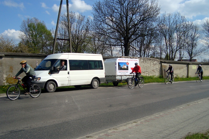 Wyruszyli w piątek 29 kwietnia. Towarzyszył im wóz techniczny, który w razie potrzeby miał służyć pomocą. Trasę udało się pokonać bez groźnych upadków i awarii sprzętu. Organizator wspomina, że nie brakowało jednak nieplanowanych przygód - „pewnego dnia podczas jazdy okazało się, że droga została zamknięta i trzeba było szukać objazdu. Mimo wybrania najkrótszej trasy musieliśmy nadłożyć kilkanaście kilometrów. Niektóre odcinki były bardzo trudne do przebycia: wąskie ścieżki leśne z bardzo dużymi kałużami, uliczki wysypane kamieniami, czy błotniste polne dróżki. Również Gniezno przywitało nas niełatwą, piaszczystą drogą". Trasa podzielona została na cztery odcinki. Po zakończeniu każdego z nich rowerzyści nocowali w hotelach i gospodarstwach agroturystycznych. Pokoje rezerwowali ponad miesiąc wcześniej, by nic nie zaskoczyło ich w ostatniej chwili. Wyruszyli o godz 15:00, dlatego pierwszego dnia pokonali „zaledwie" 65km. W kolejnych dniach przejechali 170,130 i 120 kilometrów. Wybrali drogi lokalne, które rowerem można przemierzać swobodniej i bezpieczniej, niż te ruchliwe.
