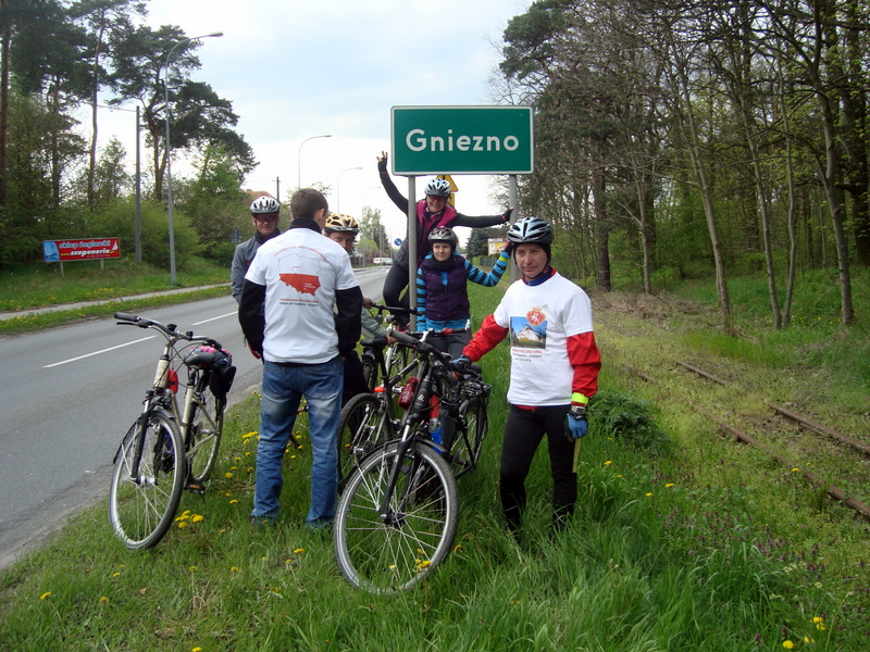 W poniedziałek 2-go maja dotarli do Gniezna. Nie informowali nikogo o swojej niecodziennej pielgrzymce, dlatego na miejscu nikt na nich nie czekał. „Nikt, prócz św. Wojciecha, u grobu którego byliśmy 3-go maja podczas uroczystej mszy św, którą koncelebrował m.in. ks. Sobol" - podkreśla Piotr Tota. Po mszy wzięli udział w majowych uroczystościach organizowanych w mieście. Po południu zwiedzili Gniezno i udali się w do domu. Zapakowali rowery na przyczepkę, a sami wrócili busem.