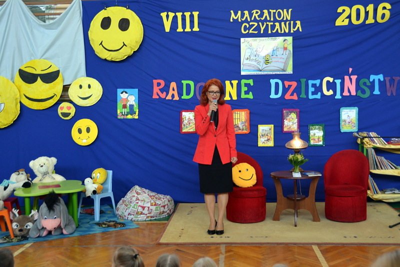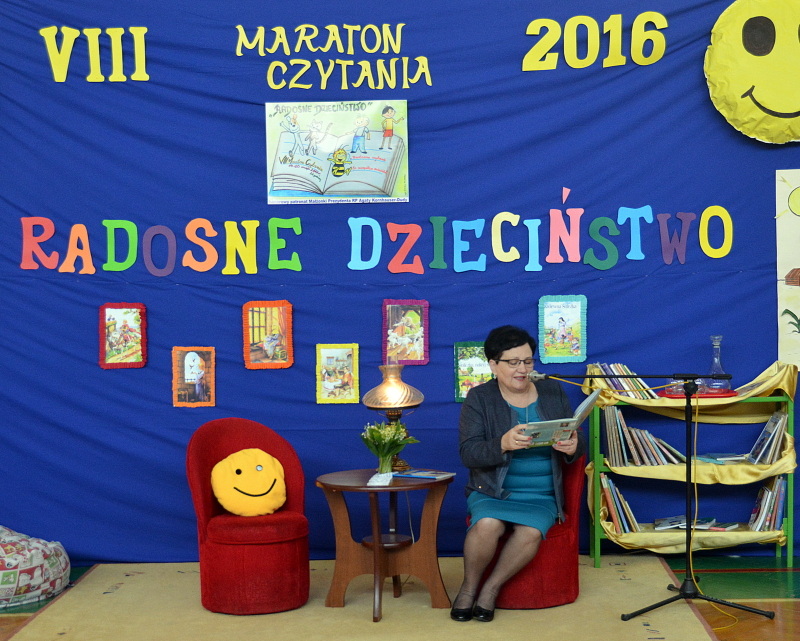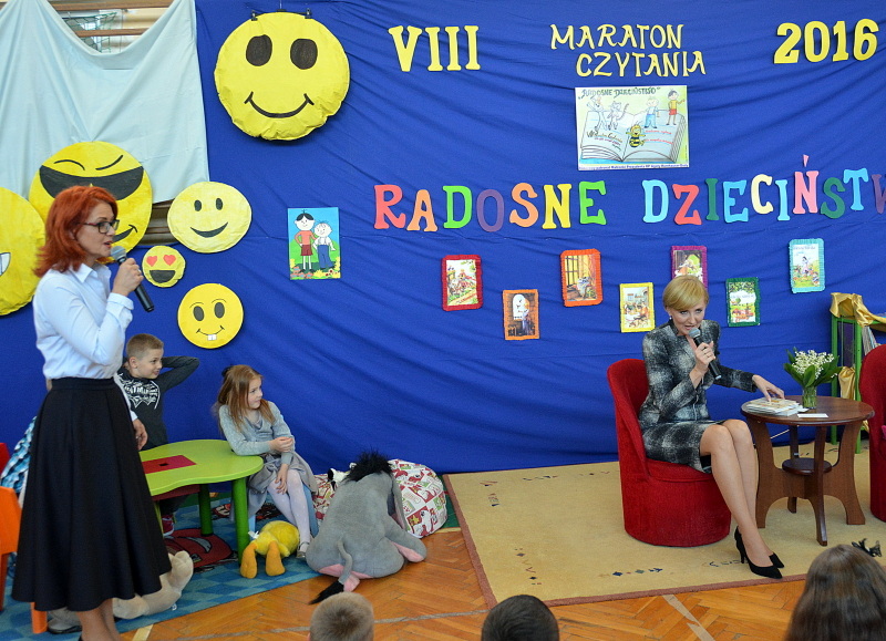 Pani Prezydentowa po przywitaniu się z dziećmi, opowiadała im o zagrożeniach jakie wynikają z rozwoju technologii elektronicznych i ich popularność wśród dzieci i młodzieży. Mówiła także o tym, że żadne urządzenie elektroniczne nie zastąpi książki, ani właściwych relacji międzyludzkich. Pierwsza Dama przeczytała dzieciom fragment powieści Henryka Sienkiewicza „W pustyni i w puszczy” opowiadający o spotkaniu Nel ze słoniem. Książka nie była wybrana przypadkowo, gdyż 2016 rok jest uchwałą Senatu ustanowiony Rokiem Henryka Sienkiewicza. Pani Prezydentowa przeczytała także urywek trzeciej części przygód o Mikołajku, autorstwa Rene Goscinnego pod tytułem ”Mikołajek i inne chłopaki”.