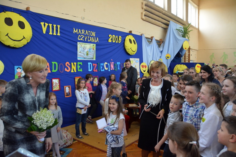 Pierwsza Dama – Agata Kornhauser-Duda przyjechała w ostatni czwartek do Brzeska, aby wziąć udział w organizowanym w Szkole Podstawowej nr 2, 24-godzinnym maratonie czytania. W tym roku odbyła się już ósma edycja maratonu, którego główną organizatorką jest polonistka z brzeskiej „dwójki” Agata Podłęcka, która do czytania przekonuje nie tylko dzieci, ale także dorosłych. Tegoroczne spotkanie przebiegało pod hasłem: „Radosne czytanie to szczęśliwe dzieciństwo”.