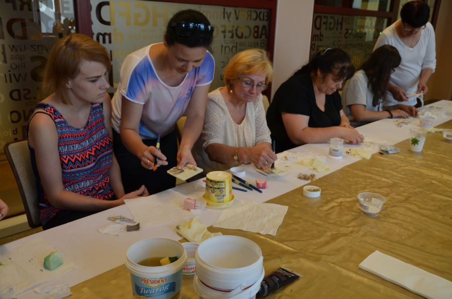 Dużym zainteresowaniem cieszyły się warsztaty prowadzone przez panią Iwonę Tomasik, na których uczestnicy mieli okazję nauczyć się techniki zdobniczej - decoupagu.
