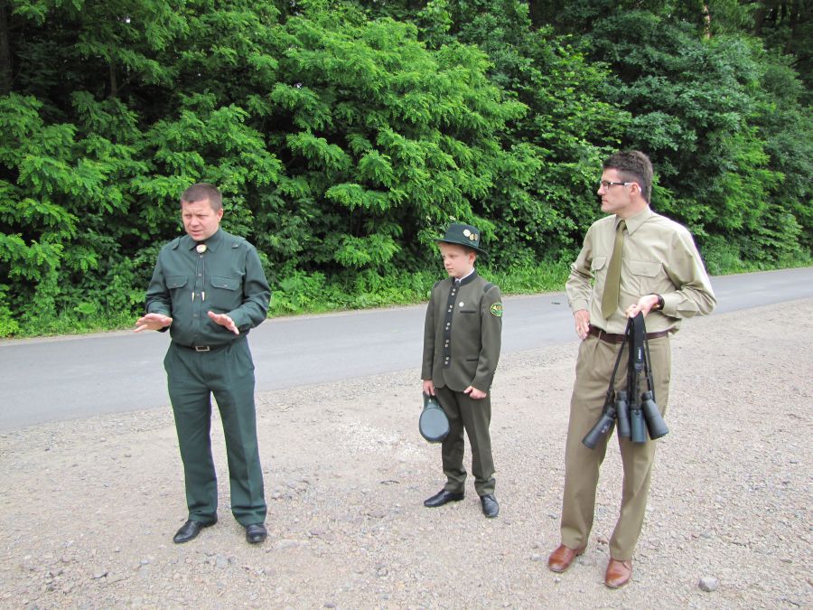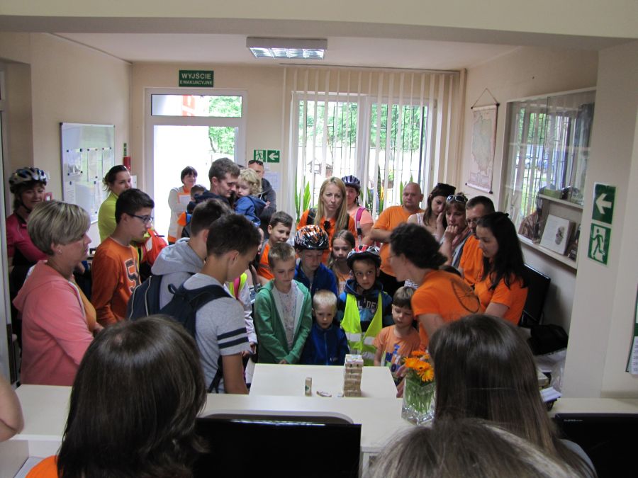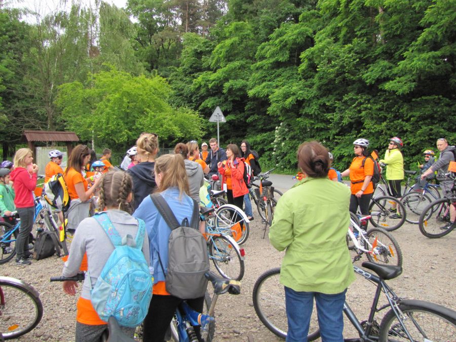 Po krótkim instruktażu starszego aspiranta Roberta Gładysza na temat zasad bezpiecznego poruszania się po drogach publicznych, uformowaliśmy piętnastoosobowe grupy i ruszyliśmy do Lasu Szczepanowskiego, aby tam rozpocząć spacer ścieżką ekologiczną. Sygnał zbiórki dał rożkiem myśliwski dwunastoletni Bartek Tobiasz, a następnie na ośmiu wybranych przystankach nasi prelegenci opowiadali o poszczególnych elementach ekosystemu jakim jest las. Na zakończenie wędrówki Bartek jeszcze raz dał popis sygnałów łowieckich i rowerami ruszyliśmy do Jodłówki na piknik edukacyjny, na którym oprócz poczęstunku powstała leśna galeria ptaków namalowanych przez dzieci na dużych kartonach, a wielu uczestników napisało piękne wierszyki.