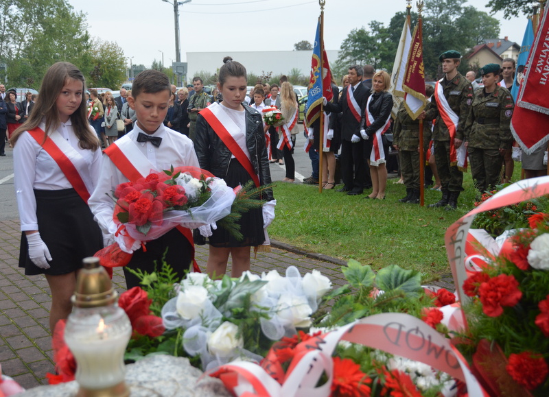 Na zakończenie rocznicowych obchodów samorządowcy z burmistrzem Grzegorzem Wawryką i radnymi na czele, przedstawiciele szkół, organizacji pozarządowych, kombatanci i przedstawiciele służb mundurowych składali po pomnikiem kwiaty. Pod Pomnikiem Ofiar Bombardowania stawiła się także duża grupa dzieci i młodzieży oraz harcerzy, którzy pełnili pod pomnikiem wartę honorową. Uroczystości uświetniła Miejska Orkiestra Dęta.