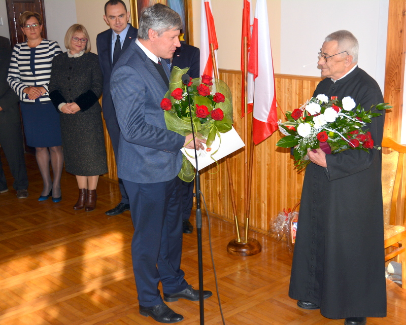 Gratulacje księdzu Ignacemu Piwowarskiemu złożyli również w imieniu Rady Miejskiej wiceprzewodniczący Piotr Wyczesany oraz członkowie Stowarzyszenia z prezesem Stanisławem Górą na czele. Po zakończeniu uroczystości burmistrz wręczył ministrowi Adamowi Kwiatkowskiemu miniaturę malarską z widokiem brzeskiego rynku. Przypomnijmy, że minister po raz pierwszy gościł w Brzesku podczas pamiętnej wizyty w 2010 roku śp. Prezydenta RP Lecha Kaczyńskiego, a później wielokrotnie podczas uroczystości upamiętniających rocznice katastrofy smoleńskiej.