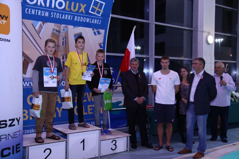 Dekoracji zwycięzców XIV Zawodów Pływackich z okazji Św. Niepodległości dokonał dyrektor BOSiR Marek Dadej, burmistrz Grzegorz Wawryka oraz Wojciech Wojdak.