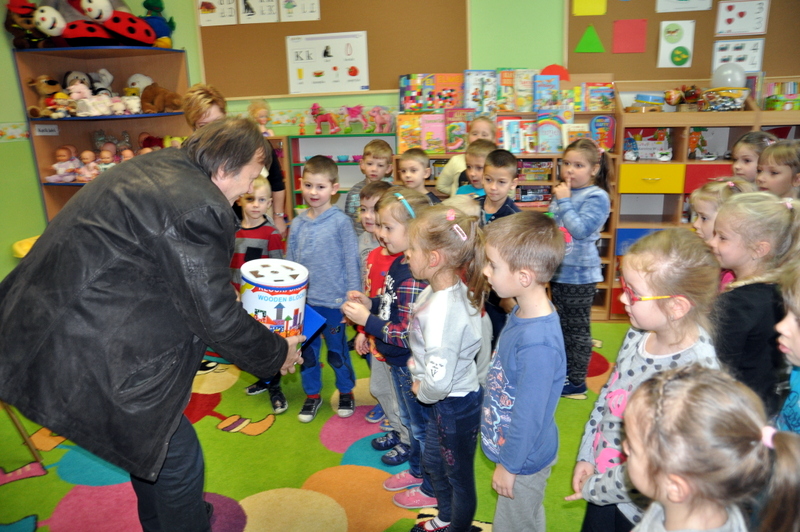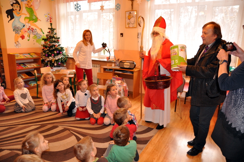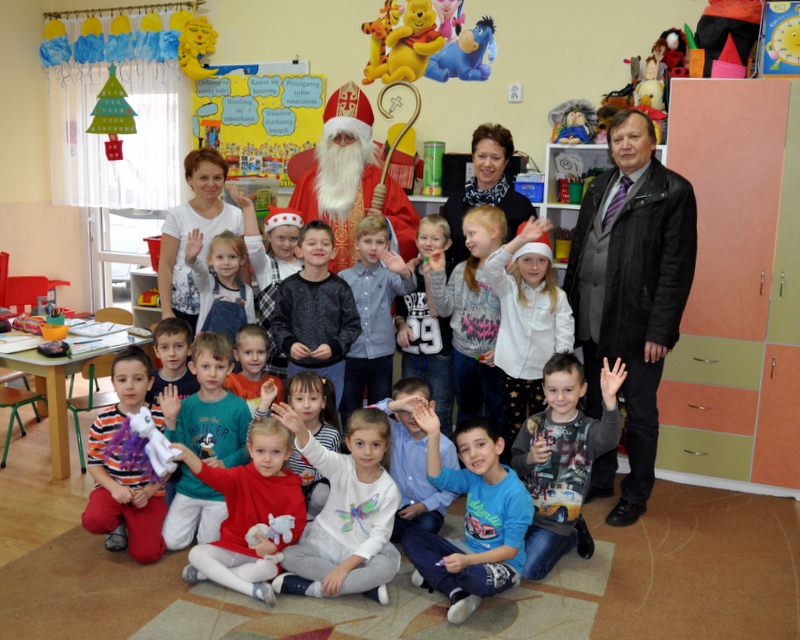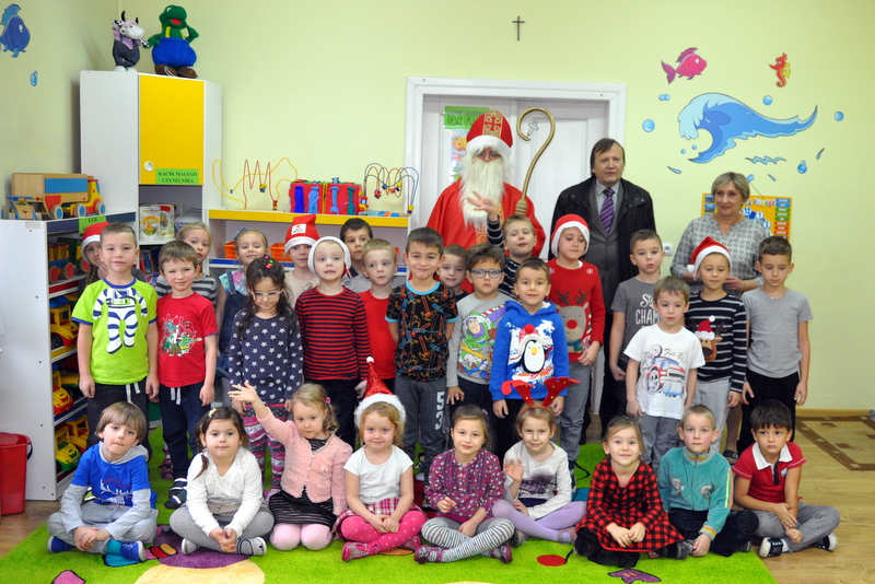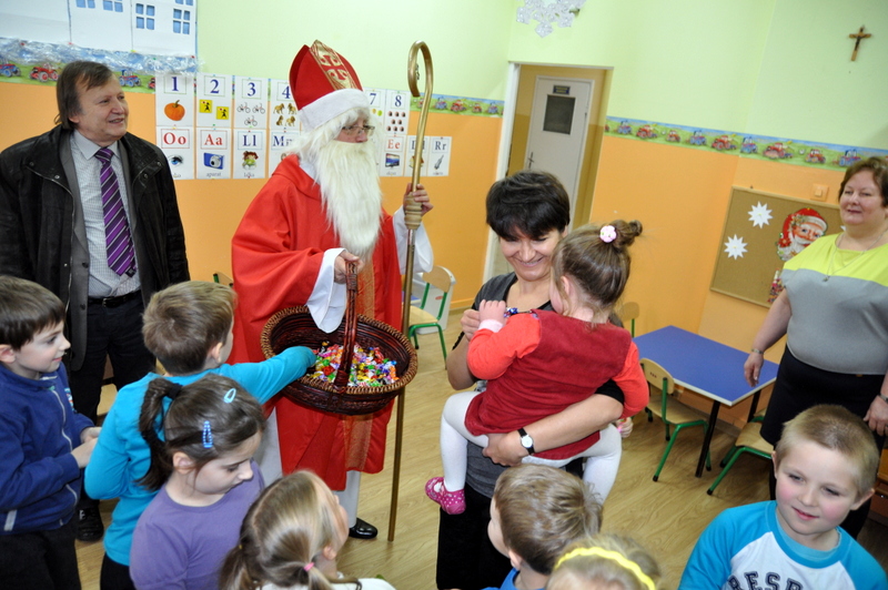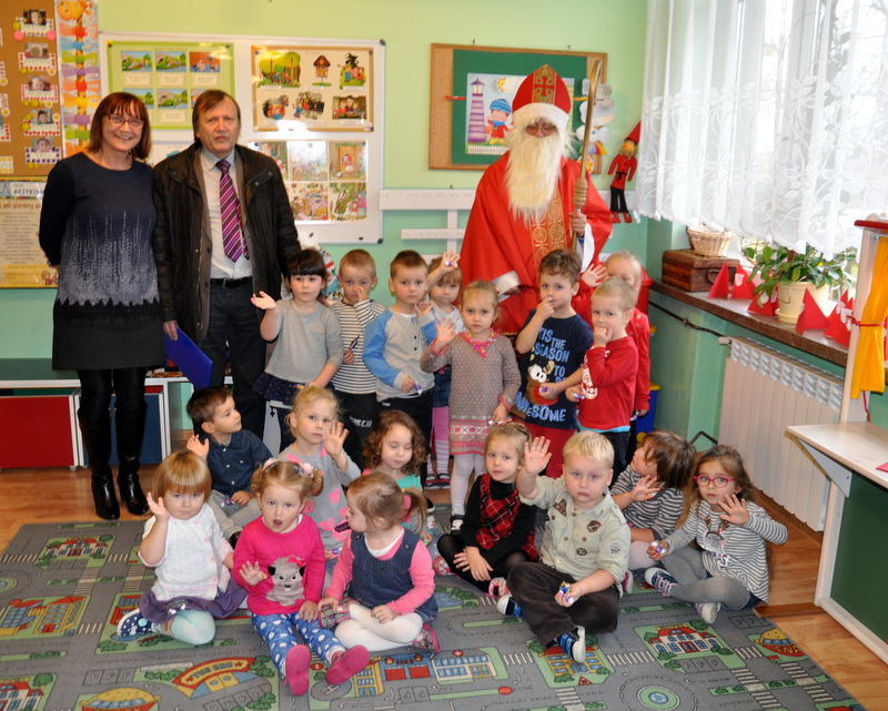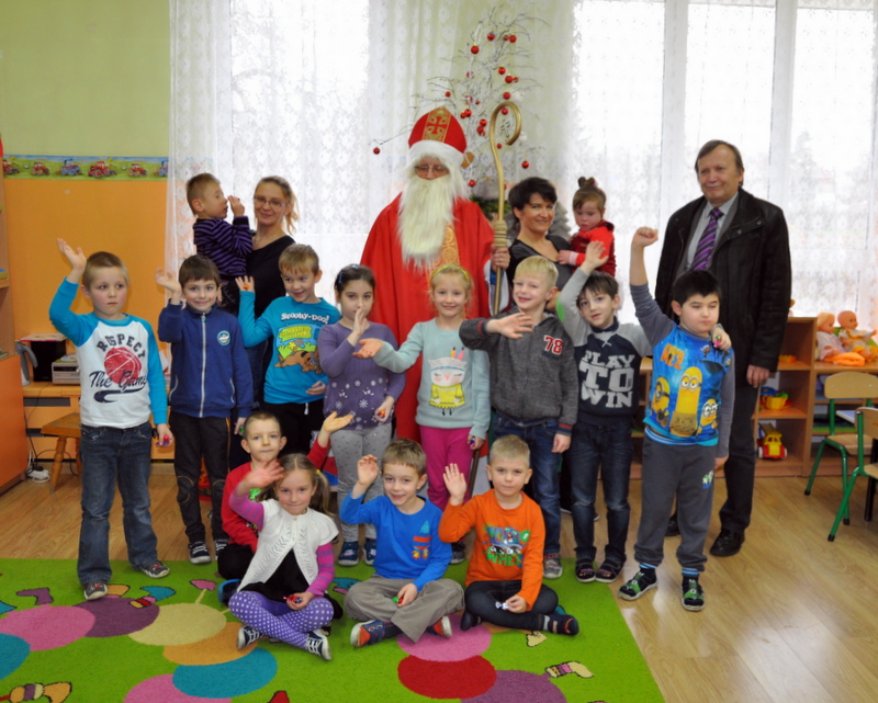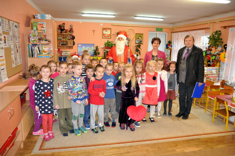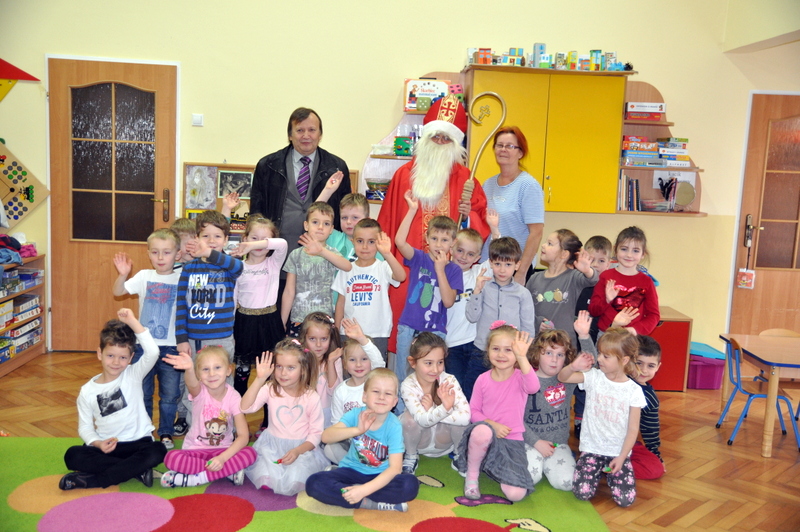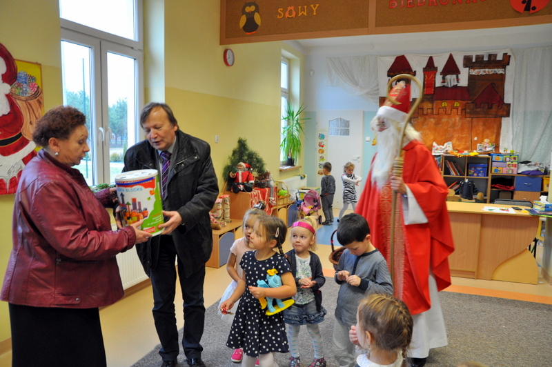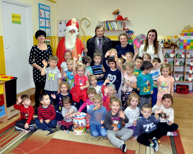 Burmistrz Grzegorz Wawryka przekazał przedszkolakom w prezencie mikołajowym okazale pudła i worki z zabawkami. Także radni przekazali nowootwartej placówce przedszkolnej prezenty.
