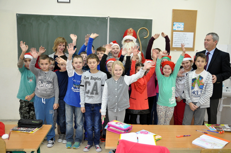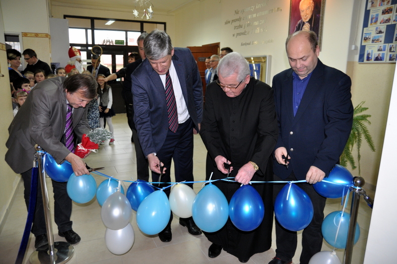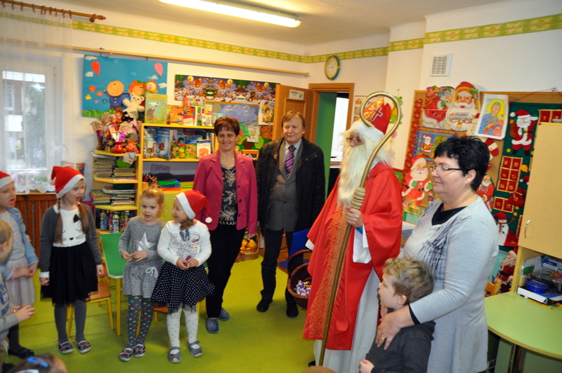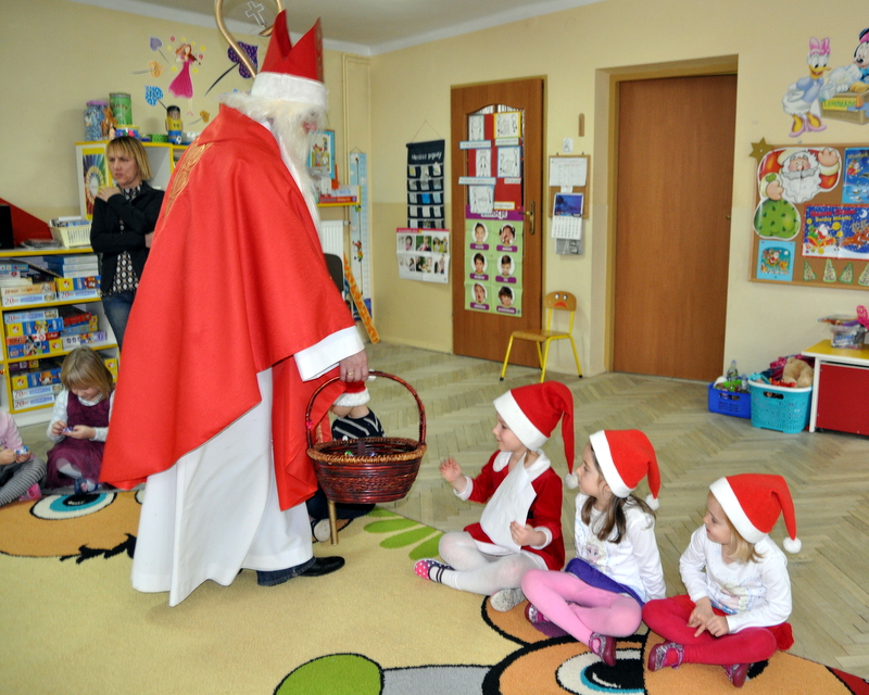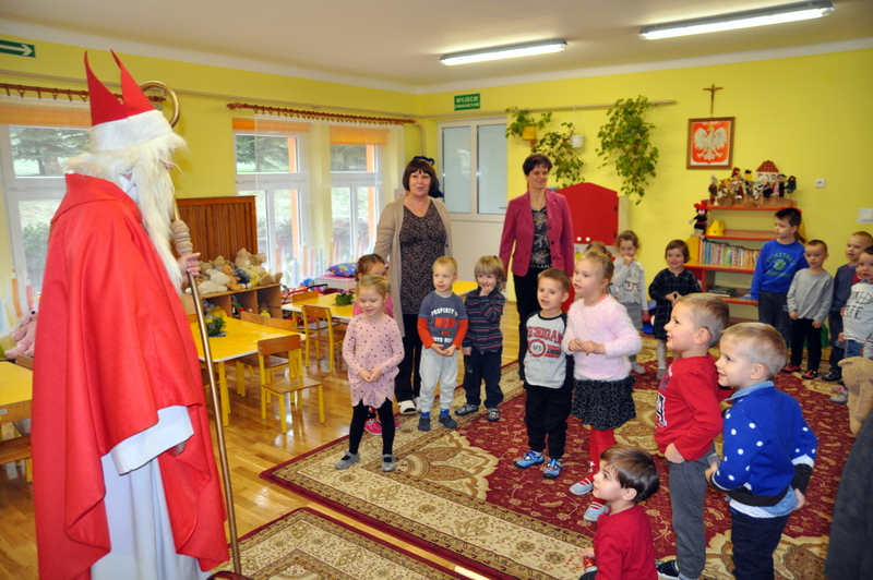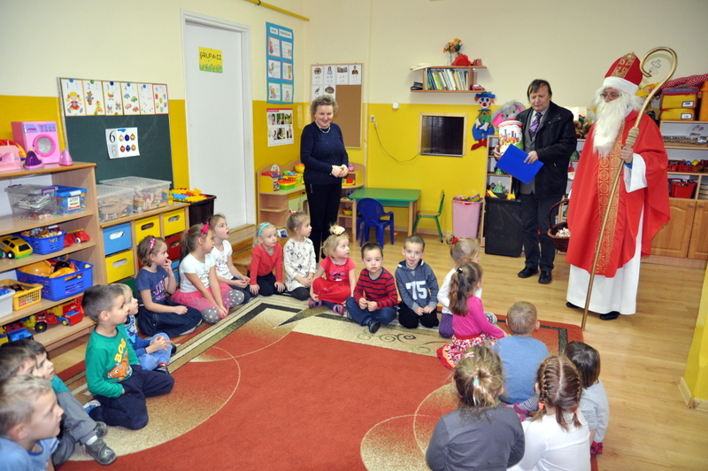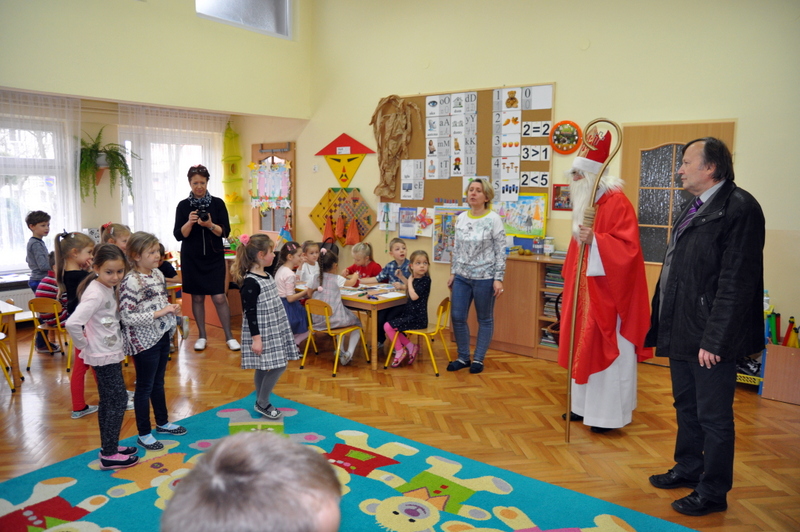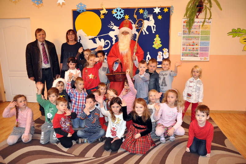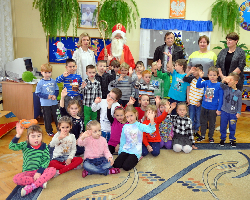 Szczególnie uroczysty charakter miał pobyt Mikołaja w nowootwartym przedszkolu w Zespole Szkół w Jadownikach. Dzięki staraniom burmistrza Grzegorza Wawryki oraz radnych wyasygnowano 250 tysięcy złotych na utworzenie nowej placówki przedszkolnej. Gospodarze Zespołu Szkół - dyrektor Tomasz Wietecha oraz zastępca dyrektora Jolanta Latocha powitali dzieci, ich rodziców oraz przybyłych gości na czele z burmistrzem Grzegorzem Wawryką, przewodniczącym RM Krzysztofem Ojczykiem, jadownickimi radnymi - Jarosławem Sorysem , Adamem Smołuchą i Jerzym Gawiakiem, dyrektorką Marią Łobodą, naczelnikiem Wydziału Infrastruktury Technicznej i Komunalnej Bogdanem Dobranowskim oraz kierownikiem referatu inwestycji Antonim Staszczykiem.