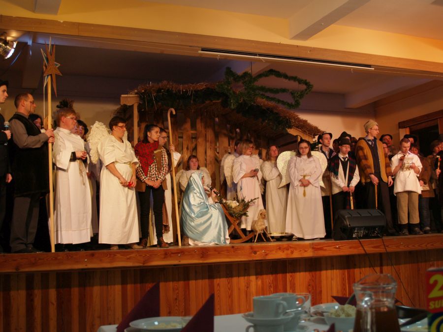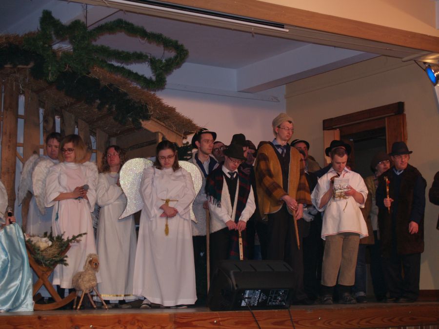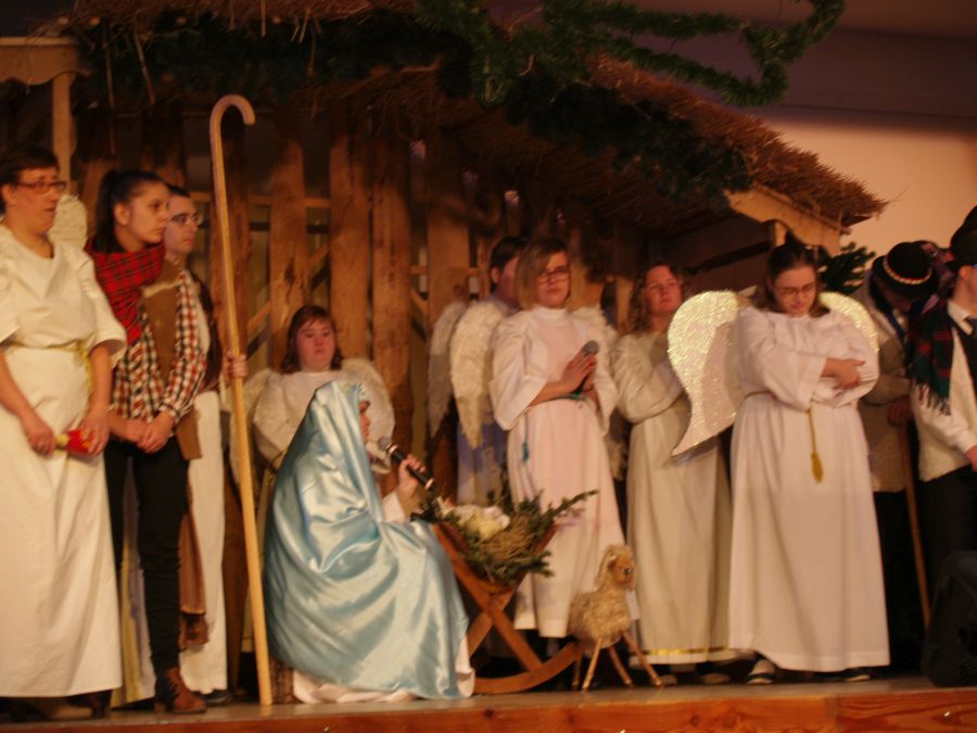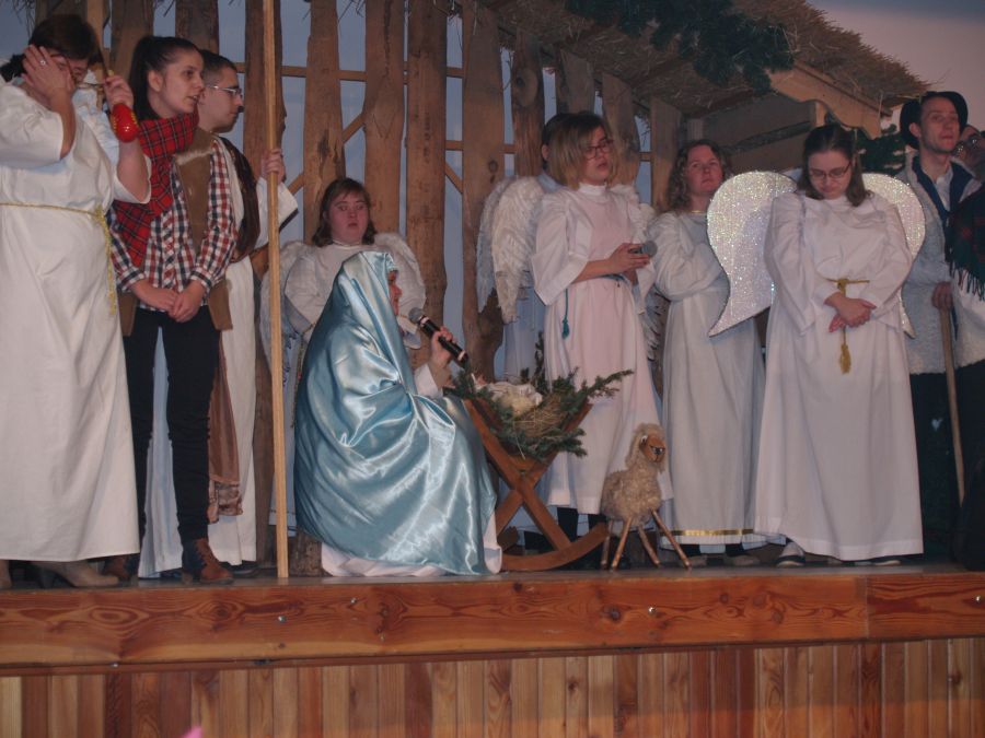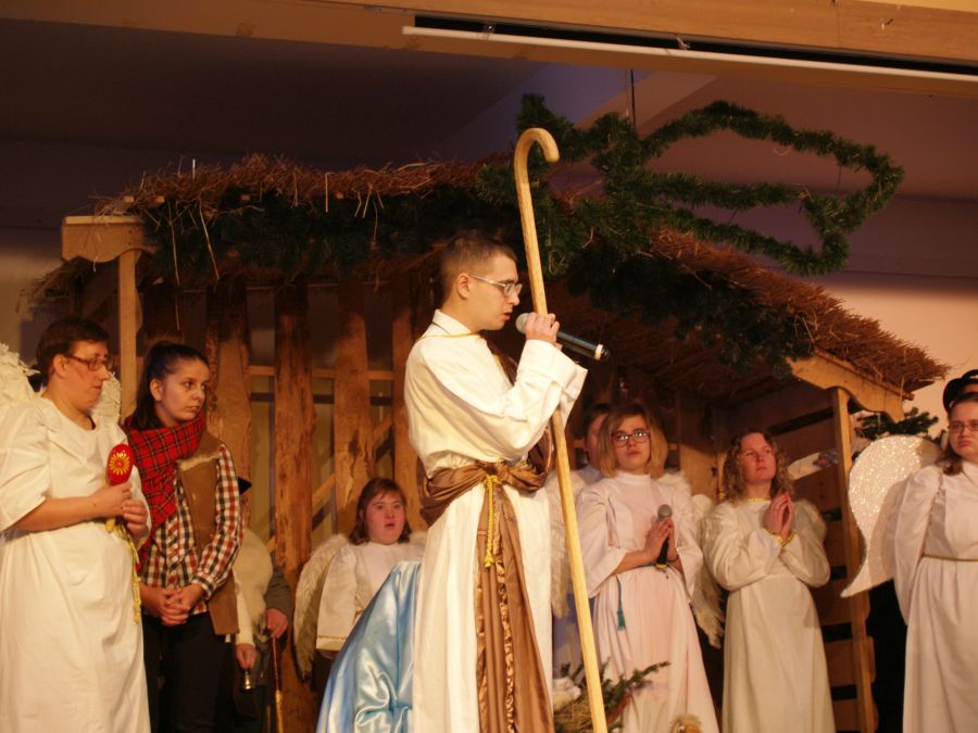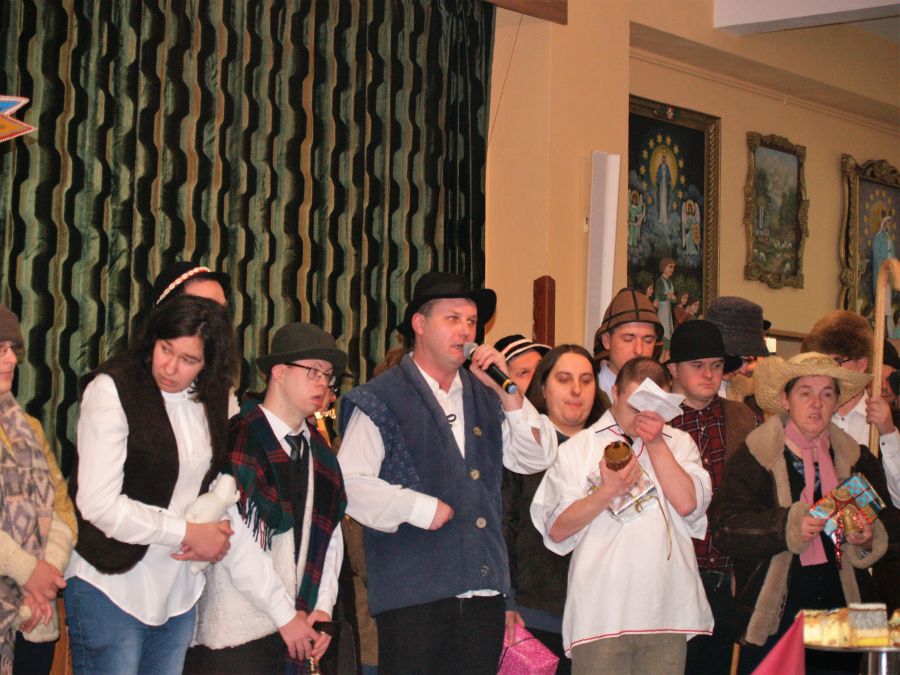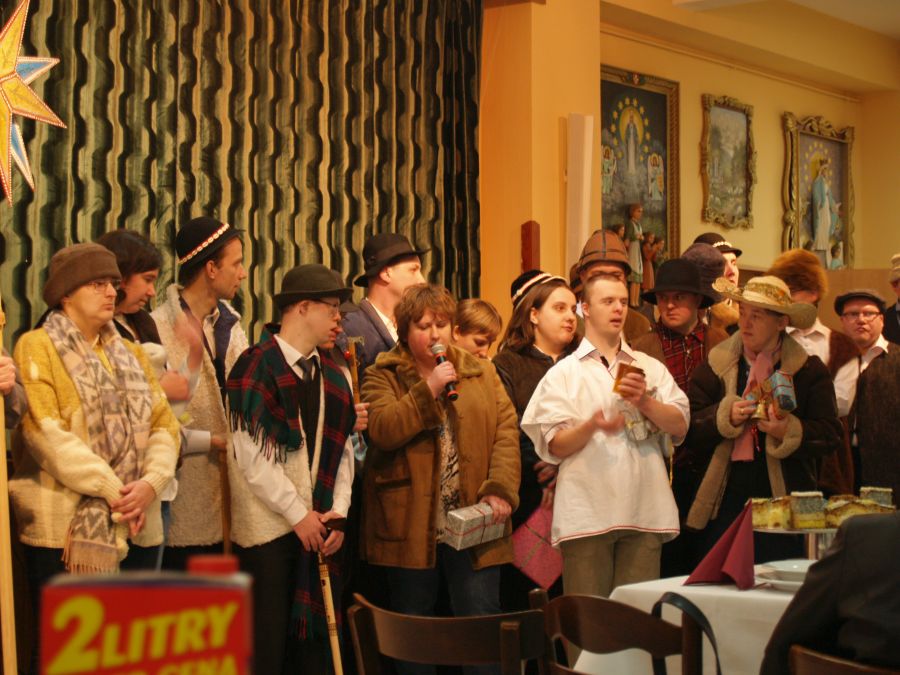 Podopieczni WTZ jak co roku zachwycili swoim kunsztem aktorskim i muzycznym - wystawili jasełka, które wzbudziły podziw wszystkich zebranych. Po przedstawieniu przyszedł czas na życzenia i wspólne śpiewanie bożonarodzeniowych kolęd. Życzenia złożyli włodarze powiatu i gminy - wiceburmistrz Jerzy Tyrkiel i starosta Andrzej Potępa. Na spotkaniu opłatkowym obecny był także proboszcz parafii NMP Matki Kościoła i Św. Jakuba Apostoła, prałat Józef Drabik.