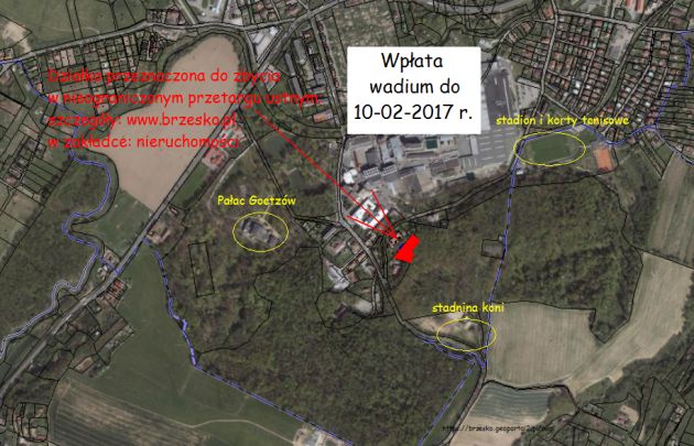 - Drugi przetarg odbędzie się dnia 17 lutego 2017 r. o godzinie 1000 w siedzibie Urzędu Miejskiego w Brzesku przy ulicy Głowackiego 51 (przewiązka przed Salą Obrad), powiat Brzesko, małopolskie.