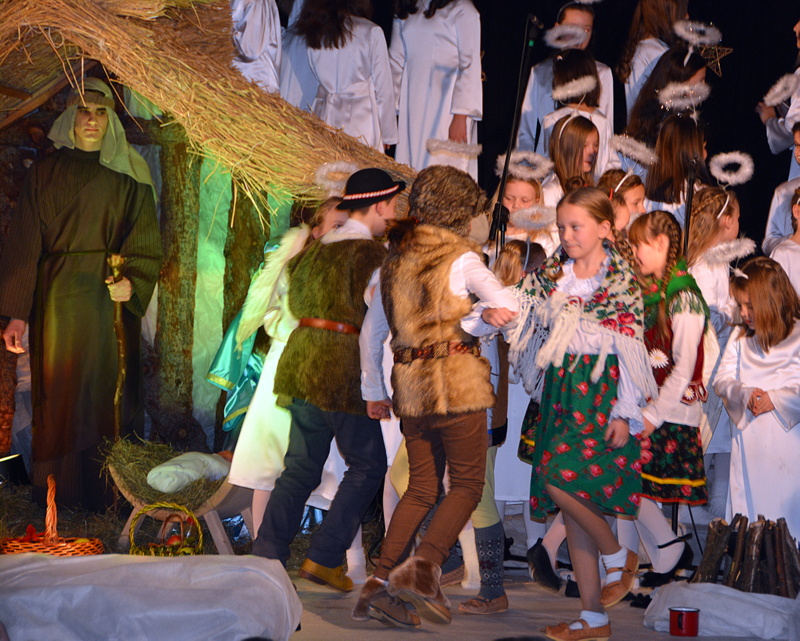 Spektakl ma formę montażu słowno – muzycznego, w którym zabraknąć nie mogło aniołów, pasterzy i góralek. Są trzej mędrcy oraz oczywiście Józef i Maryja, z nowo narodzoną Dzieciną. Nie zabrakło wysublimowanego humoru i dużej dawki dziecięcej energii.