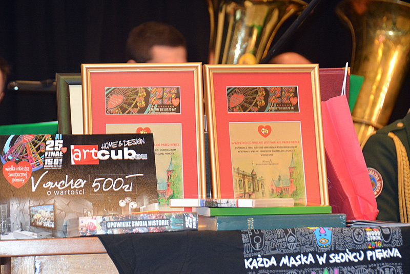 Wielką popularnością cieszyły się licytacje, w czasie których sprzedawano przedmioty przekazane ze sztabu WOŚP oraz podarowane przez mieszkańców. Najwięcej emocji wzbudziła licytacja złotych serduszek przygotowanych i ufundowanych przez pracownię złotniczą Krzysztofa Wronę oraz Brzeską Oficynę Wydawniczą Aleksandry i Ryszarda Dziedziców. Najdroższe serduszko wylicytował Edmund Leś, podarował za nie 2000 złotych. Ogółem wystawiono 10 serduszek, wylicytowali je: Paulina Ciuba-Cierniak - 1400 zł, Andrzej Zaręba - 1300 zł, anonimowy kupiec - 1700 zł, Halina i Michał Mrówkowie - 1500 zł, Jarosław Imioło - 1500 zł, Stefan Drużkowski - 1200 zł, Tadeusz Kubala - 300 euro, Michał Dziedzic - 1100 zł, Maciek i Wojtek Zacharowie - 700 zł. Tradycyjnie już licytowano także tort przekazany przez Kazimierza Kurala, został sprzedany za 300 złotych, a nabywcy od razu go rozkroili i częstowali zebranych w Regionalnym Centrum Kulturalno-Bibliotecznym. Wielkiego pluszaka przekazanego przez Grzegorza Bacha wylicytował zastępca dyrektora SP ZOZ, Adam Smolucha i przekazał go na oddział dziecięcy szpitala. Obraz brzeskiego Rynku przekazany na licytację przez burmistrza Grzegorza Wawrykę kupiony został za 250 złotych.