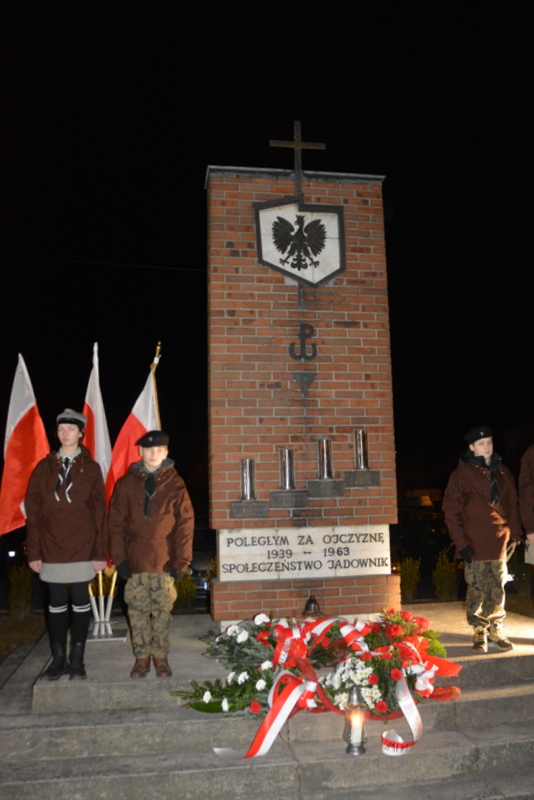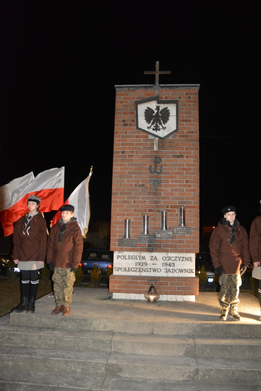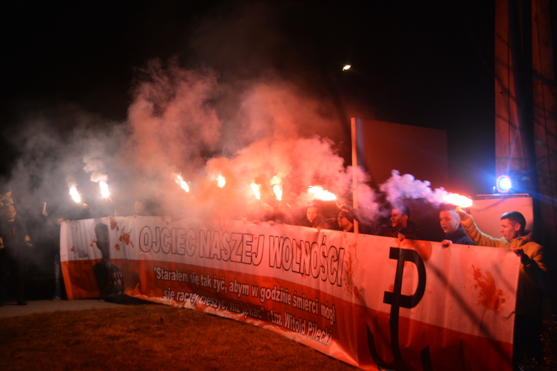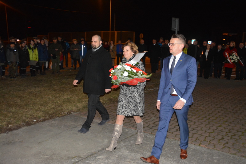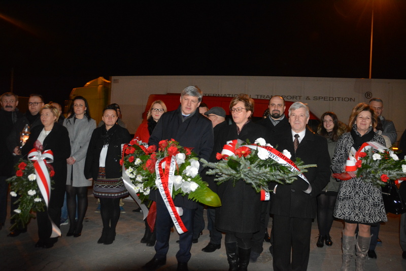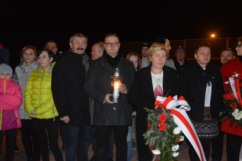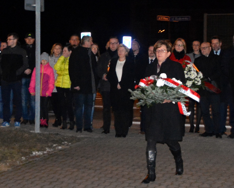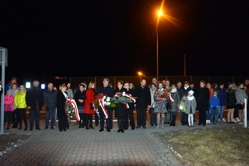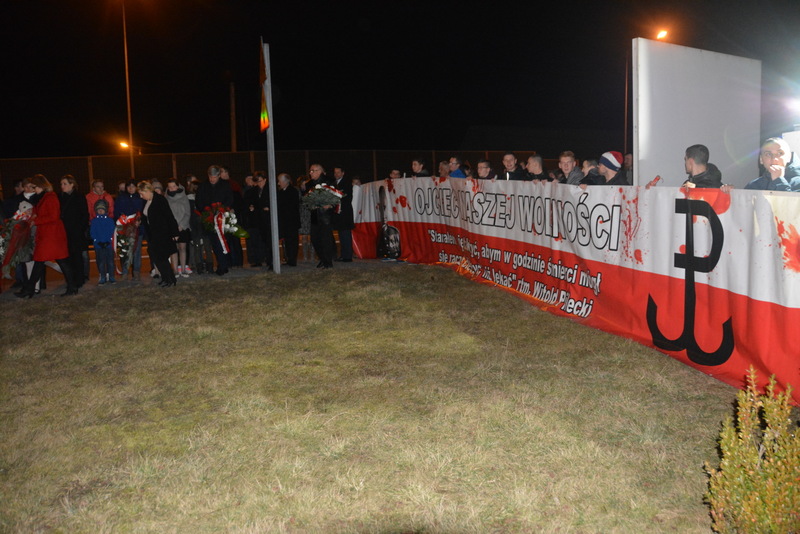 Wieczorem w Domu Ludowym oraz na Skwerze im. Witolda Pileckiego wybrzmiał kolejny akord niedzielnych uroczystości. Po odśpiewaniu hymnu Polski i podniesieniu flagi na maszt zostały złożone pod pomnikiem wiązanki kwiatów. Składali je: minister Józefa Szczurek-Żelazko, burmistrz Brzeska Grzegorz Wawryka, przedstawiciele Rady Sołeckiej z sołtysem Jarosławem Sorysem, radni miejscy reprezentujący PiS -Barbara Borowiecka, Krzysztof Bogusz, Grzegorz Kolbusz, przewodniczący powiatowego klubu PiS Stanisław Pacura wraz z radną powiatową Justyną Wójtowicz –Wodą. Uroczystości pod pomnikiem dopełniła patriotyczna oprawa o którą zadbali organizatorzy oraz grupa młodych kibiców i harcerzy.