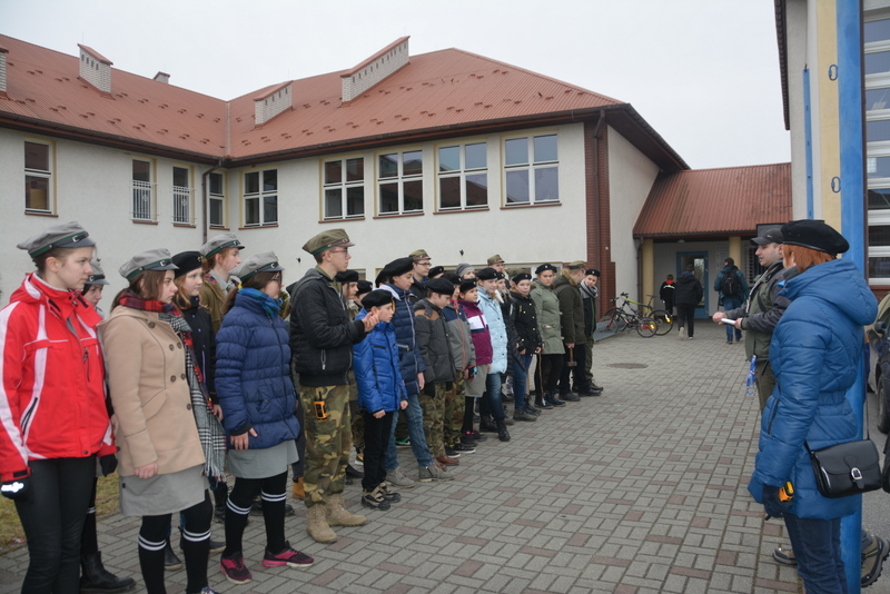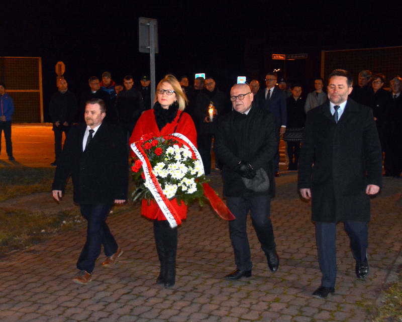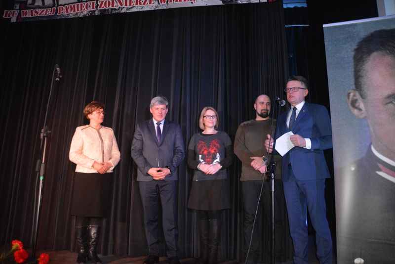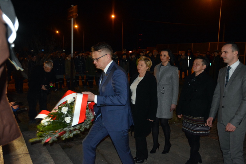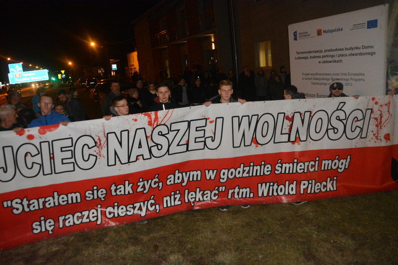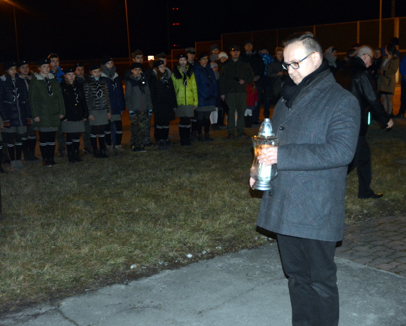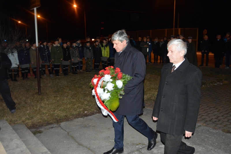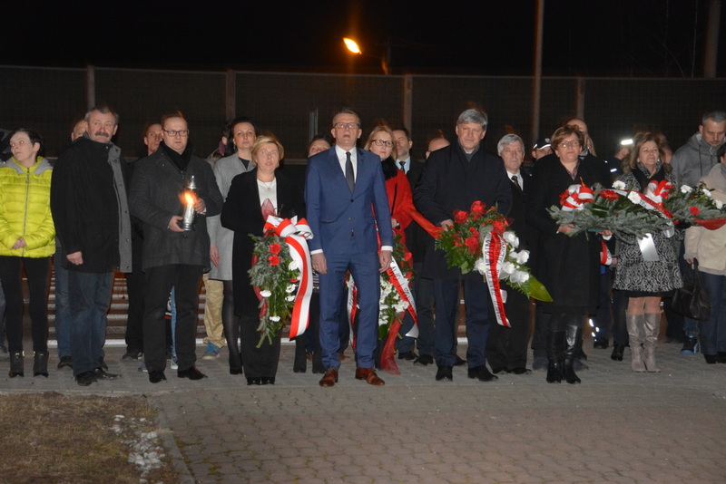 Wieczorem w Domu Ludowym oraz na Skwerze im. Witolda Pileckiego wybrzmiał kolejny akord niedzielnych uroczystości. Po odśpiewaniu hymnu Polski i podniesieniu flagi na maszt zostały złożone pod pomnikiem wiązanki kwiatów. Składali je: minister Józefa Szczurek-Żelazko, burmistrz Brzeska Grzegorz Wawryka, przedstawiciele Rady Sołeckiej z sołtysem Jarosławem Sorysem, radni miejscy reprezentujący PiS -Barbara Borowiecka, Krzysztof Bogusz, Grzegorz Kolbusz, przewodniczący powiatowego klubu PiS Stanisław Pacura wraz z radną powiatową Justyną Wójtowicz –Wodą. Uroczystości pod pomnikiem dopełniła patriotyczna oprawa o którą zadbali organizatorzy oraz grupa młodych kibiców i harcerzy.