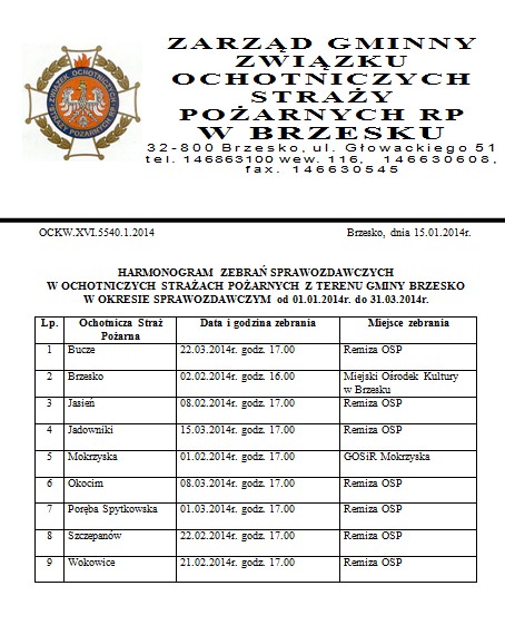W minioną sobotę w Mokrzyskach, a w niedzielę w Brzesku, ponad 80 strażaków wysłuchało sprawozdań i przyjęło plan pracy na bieżący rok. W Mokrzyskach po wyborze dh. Krzysztofa Pacury na prezesa jednostki nastąpiło dynamiczne przyspieszenie w ilości i jakości wykonywanych zadań. Jednostka w ubiegłym roku zajęła pierwsze miejsce w gminnych zawodach sportowo, a także ośmiokrotnie wyjeżdżała do akcji niesienia pomocy poszkodowanym.