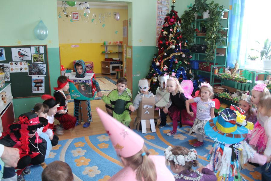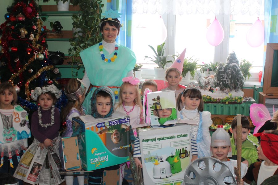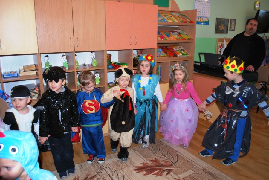 Nie zabrakło również konkursów na najładniej zaśpiewaną kolędę, wyborów króla i królowej balu oraz na najciekawszy strój wykonany z surowców wtórnych. Wszystkie prezentowane przez dzieci stroje były wspaniałe i bardzo pomysłowe. Pudełka tekturowe, makulatura, płyty CD, nakrętki, butelki, kołpaki i inne odpady zostały wykorzystane do kreacji wróżek, rycerzy, owadów, zwierząt, postaci bajkowych i wielu, wielu innych.