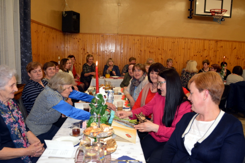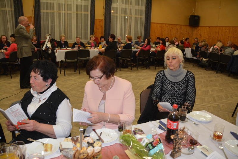 Jak tradycja każe spotkanie zaczęło się od życzeń złożonych paniom przez zastępcę burmistrza Jerzego Tyrkiela i sołtysa Stanisława Pacurę. Panie w tym roku zamiast zwyczajowych laurek otrzymały śpiewniki pieśni biesiadnych z życzeniami od burmistrza Grzegorza Wawryki. Sołtys Stanisław Pacura wraz ze śpiewnikiem wręczył każdej pani słodki upominek w postaci czekolady. Nad całością i sprawnym przebiegiem uroczystości czuwały panie z GOSiR-u, KGW oraz strażacy z OSP Mokrzyska na czele z naczelnikiem dh. Wojciechem Zacharą. Uroczystość zakończono wspólnym śpiewaniem pieśni biesiadnych.