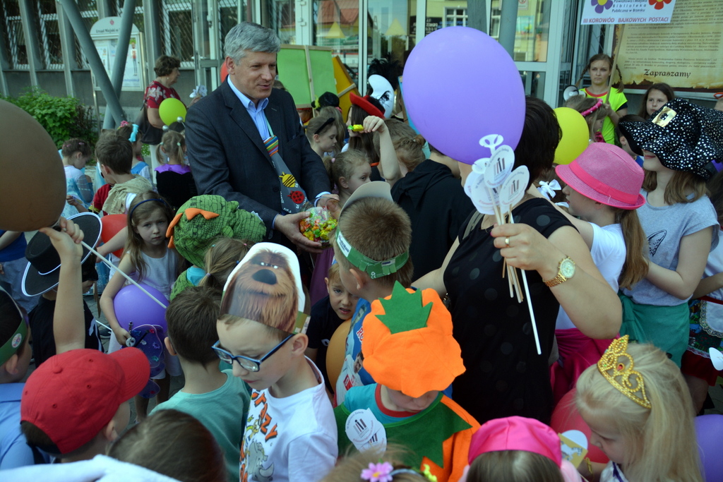 Dzieci biorące udział w bajkowym pochodzie z biblioteki przeszły na Plac Kazimierza Wielkiego, odwiedziły rynek i urząd miejski i wróciły do książnicy. Na zakończenie imprezy uczniowie z gimnazjum z Gnojnika wystawili sztukę „Smurfy” przygotowaną przez Lucynę Szot. Na widowni zasiadła ponad setka maluchów z przedszkola nr 4.