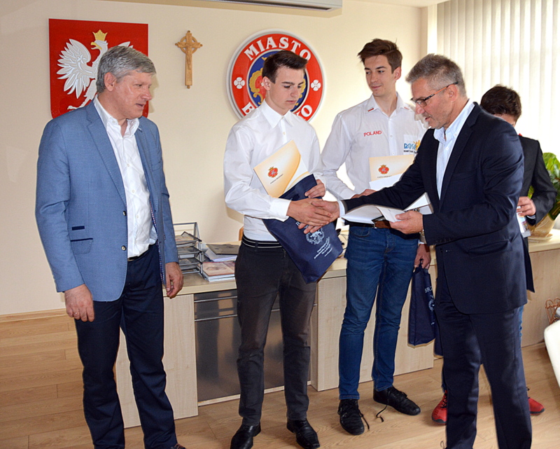 Burmistrz Brzeska, Grzegorz Wawryka zaprosił trzech zawodników z sekcji kręglarskiej Brzeskiego Ośrodka Sportu i Rekreacji – Jakuba Kuryłę, Igora Szydłowskiego i Łukasza Łazowskiego wraz z menadżerem BOSiR Waldemarem Pytką i trenerem Marcelem Kociołkiem. Dziękował młodym sportowcom za ciężką pracę, wręczył im także okolicznościowe dyplomy i upominki.