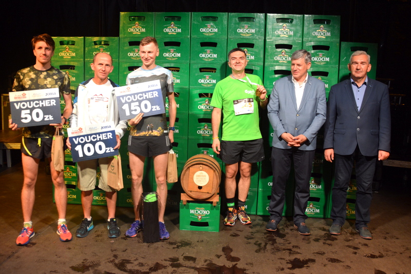 Na mecie czekały jedyne w swoim rodzaju medale w kształcie beczki oraz piwo i woda. Dla najlepszych zawodników w kategoriach OPEN przygotowaliśmy ręcznie robioną beczkę z grawerem oraz vouchery na odzież marki Joma. Dodatkowo prowadzona była klasyfikacja na najlepszych zawodników z gminy i powiatu, osobno dla kobiet i mężczyzn. Dyrektor browaru wręczył także okazałe nagrody dla najwytrwalszych zawodników, czyli ostatniej kobiecie i ostatniemu mężczyźnie.