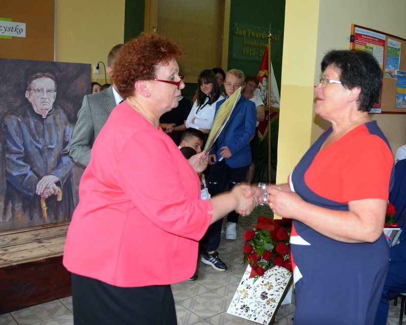 -W związku z zakończeniem pracy zawodowej w Publicznej Szkole Podstawowej w Buczu pragnę podziękować Pani za wszystkie lata ofiarnej pracy, dzięki której Pani podopieczni zdobywali wykształcenie oraz niezbędną w dalszym życiu wiedzę. Chciałbym wyrazić szczególne uznanie za wytrwałość w procesie edukacji, trud włożony w wychowanie młodego pokolenia oraz rzetelne i sumienne wykonywanie trudnych obowiązków pedagoga, a przede wszystkim dyrektora Publicznej Szkoły Podstawowej w Buczu, którą kierowała Pani 25 lat. Dziękuję za wieloletni wysiłek podejmowany na rzecz dobrego wizerunku placówki, za okazywaną uczniom, rodzicom i nauczycielom pomoc i życzliwość oraz osobiste zaangażowanie i serce, które wkładała Pani w swoją pracę – mówił w czasie uroczystego pożegnania burmistrz Grzegorz Wawryka.