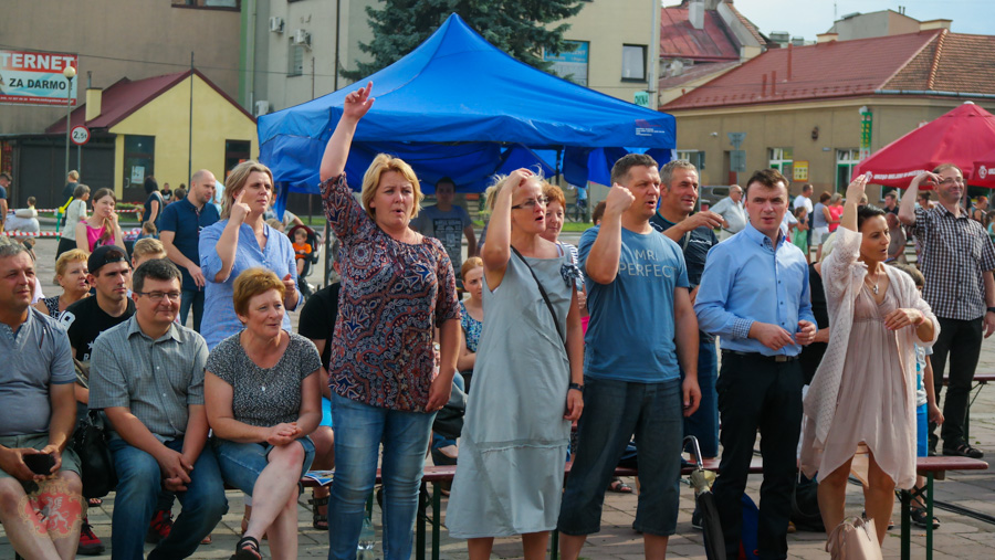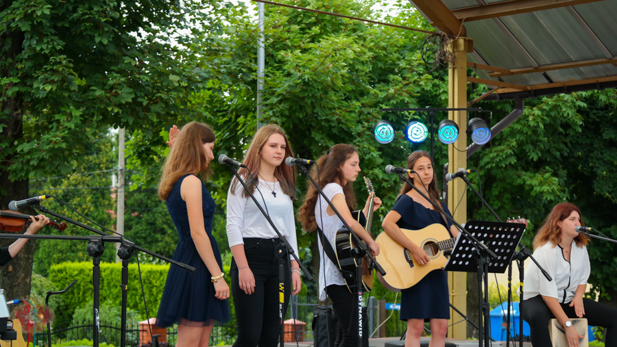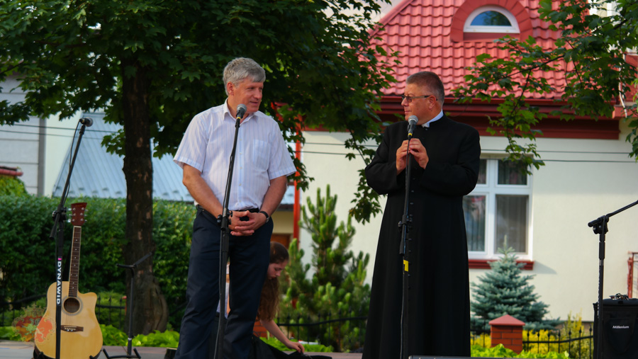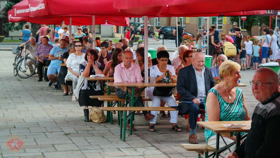 Przez cały czas trwania pikniku na scenie przy Placu Kazimierza Wielkiego trwały koncerty, które wzbudzały spore zainteresowanie widzów. Jako pierwsi prezentowali się „Umiłowani” – ośmioosobowy zespół z parafii Krzyżanowice prezentujący „modlitwę ubraną w dźwięki”, potem na scenę wyszedł zespół „Kantu”, który w swoim repertuarze ma ludowe melodie peruwiańskie oraz znane piosenki latynoamerykańskie. Wieczorem wystąpił zespół Con Amore, który prezentował covery światowych przebojów, dając asumpt do wspaniałej zabawy na płycie Placu Kazimierza Wielkiego. Wszyscy uczestnicy pikniku mogli zjeść, całkiem za darmo, pyszną kiełbaskę z grilla. -Serdecznie dziękuję mieszkańcom za tak liczne przybycie na święto patrona miasta, szczególne podziękowania kieruję do burmistrza, pracowników urzędu i sponsorów – powiedział ks. Józef Drabik.