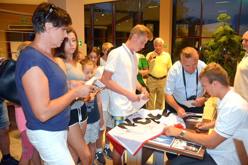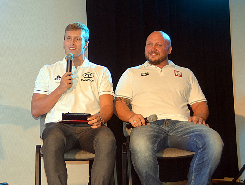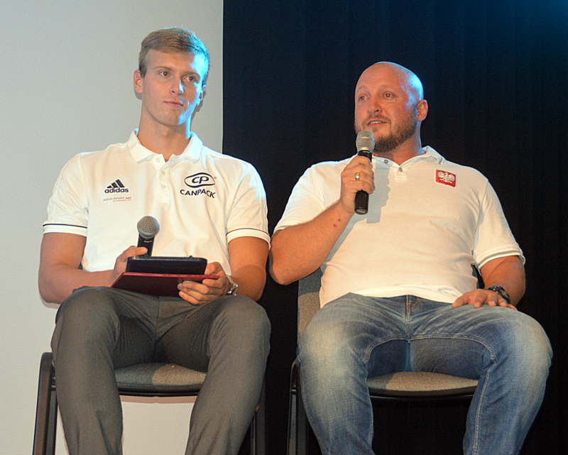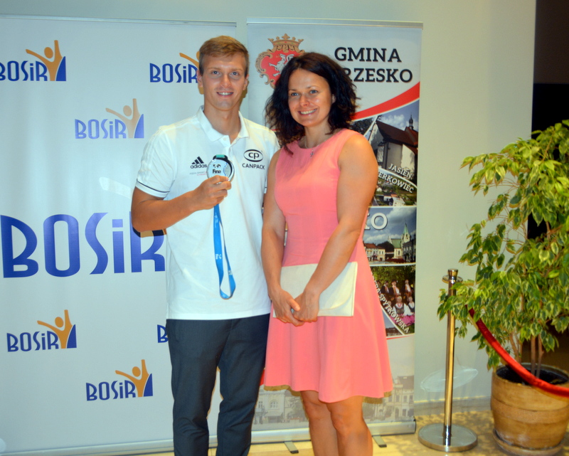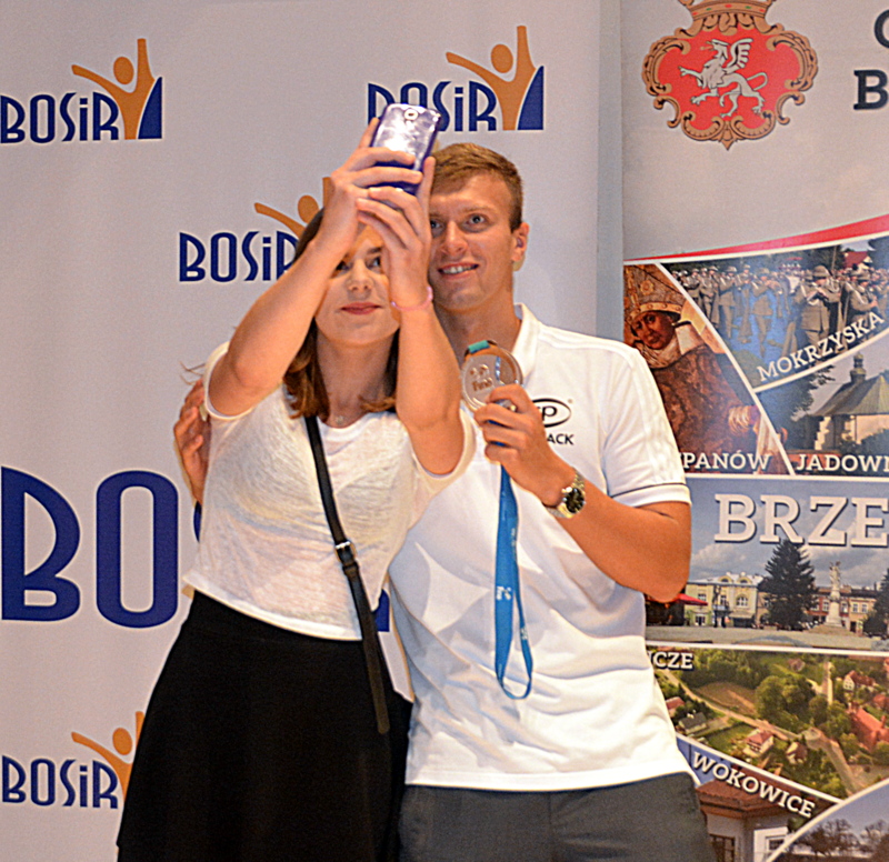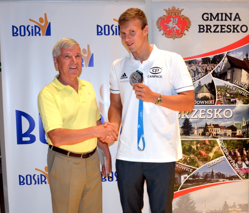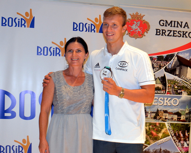 –Cieszę się, że mogłem wrócić do Brzeska. Tu jest wspaniała atmosfera, życzliwi ludzie i piękne miasto- powiedział srebrny medalista. Obaj panowie, zarówno Wojtek Wojdak jak i Marcin Kacer stwierdzili, że nie zamierzają zmieniać barw klubowych, miejsca do treningu i otoczenia. -Mamy wsparcie życzliwych ludzi, firm, znakomicie się tu czujemy - powiedział trener Marcin Kacer. W swoim wystąpieniu Wojtek Wojdak podziękował mamie i tacie oraz rodzinie za wieloletnią opiekę, wytrwałość i wsparcie w realizacji swojej sportowej pasji. Słowa podziękowań skierował też do swojej menadżerki i sponsorów, dzięki którym może trenować, wyjeżdżać i realizować się sportowo. –Dziękuję panu prezesowi i zarządowi firmy CAN-PACK S.A., państwu Czyżyckim właścicielom Centrum Motoryzacji, firmie Aqua Sport, prezesowi i zarządowi firmy Granit. Dziękuję panu burmistrzowi Grzegorzowi Wawryce oraz dyrektorowi BOSiR panu Markowi Dadejowi za wsparcie i pomoc. Dziękuję Wam, drodzy przyjaciele i mieszkańcy za wsparcie, telefony, sms-y i słowa uznania. To jest wspaniała motywacja do dalszej pracy i sukcesów. – powiedział Wojtek Wojdak.