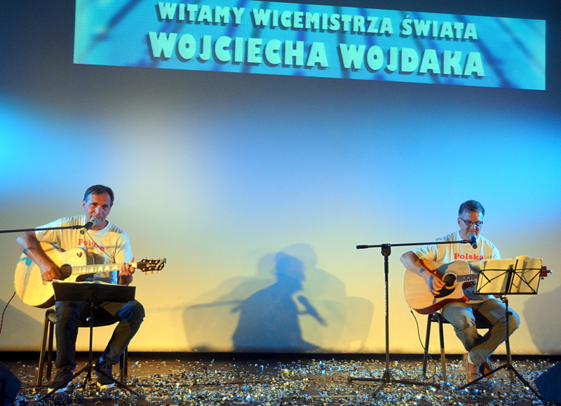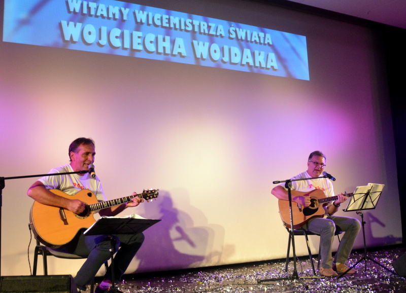 Na zaproszenie burmistrza i dyrektora BOSiR w spotkaniu wzięli udział również rodzice Wojtka, państwo Agnieszka i Jacek Wojdakowie, siostra z rodziną, menadżerka Katarzyna Kura, a także żona i rodzina trenera Marcina Kacera. Wspaniałą atmosferę spotkania z naszym mistrzem i jego trenerem dopełniła piękna oprawa powitania, przygotowana przez pracowników BOSiR-u, Biura Promocji UM oraz brzeskiego MOK-u. Były ognie sztuczne, konfetti, film przypominający wyścig finałowy, występ aktorów Teatru Słowackiego, autografy, selfie i gromkie oklaski zgromadzonych widzów.