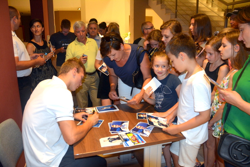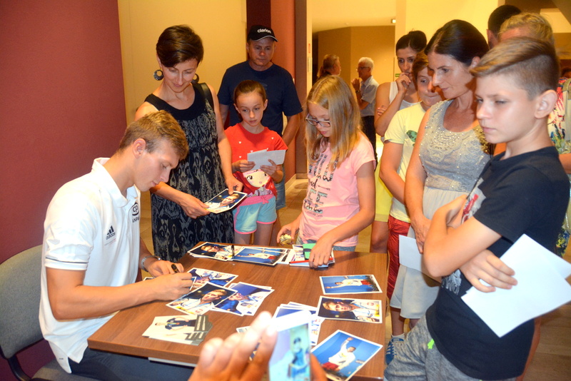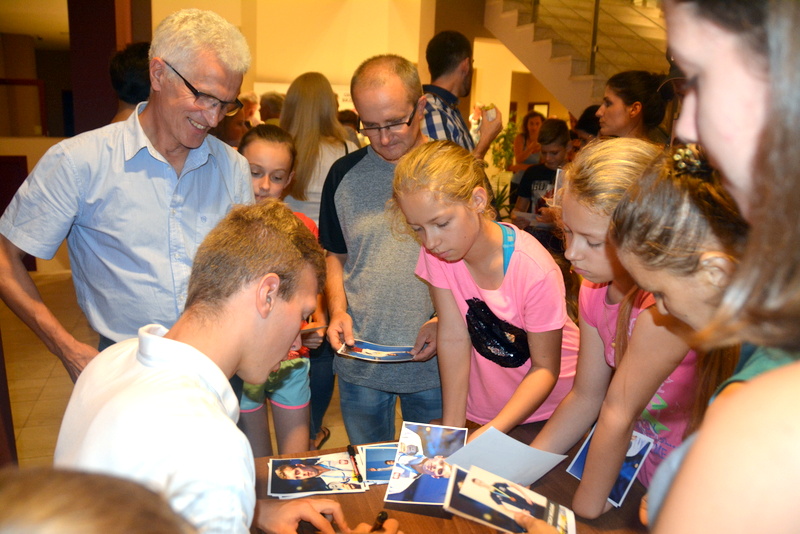Dla Wojtka i Marcina specjalny koncert dali aktorzy Teatru Słowackiego, panowie Wojciech Skibiński i Krzysztof Taraska. Spotkanie zakończyło się o się sesją fotograficzną oraz autografami dla wszystkich przybyłych. Pani Andżelika Czyżycka, współwłaściciela Centrum Konferencyjno Rozrywkowego Planeta, przygotowała wspaniałe przekąski i słodkości, które dopełniły czwartkowe spotkanie z najlepszym obecnie polskim pływakiem Wojciechem Wojdakiem oraz najlepszym polskim trenerem pływania Marcinem Kacerem.