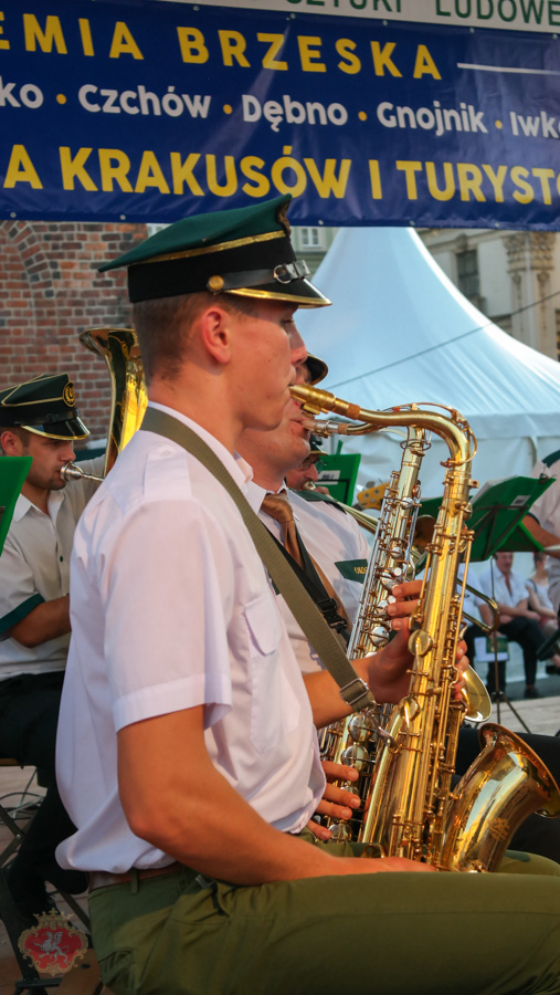 Środowe prezentacje rozpoczął Lajkonik, który poprowadził barwny korowód zespołów wokół Rynku. Tysiące turystów z całego świata podziwiało harce Lajkonika, barwne stroje zespołów i kapel, a największe brawa otrzymał dziecięcy zespół z Borzęcina. Równo z hejnałem z Wieży Mariackiej nastąpiło otwarcie dnia ziemi brzeskiej na targach. Zaprezentowane zostały gminy oraz zespoły uczestniczące w targach sztuki ludowej, a przedstawiciele gmin otrzymali od organizatorów okazałe piernikowe serca. Jako pierwsza na scenie pod Wieżą Ratuszową wystąpiła Grupa Śpiewacza Jadowniczanie, a jej występ został przyjęty tak entuzjastycznie, że swój program musieli powtórzyć kolejny raz w godzinach popołudniowych. Kolejnym zespołem, który prezentował tańce ludowe to „Borzęcanie” – grupa dzieci w wieku od 4 do 9 lat. Najmłodsi podbili serca publiczności żywiołowością tańca oraz pięknymi strojami. Następnie na scenie zagościł ZPiT „ Iwkowianie”, który zaprezentował folklor ziemi iwkowskiej. Koło Gospodyń Wiejskich z Biadolin Szlacheckich, z gminy Dębo zaprezentowało widowisko – „Kiszenie kapusty u Bronki", entuzjastycznie, dzięki humorowi słownemu i sytuacyjnemu przyjęte przez zgromadzoną publiczność. Wspaniale zaprezentowała się Grupa Śpiewacza działająca przy Kole Gospodyń Wiejskich w Czchowie. Popis umiejętności śpiewaczych, tanecznych i aktorskich dała Grupa Regionalna z Gnojnika, prezentując widowisko pt. „ Wyskubek”. Miłym przerywnikiem od folkloru był występ Kasi Gawendy z brzeskiego MOK-u, która śpiewała znane i lubiane piosenki.