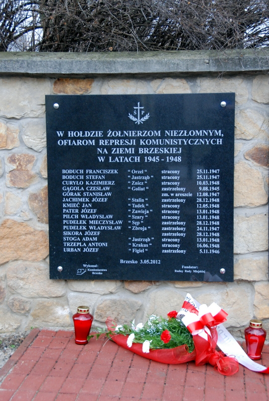 Żołnierze Wyklęci (albo Żołnierze Niezłomni) to polskie powojenne podziemie niepodległościowe i antykomunistyczne, czynnie walczące przeciwko podporządkowaniu Polski przez ZSRR. Także na terenie powiatu brzeskiego żyli i walczyli Żołnierze Wyklęci, aby ich upamiętnić odsłonięto tablicę, którą umieszczono w południowej ścianie ogrodzenia Cmentarza Parafialnego.