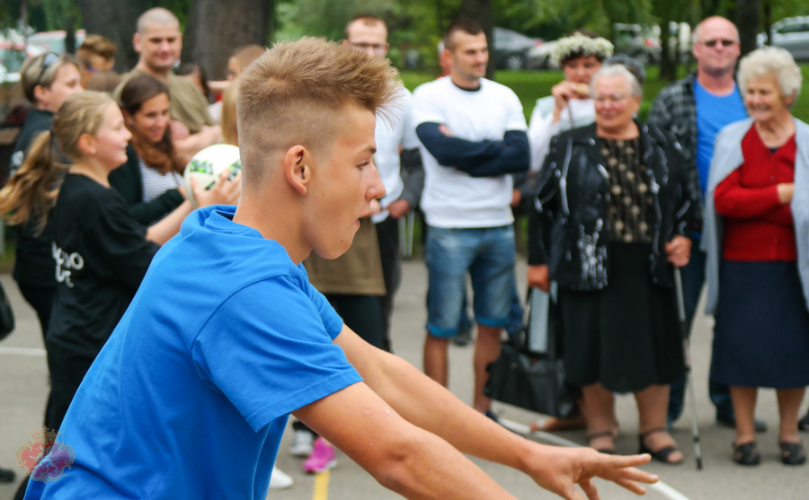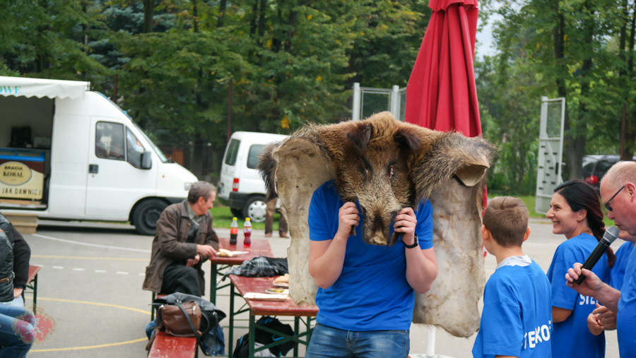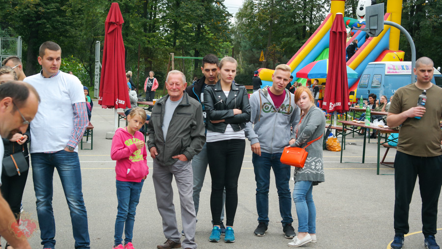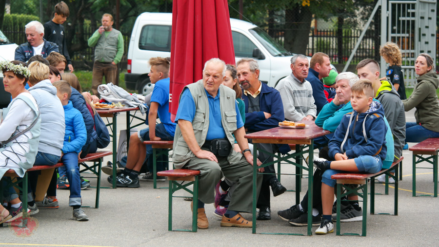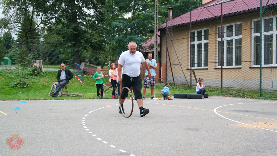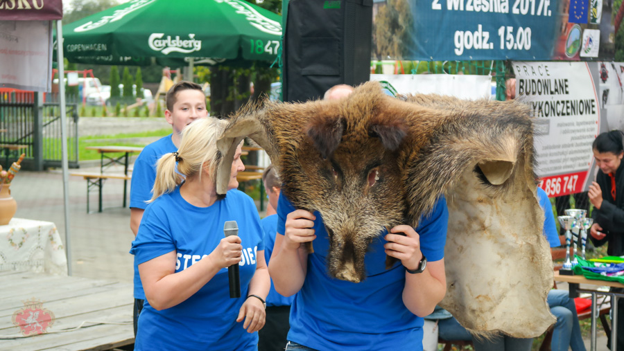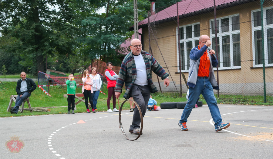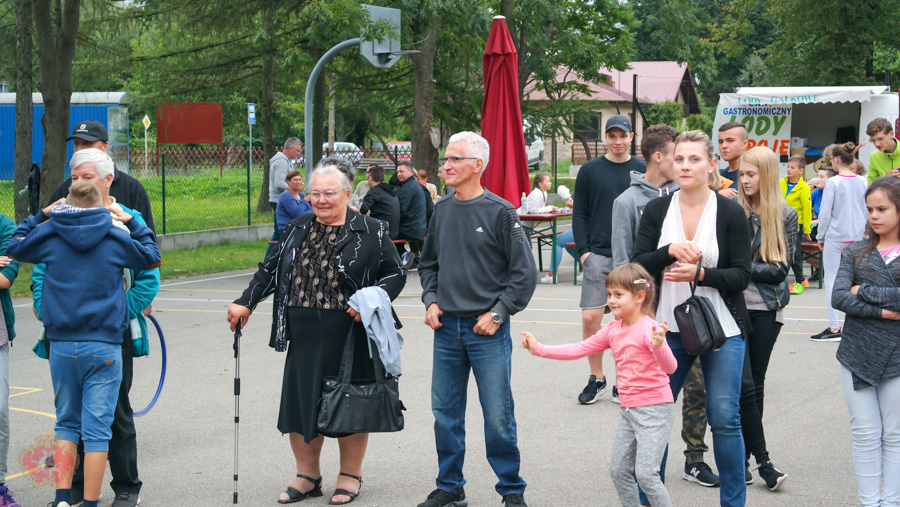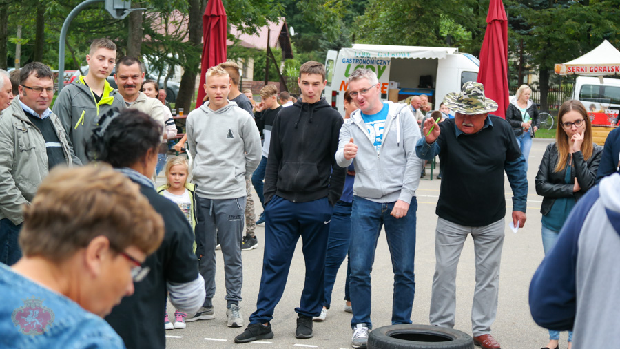 Wiele emocji, zarówno zawodnikom, jak i widzom dostarczyła konkurencja polegająca na piłowaniu drewna na czas. Zadanie polegało na przepiłowaniu kłody drewna ułożonej na koziołkach, podczas gdy dwie osoby przecinało drewno, pozostali zawodnicy musieli podtrzymywać koziołki, aby te nie przewróciły się. Równych sobie nie miała drużyna z Bucza, która kloc przepiłowała w zaledwie 7,87 sekundy. Wyrównana walka toczyła się w czasie rzutu piłką do opony, zaś zabawy co niemiara było w czasie biegu z rachewką, którą należało popychać patykiem. Łatwo nie było, bo dla większości uczestników była to nowość, w tej konkurencji zwyciężyli zawodnicy z Mokrzysk.