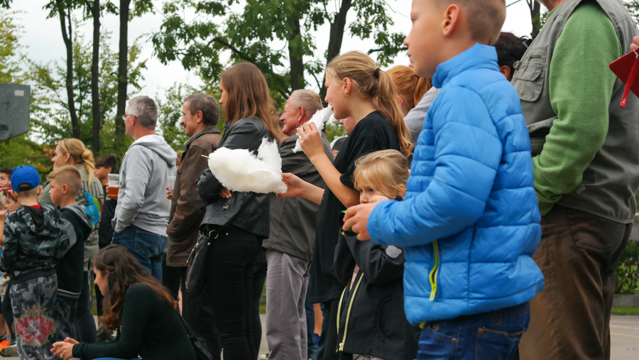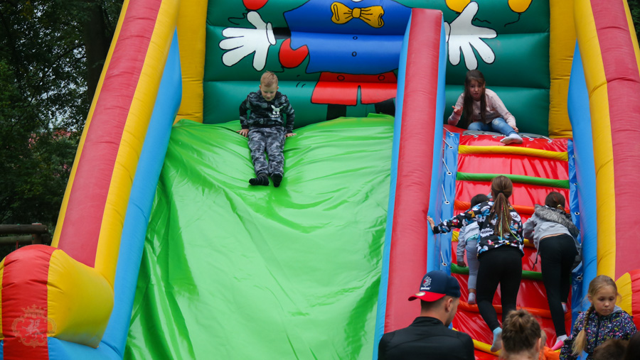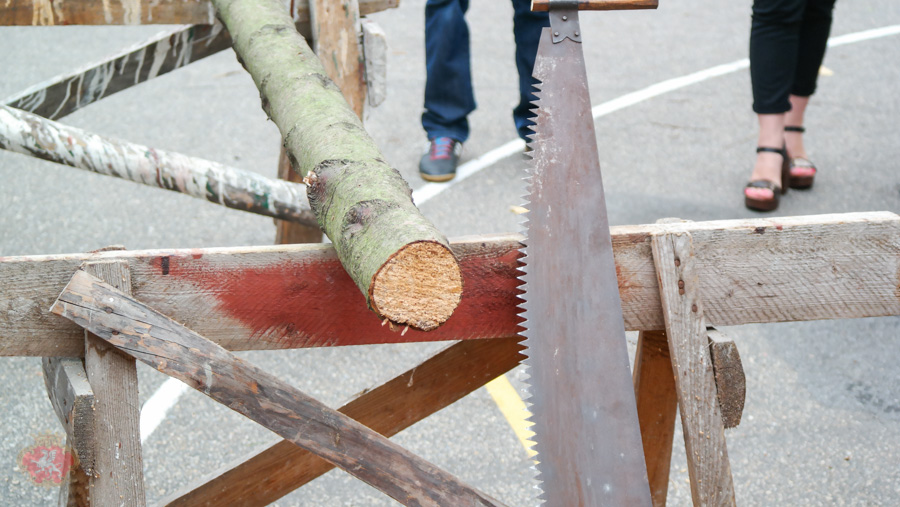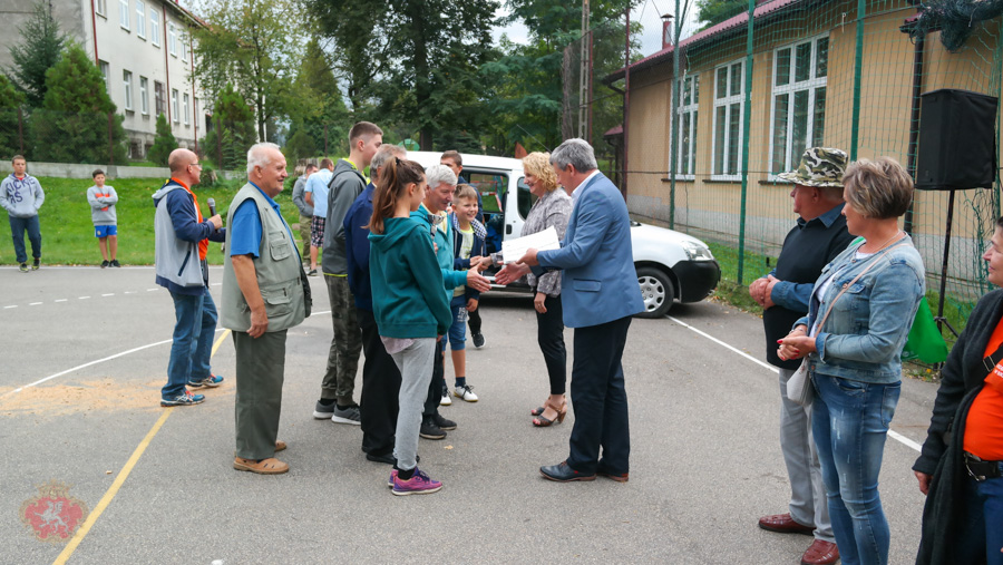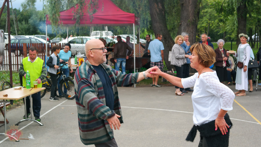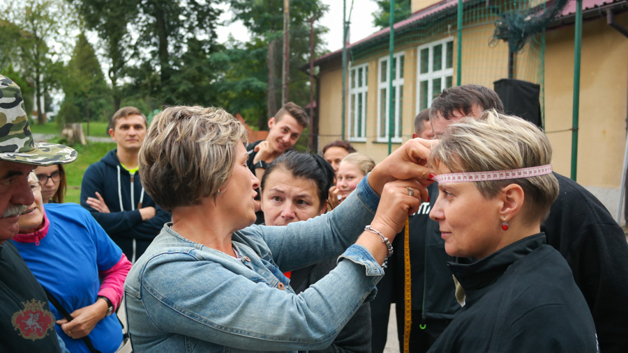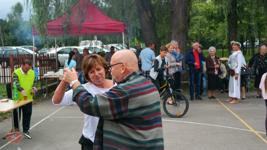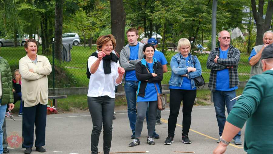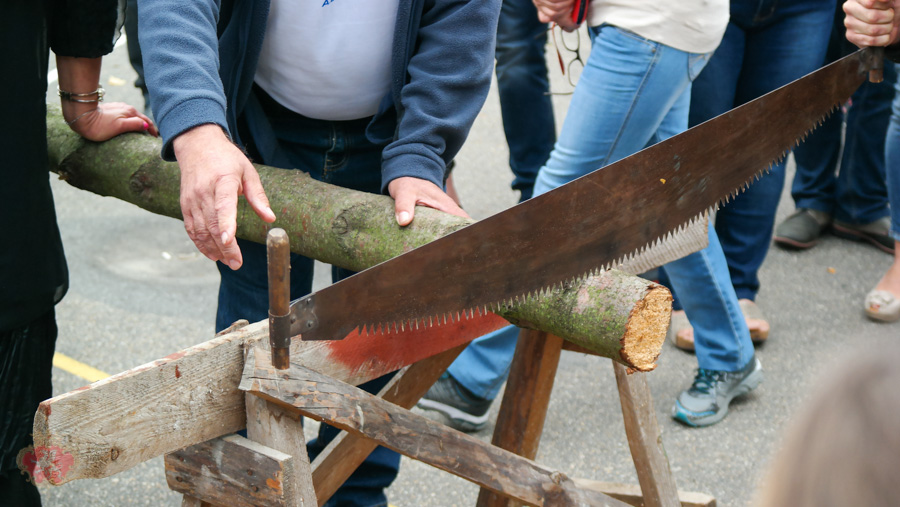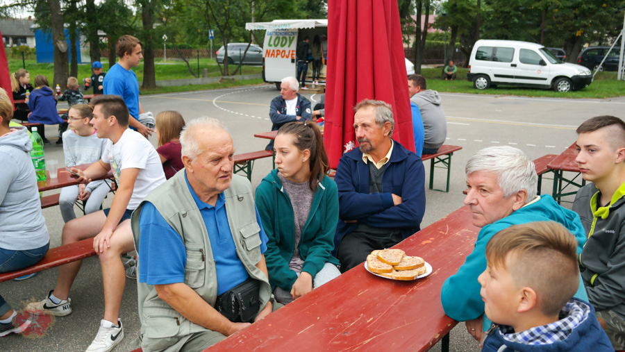 Wiele emocji, zarówno zawodnikom, jak i widzom dostarczyła konkurencja polegająca na piłowaniu drewna na czas. Zadanie polegało na przepiłowaniu kłody drewna ułożonej na koziołkach, podczas gdy dwie osoby przecinało drewno, pozostali zawodnicy musieli podtrzymywać koziołki, aby te nie przewróciły się. Równych sobie nie miała drużyna z Bucza, która kloc przepiłowała w zaledwie 7,87 sekundy. Wyrównana walka toczyła się w czasie rzutu piłką do opony, zaś zabawy co niemiara było w czasie biegu z rachewką, którą należało popychać patykiem. Łatwo nie było, bo dla większości uczestników była to nowość, w tej konkurencji zwyciężyli zawodnicy z Mokrzysk.