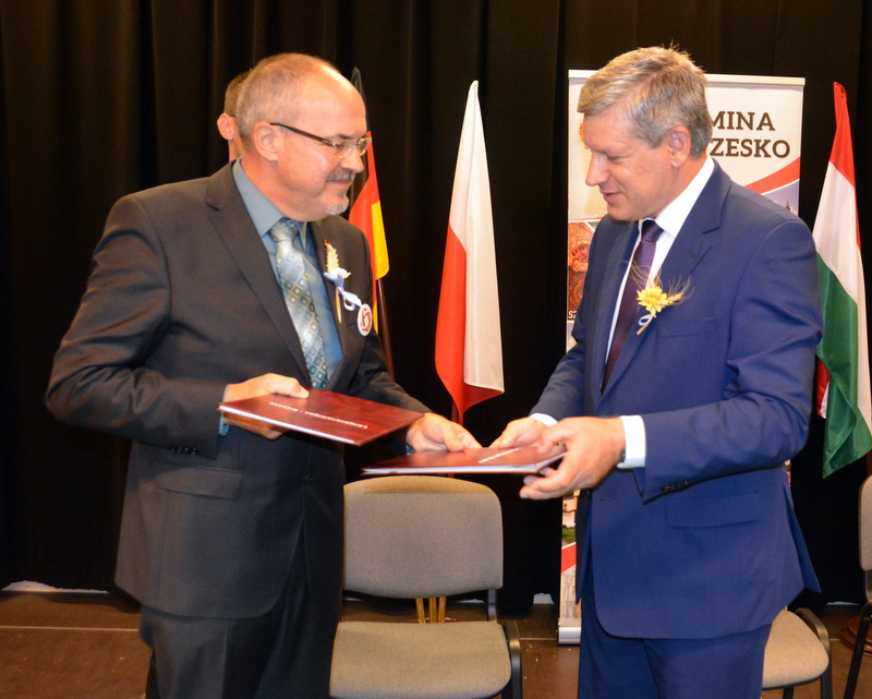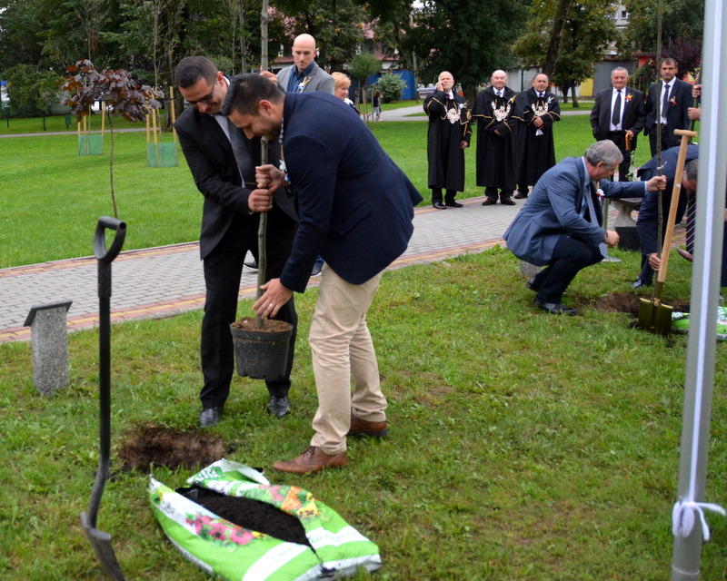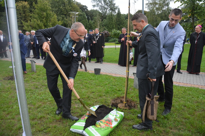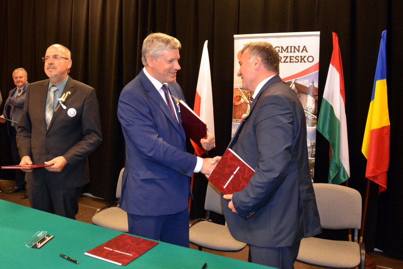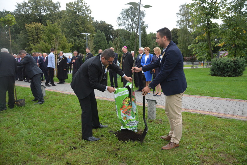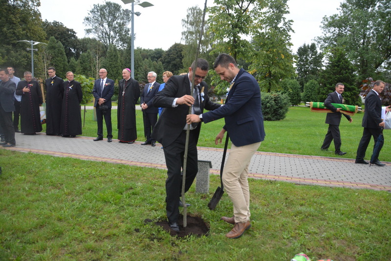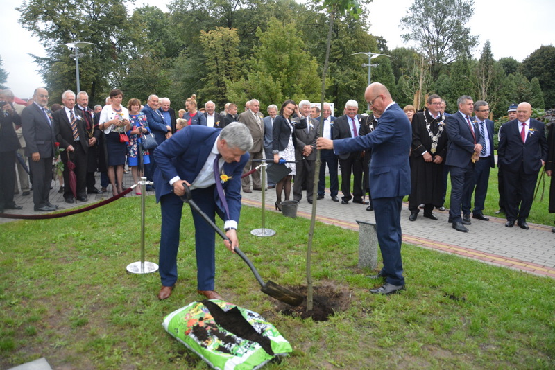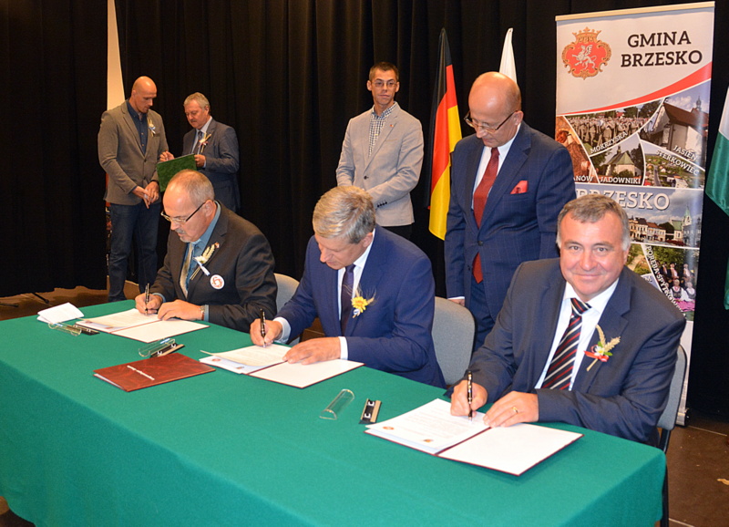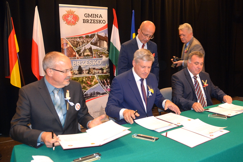 Gośćmi XVI Diecezjalnego Święta Chleba byli przedstawiciele miast partnerskich - Langenenslingen, Szazhalombatty, Sovaty. Była to znakomita okazja do tego, aby przed budynkiem RCK-B zasadzone zostały „dęby przyjaźni”. Był to jeden z punktów uczczenia dwudziestolecia podpisania umów o wzajemnej współpracy pomiędzy samorządami z Polski, Węgier i Niemiec. Sadzenie dębów poprzedziło podpisanie listów intencyjnych o dalszej współpracy przez burmistrza Brzeska Grzegorza Wawrykę, burmistrza Szazhalombatty Vezera Mihalyego oraz zastępcę burmistrza Langenenslingen Christofera Fisela. Godną oprawę tej uroczystości zapewniła, między innymi obecność znamienitych gości w osobach tarnowskiego biskupa ordynariusza Andrzeja Jeża, proboszczów brzeskich parafii, posłów, braci cechowych z całej diecezji, radnych, służb mundurowych i licznej rzeszy mieszkańców gminy Brzesko.