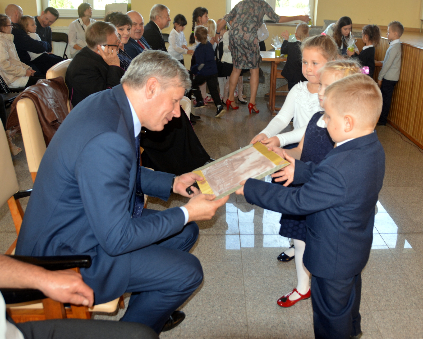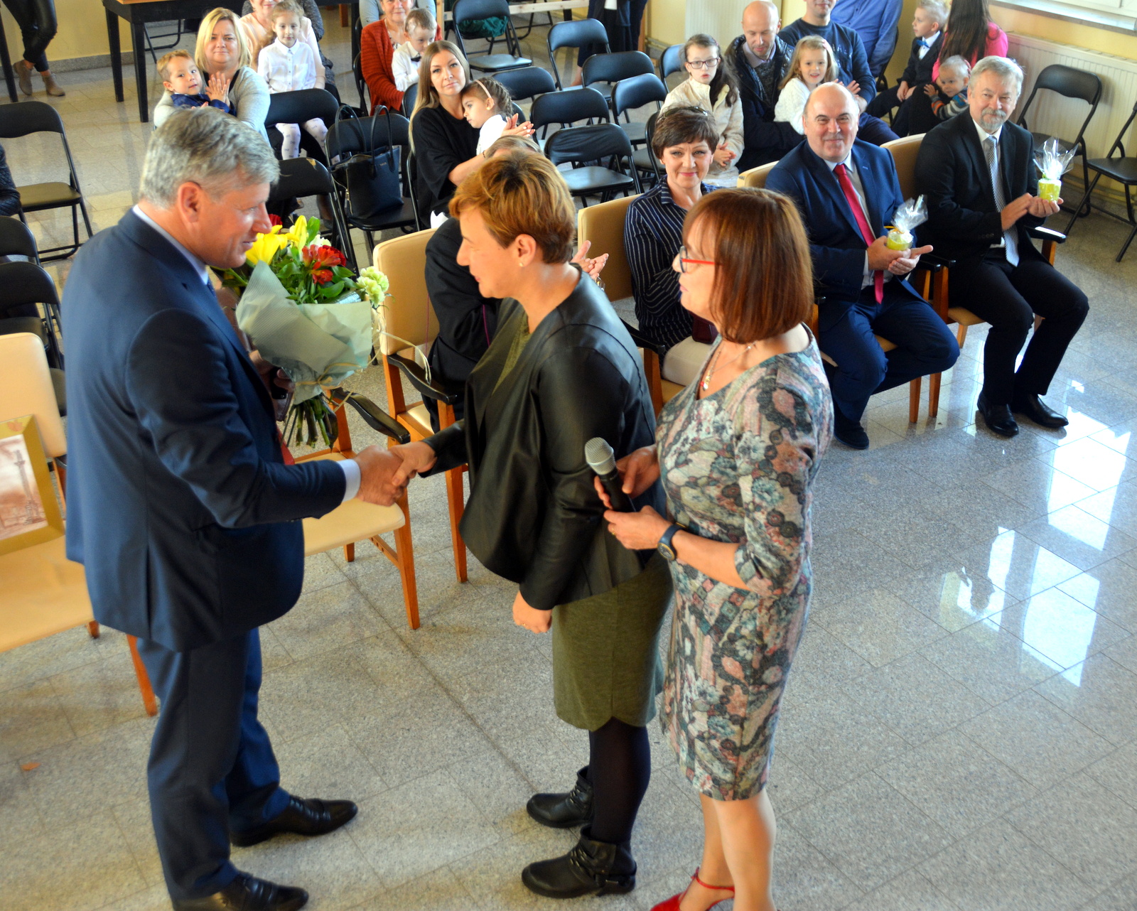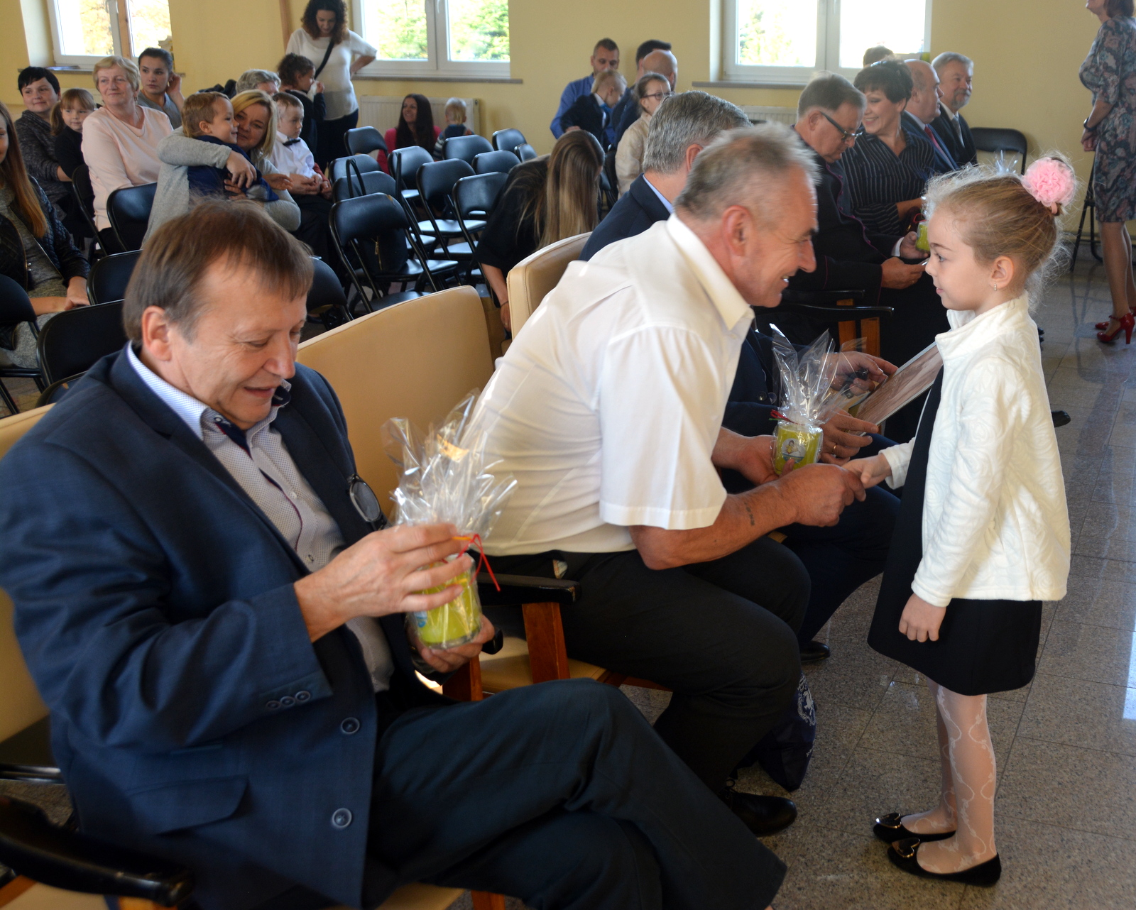 Spotkanie było dobrą okazją do złożenia podziękowań burmistrzowi i radnym za przekazanie placówce środków na wykonanie elewacji budynku przedszkola. Burmistrz Grzegorz Wawryka wręczył maluchom słodkie upominki.